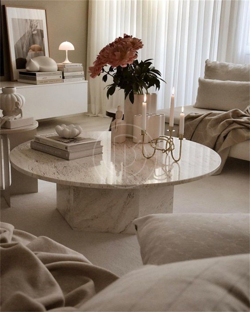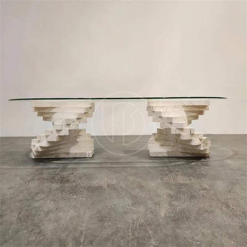 자연스러운 노란색 석회암 고급 식탁 책상 침대 옆 테이블 스낵 캐비닛 디스플레이 스탠드로 자유롭게 조립 가능