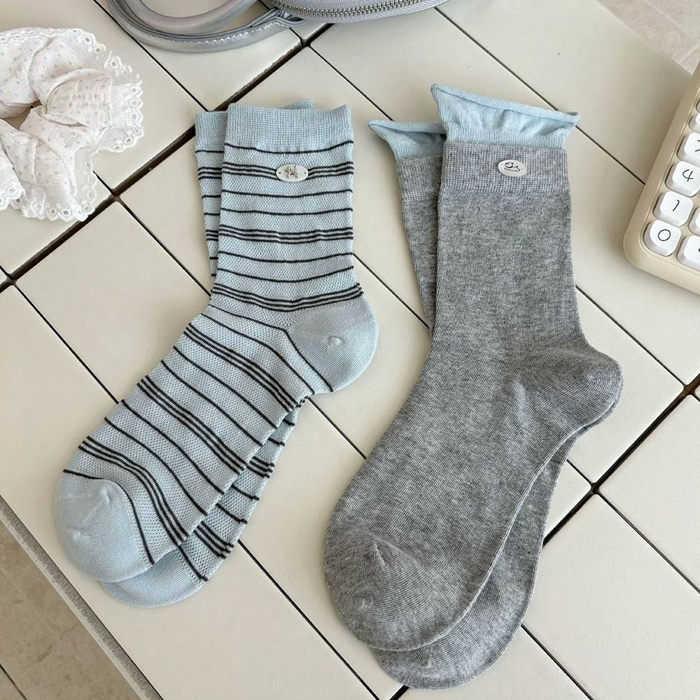 나비 양말 여성용 종아리 중간 양말 여름 얇은 순면 트렌디 통기성 한국 스포츠 자수 문자 스타킹