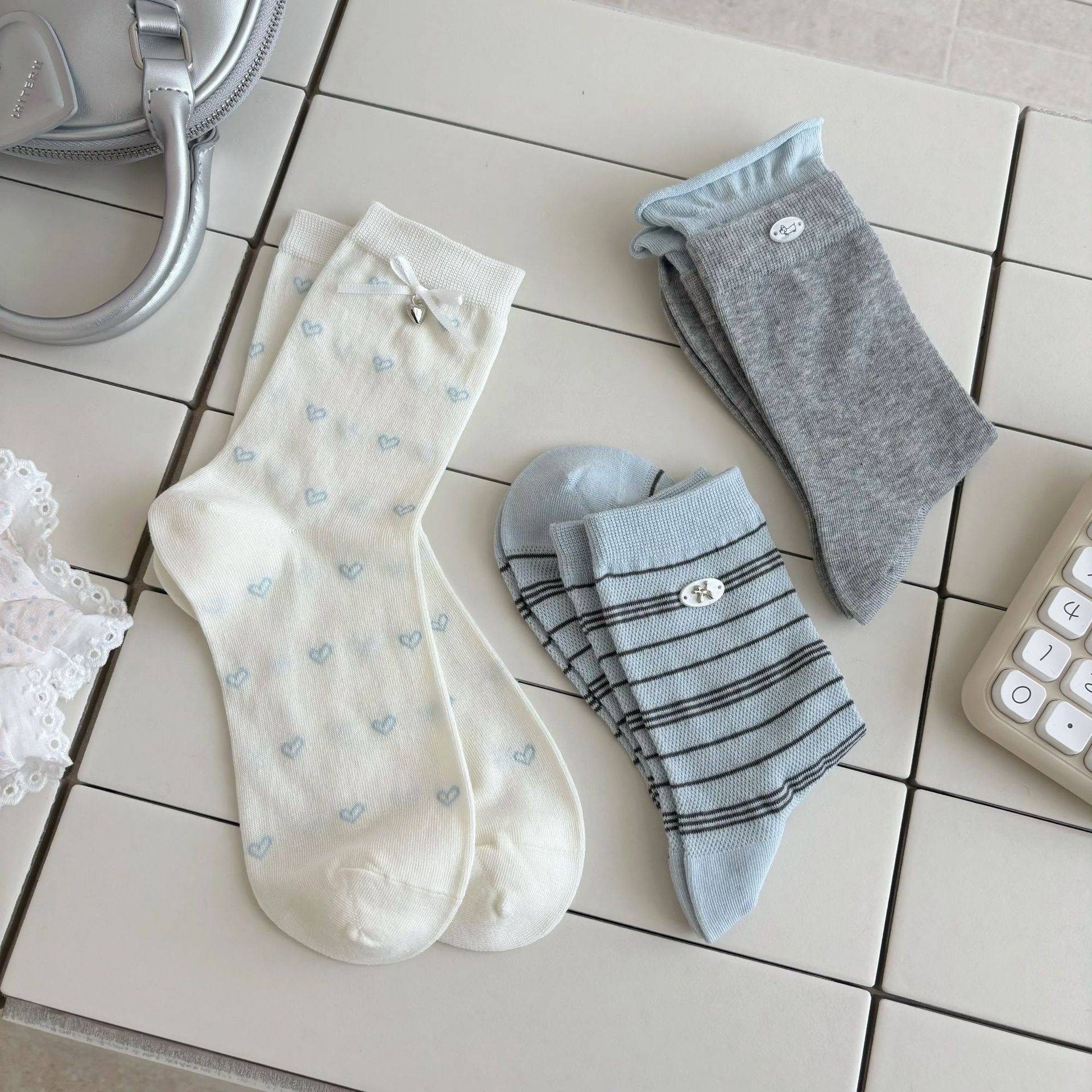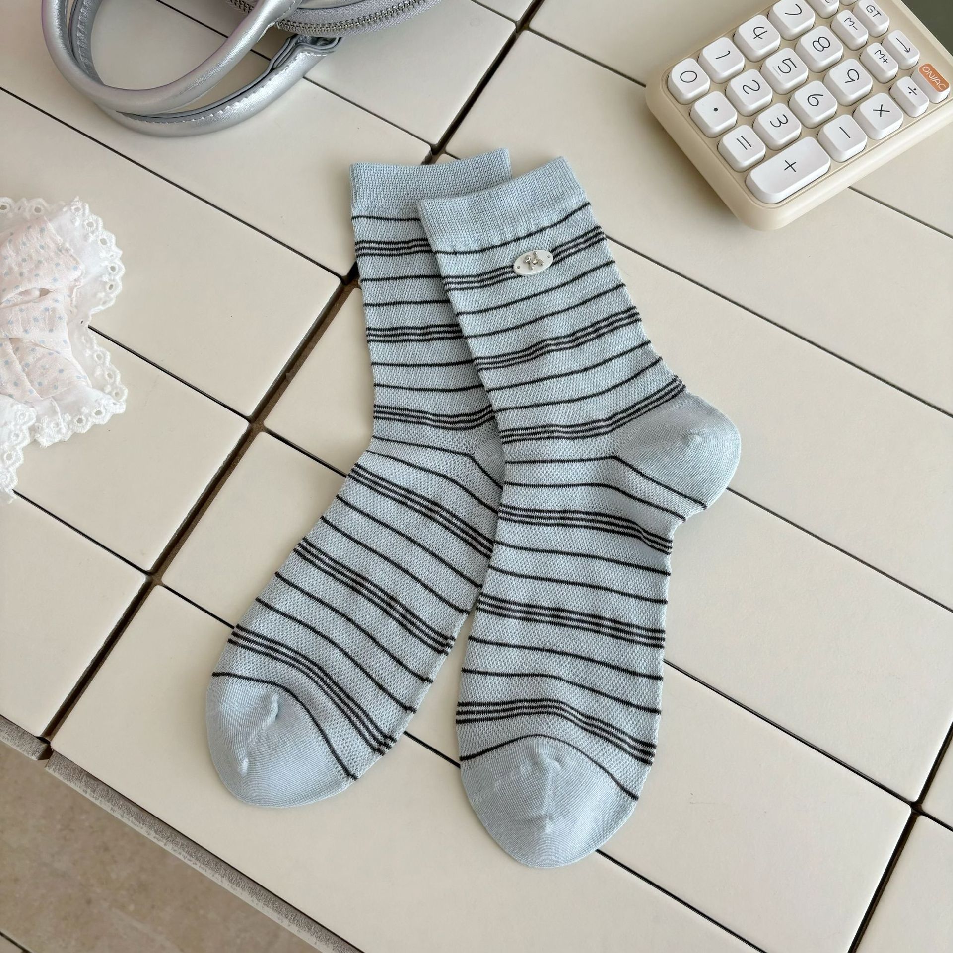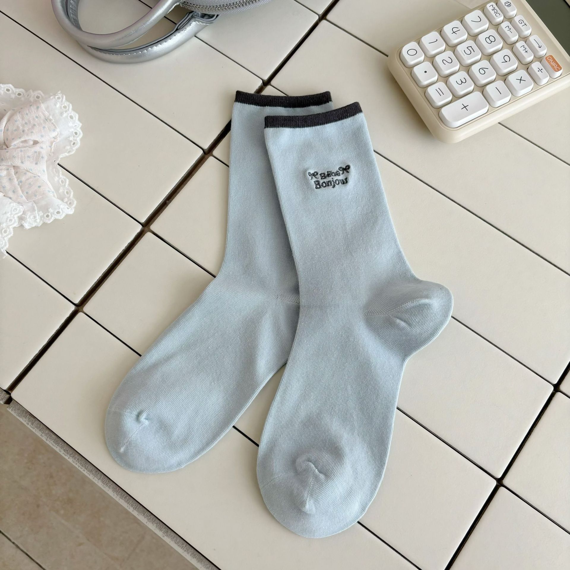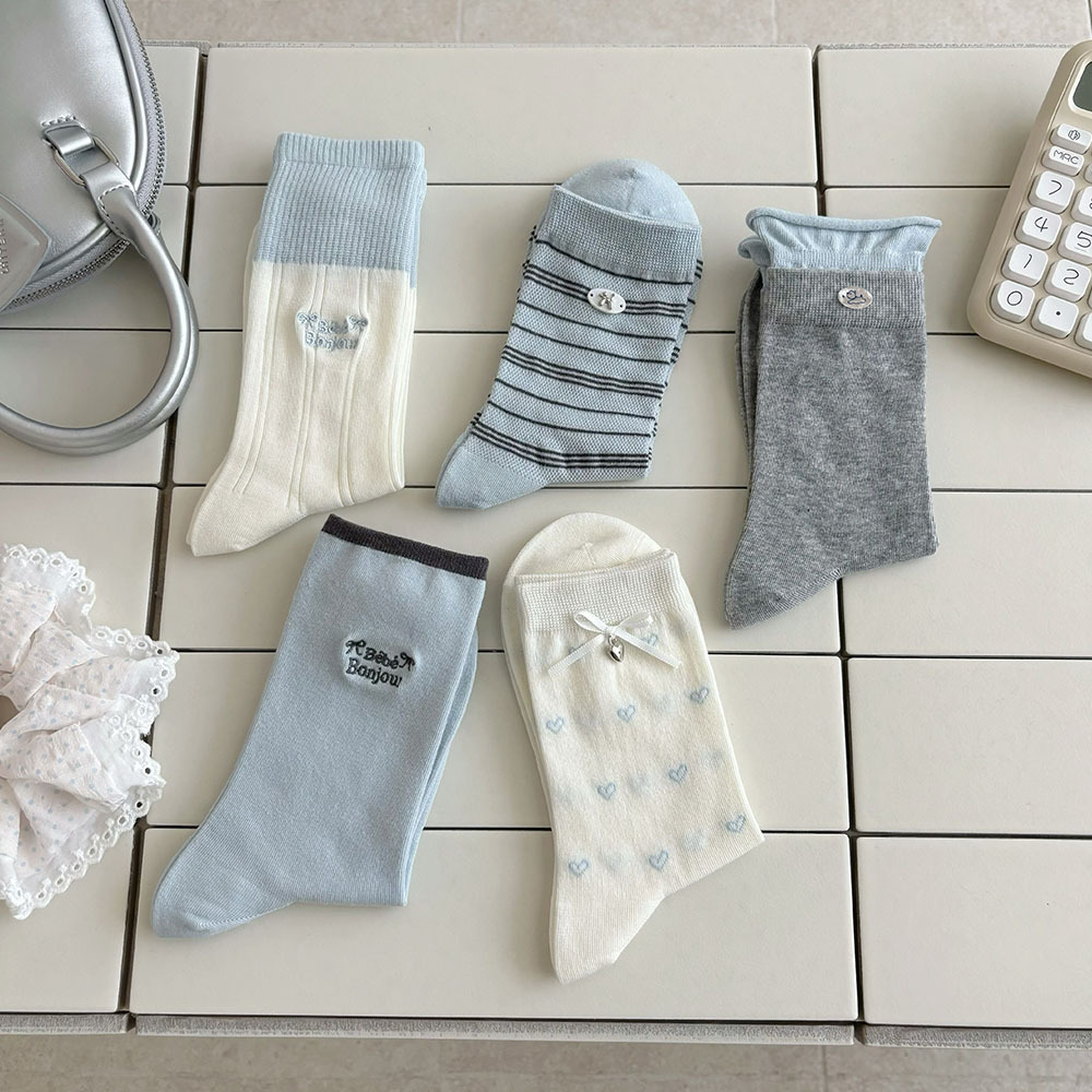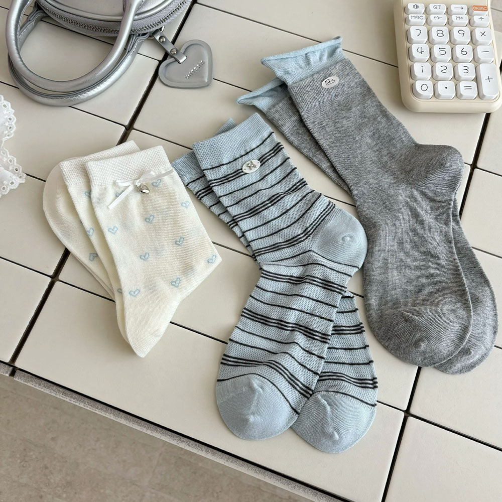 나비 양말 여성용 종아리 중간 양말 여름 얇은 순면 트렌디 통기성 한국 스포츠 자수 문자 스타킹스토어 가기