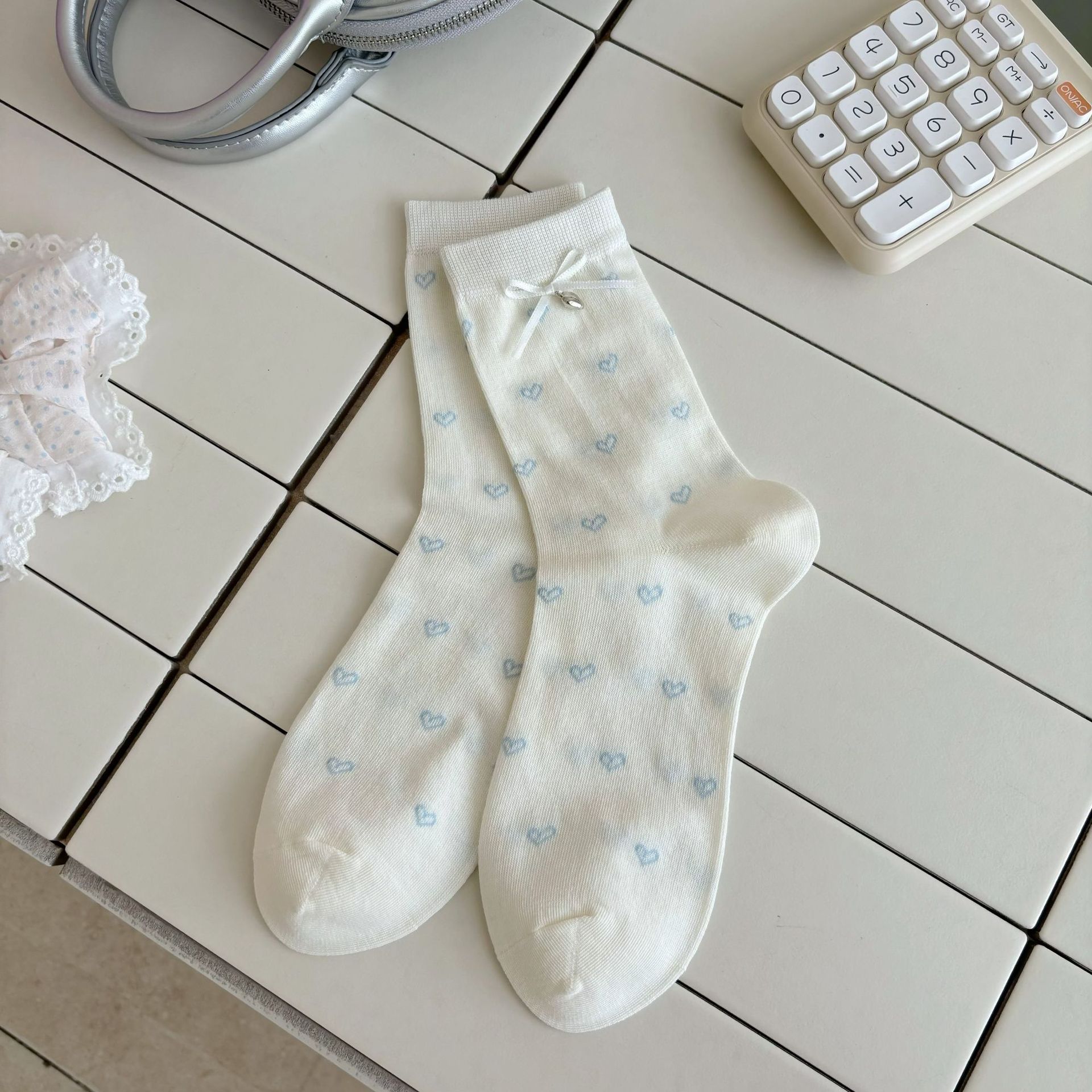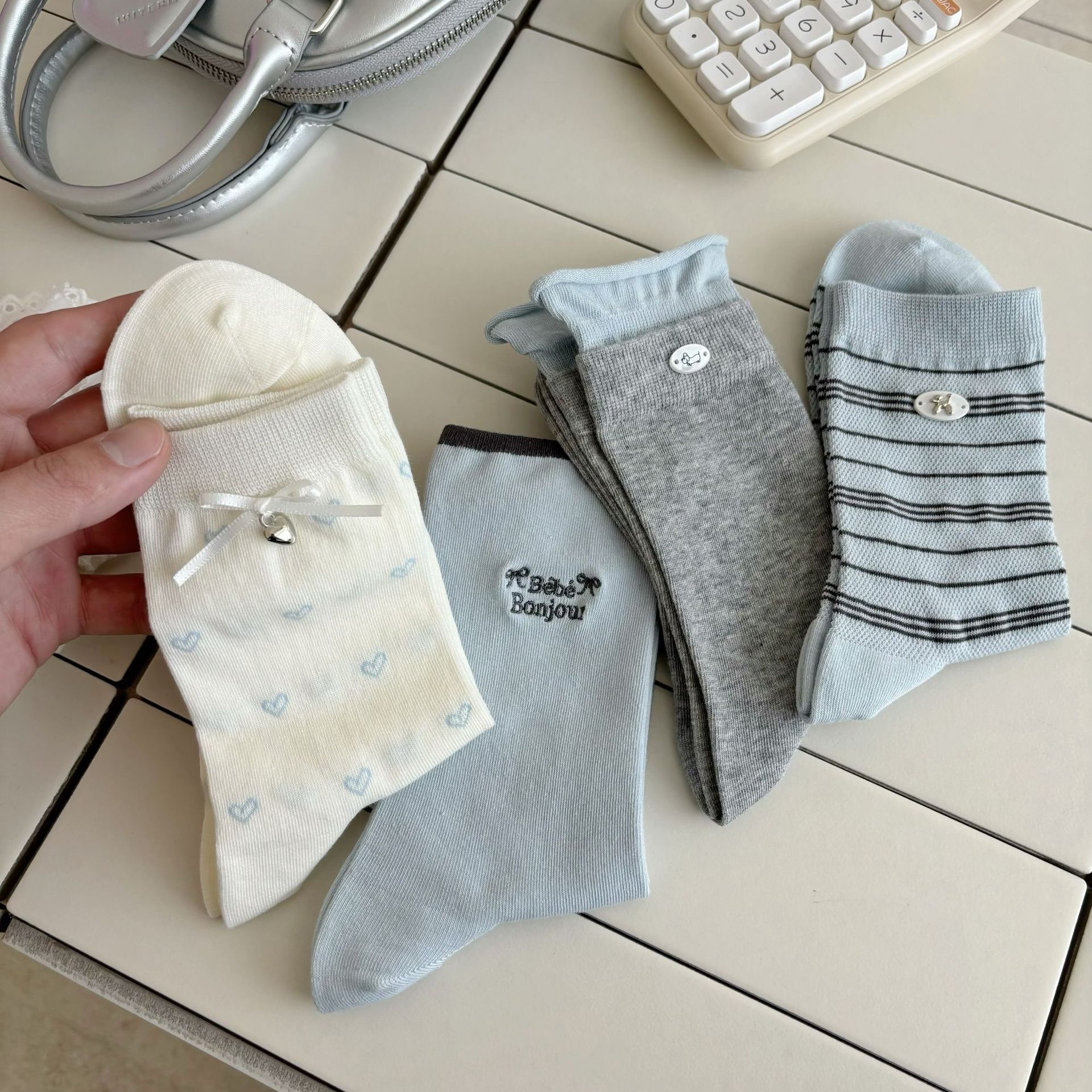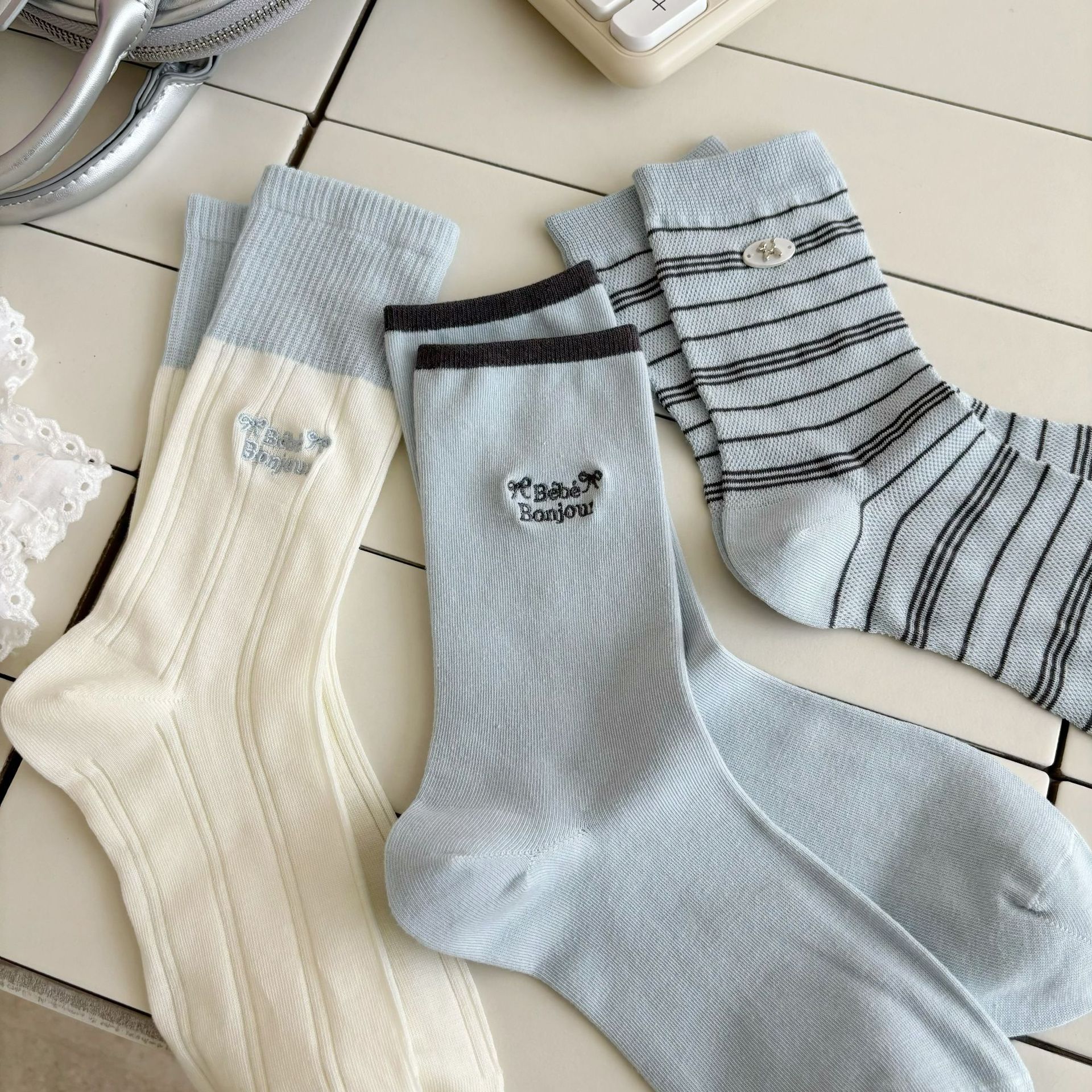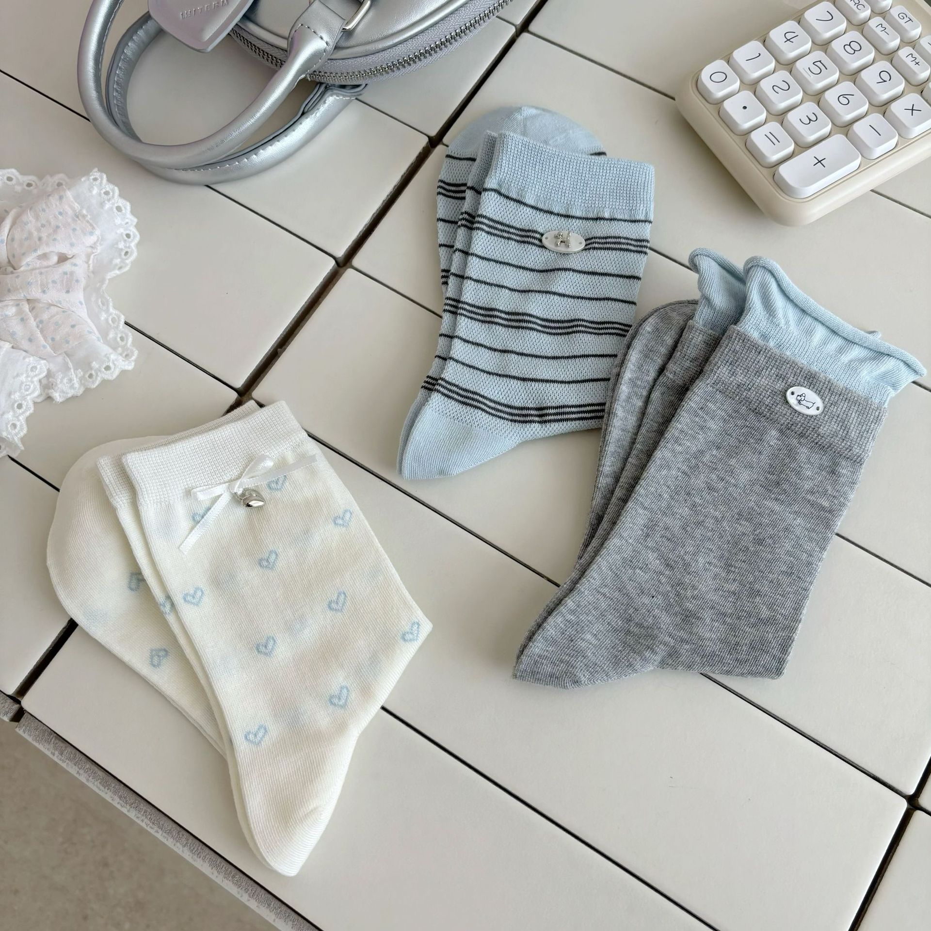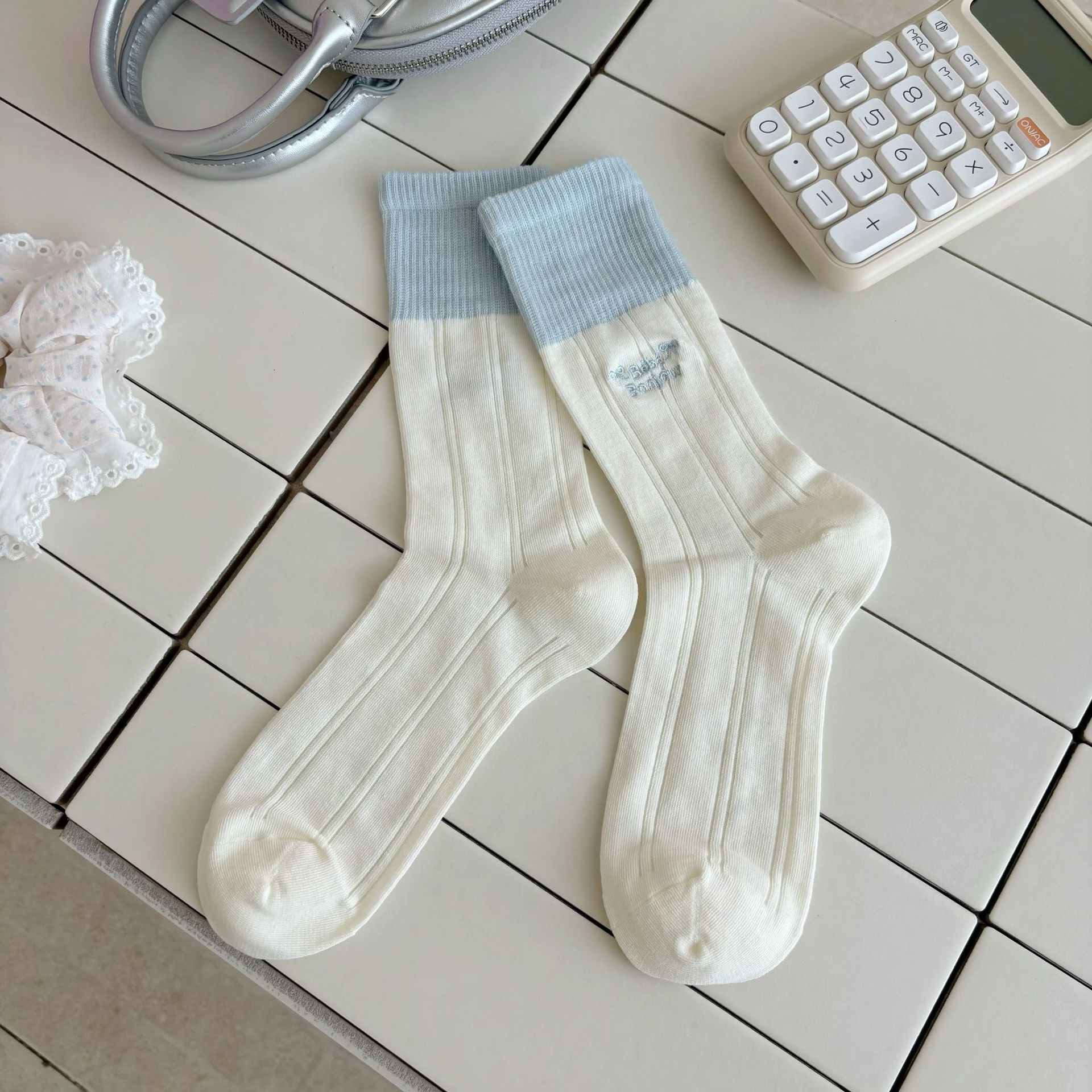 나비 양말 여성용 종아리 중간 양말 여름 얇은 순면 트렌디 통기성 한국 스포츠 자수 문자 스타킹스토어 가기
