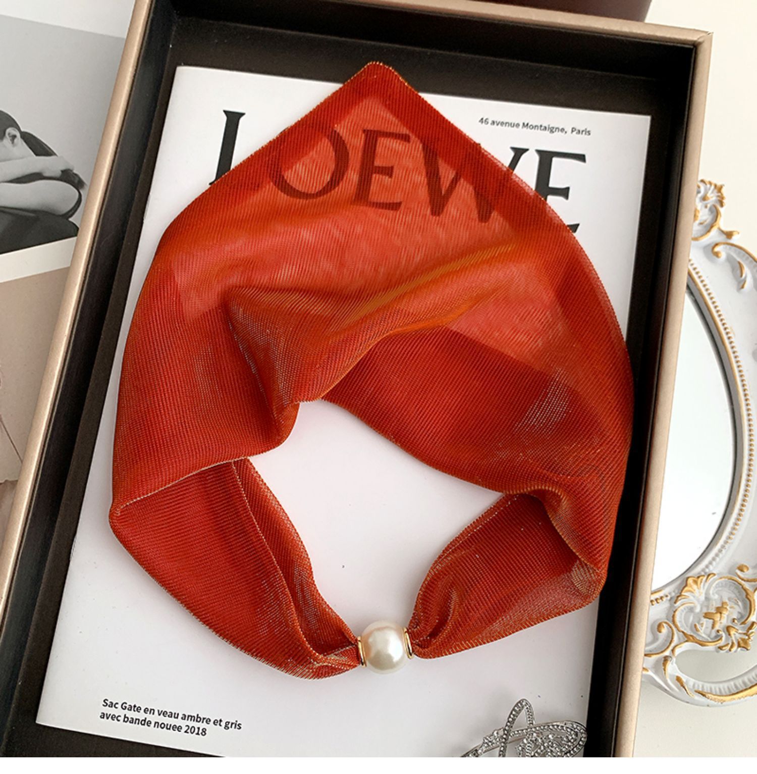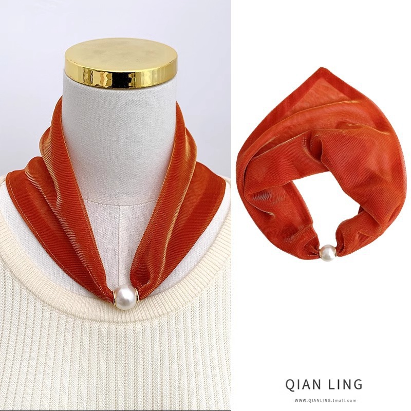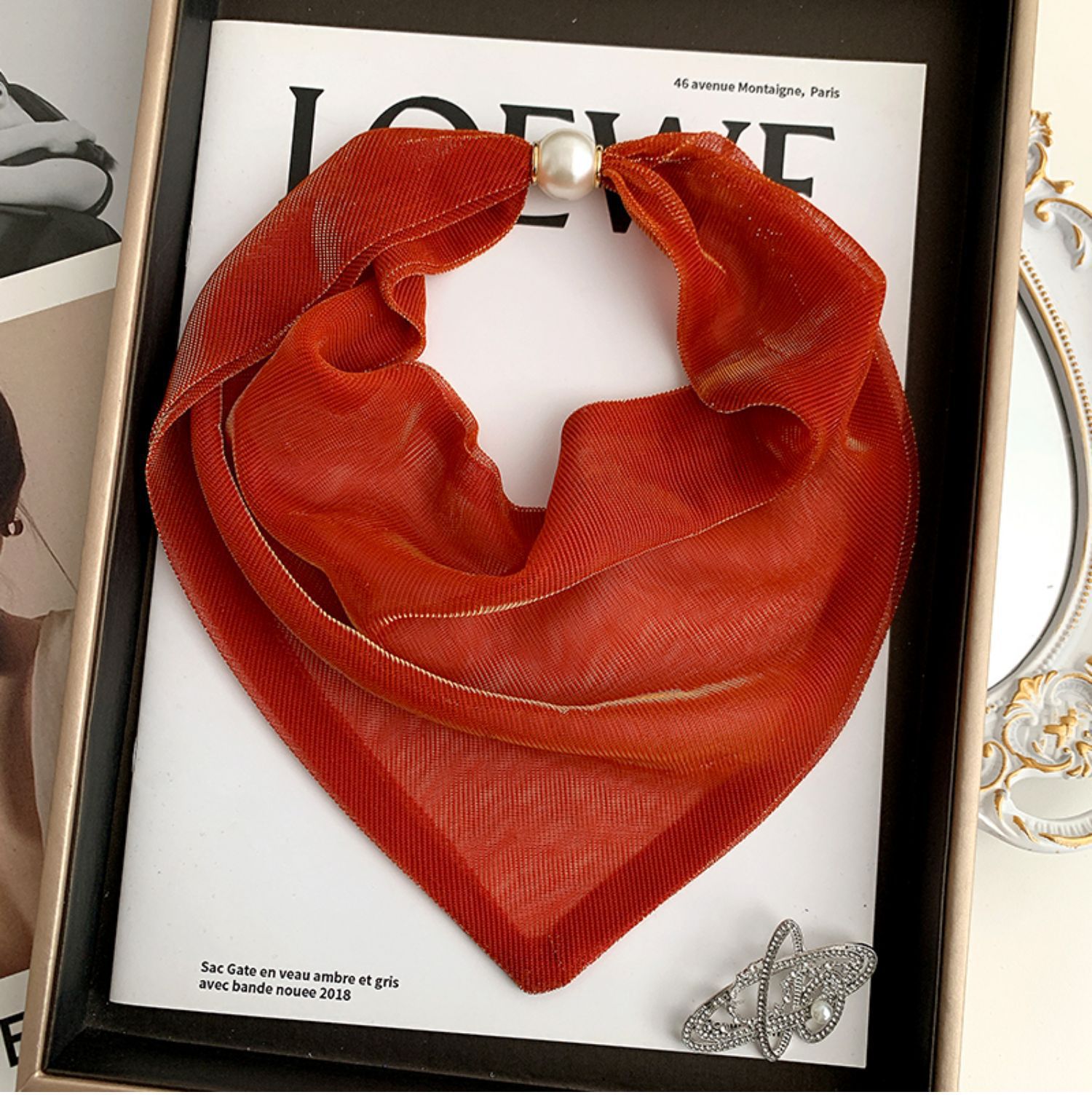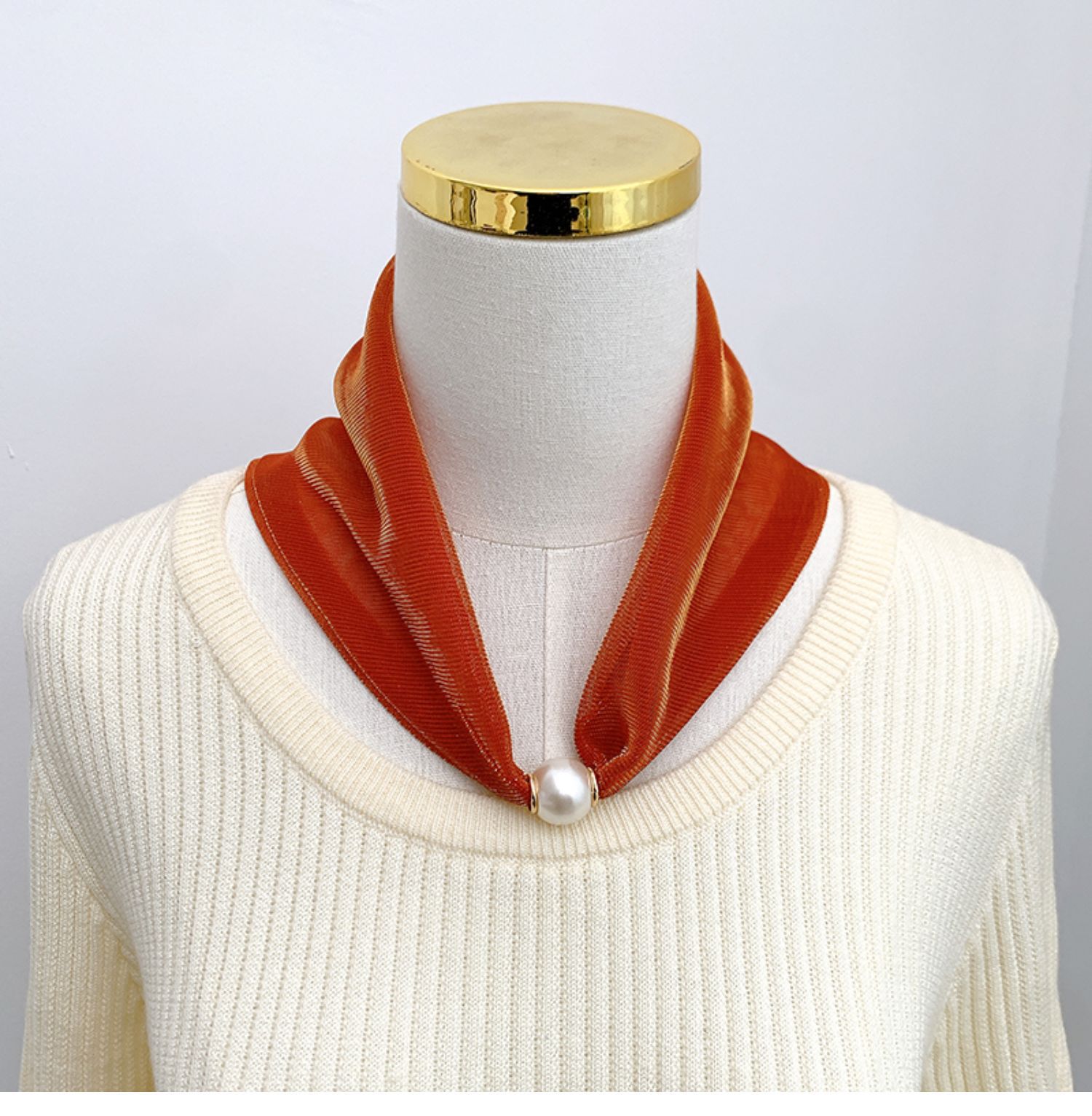 • 오렌지 [진주 자석 버클 삼각 스카프]