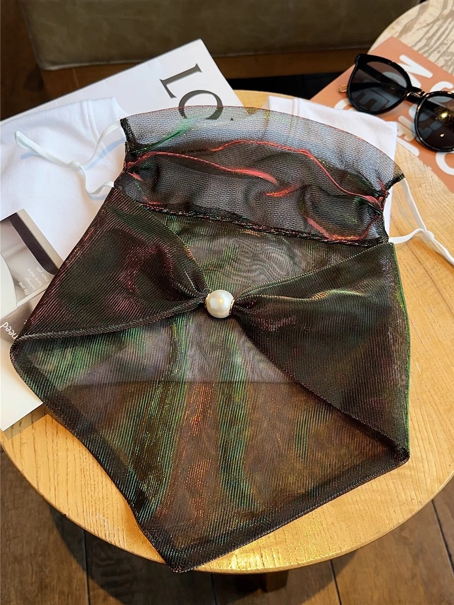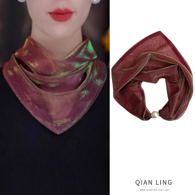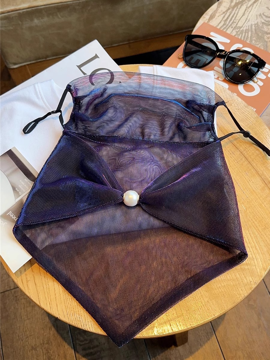 2025 새로운 여름 태양 보호 베일 스토브 컬러 페르시 다기능 스카프 실크 스카프 태양 보호 진주 마스크