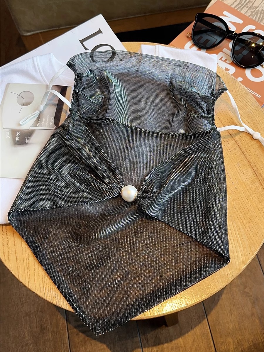 2025 새로운 여름 태양 보호 베일 스토브 컬러 페르시 다기능 스카프 실크 스카프 태양 보호 진주 마스크스토어 가기