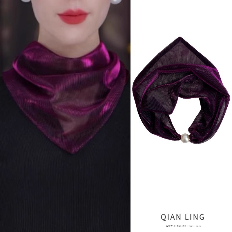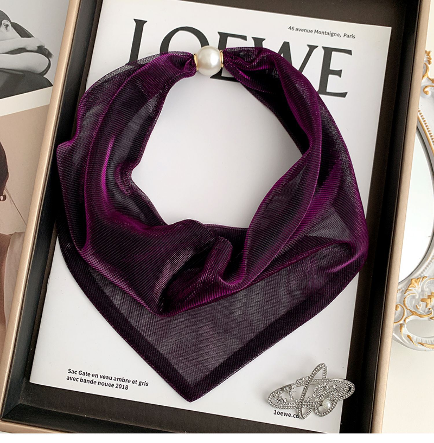 • 퍼플 레드 [진주 자석 버클 삼각 스카프]