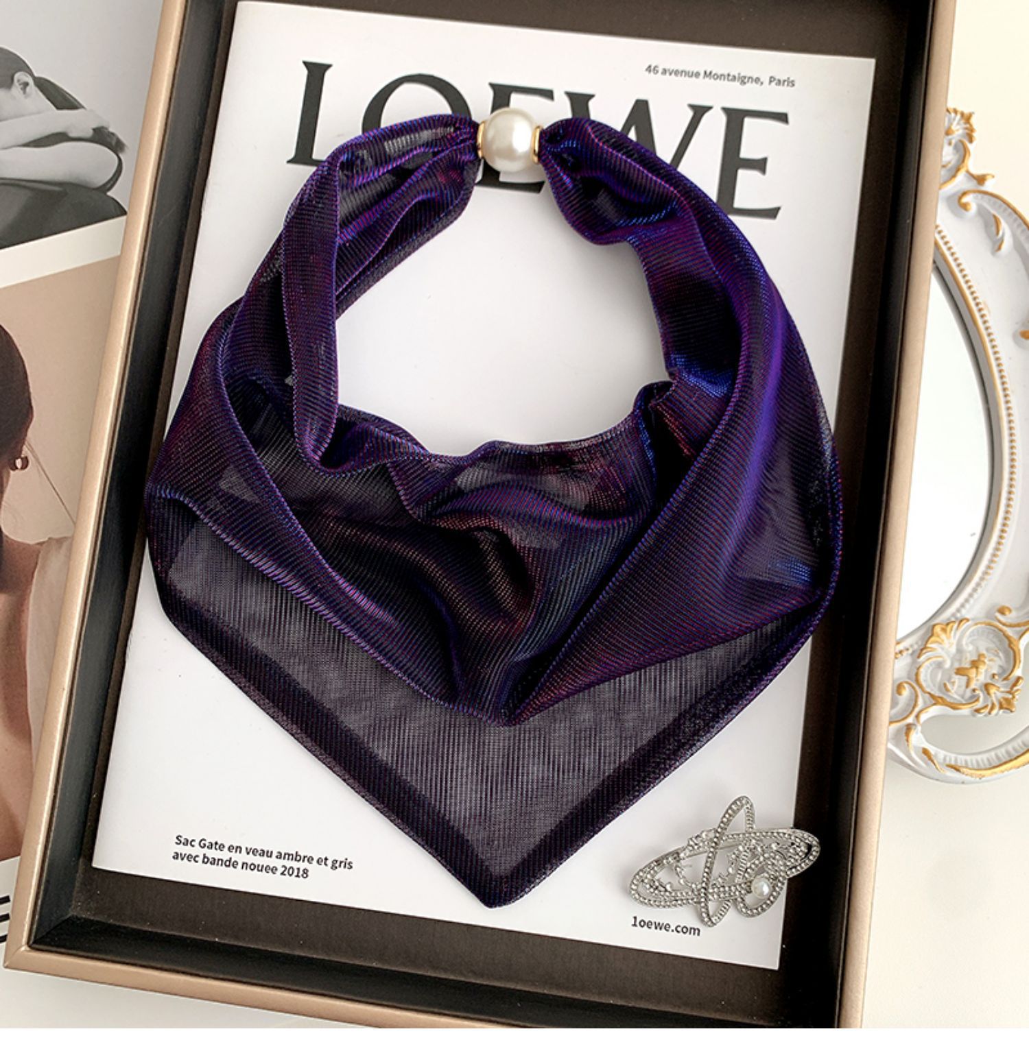 • 블루 퍼플 [진주 자석 버클 삼각 스카프]