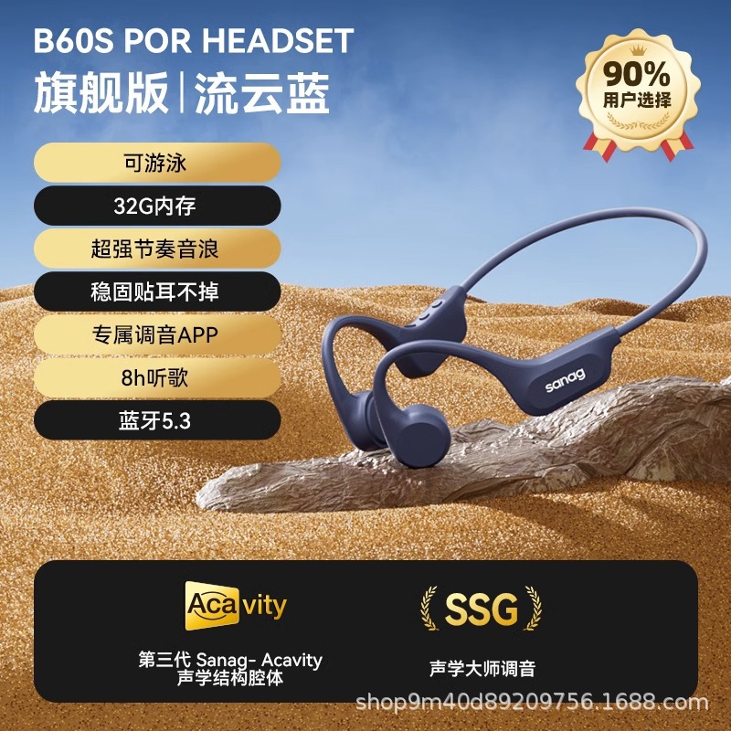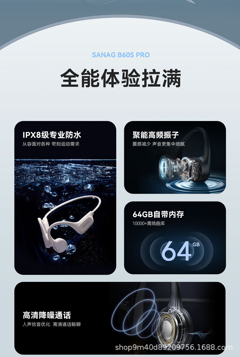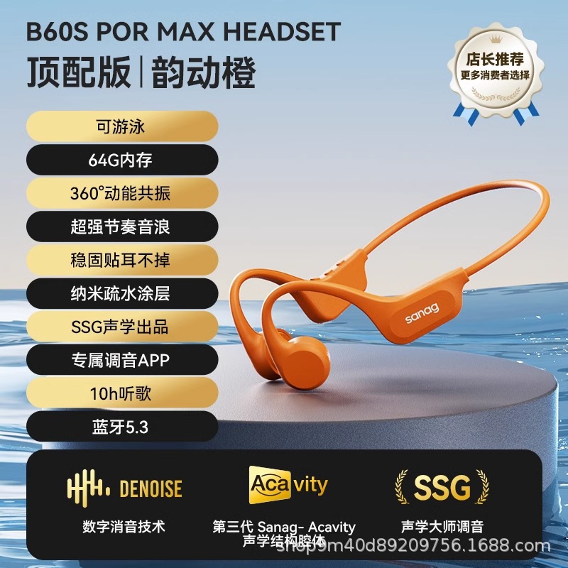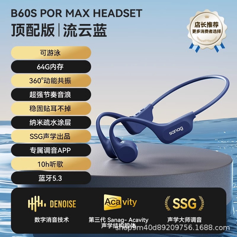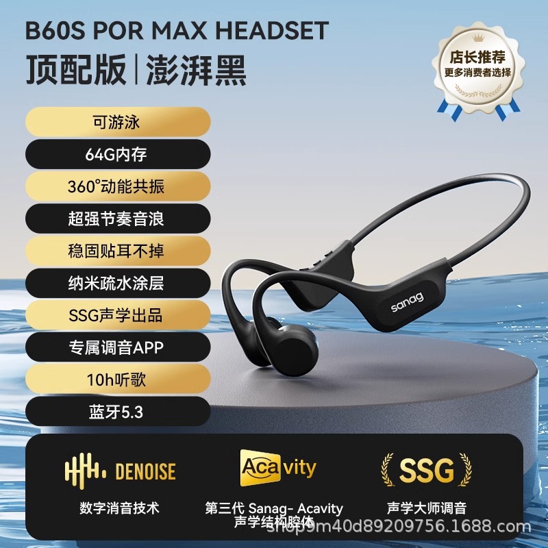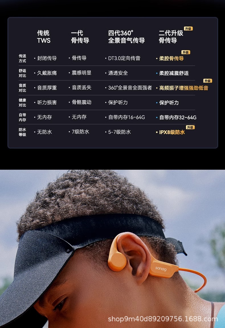 SANAG B60S [8단계 방수 및 수영 가능] 골전도 블루투스 헤드셋 오픈형 비인이어 스포츠스토어 가기