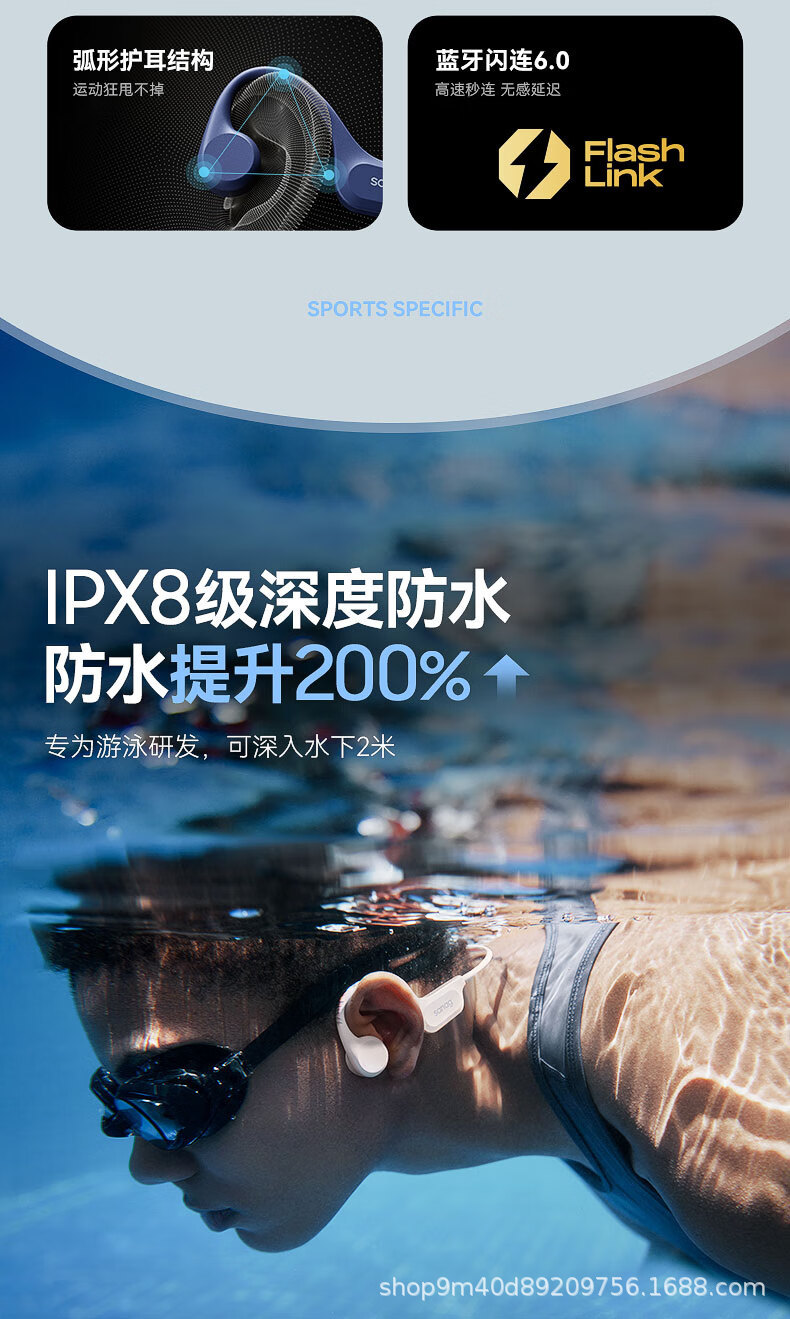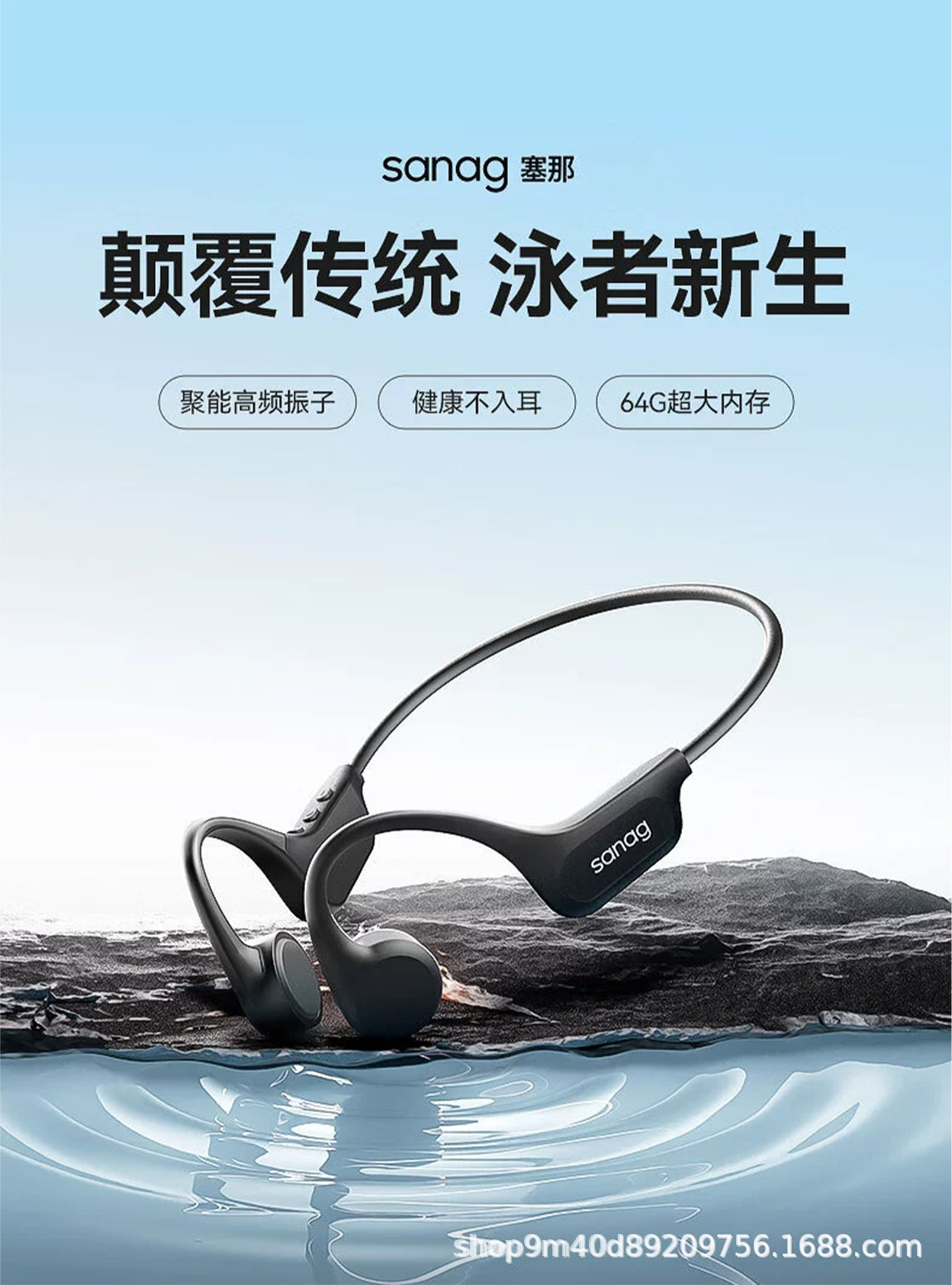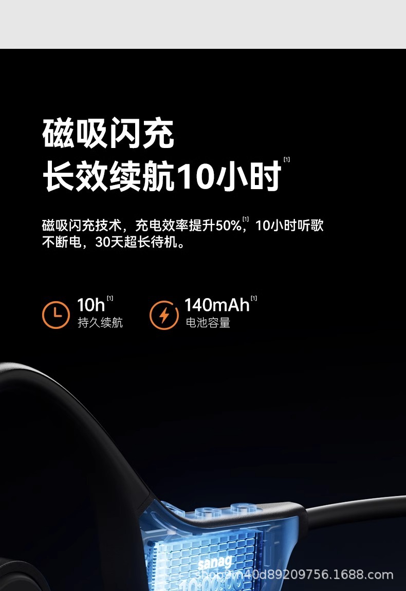 SANAG B60S [8단계 방수 및 수영 가능] 골전도 블루투스 헤드셋 오픈형 비인이어 스포츠