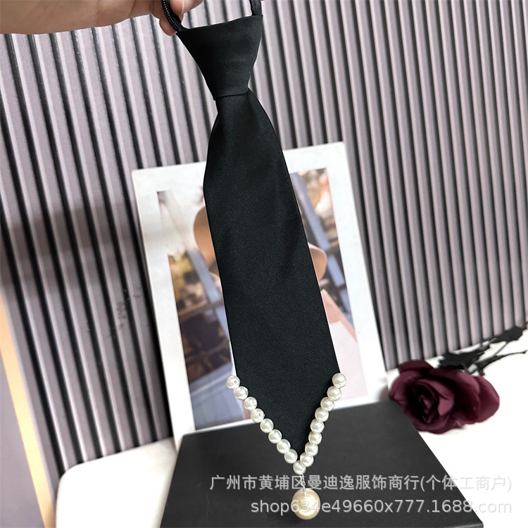 새로운 디자인의 헤비듀티 진주 펜던트 넥타이 여성용 한국식 진주 게으른 매듭없는 셔츠 블랙 넥타이 트렌디스토어 가기