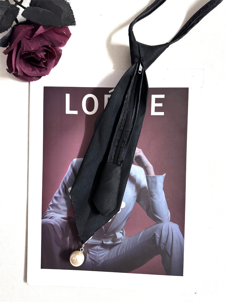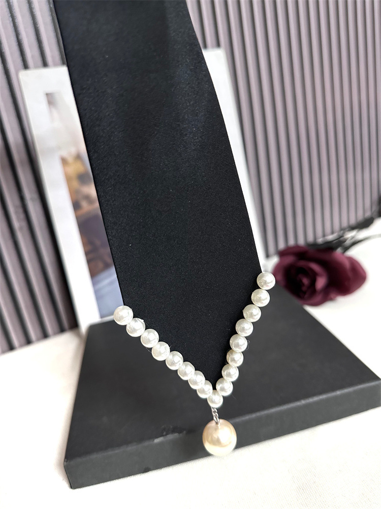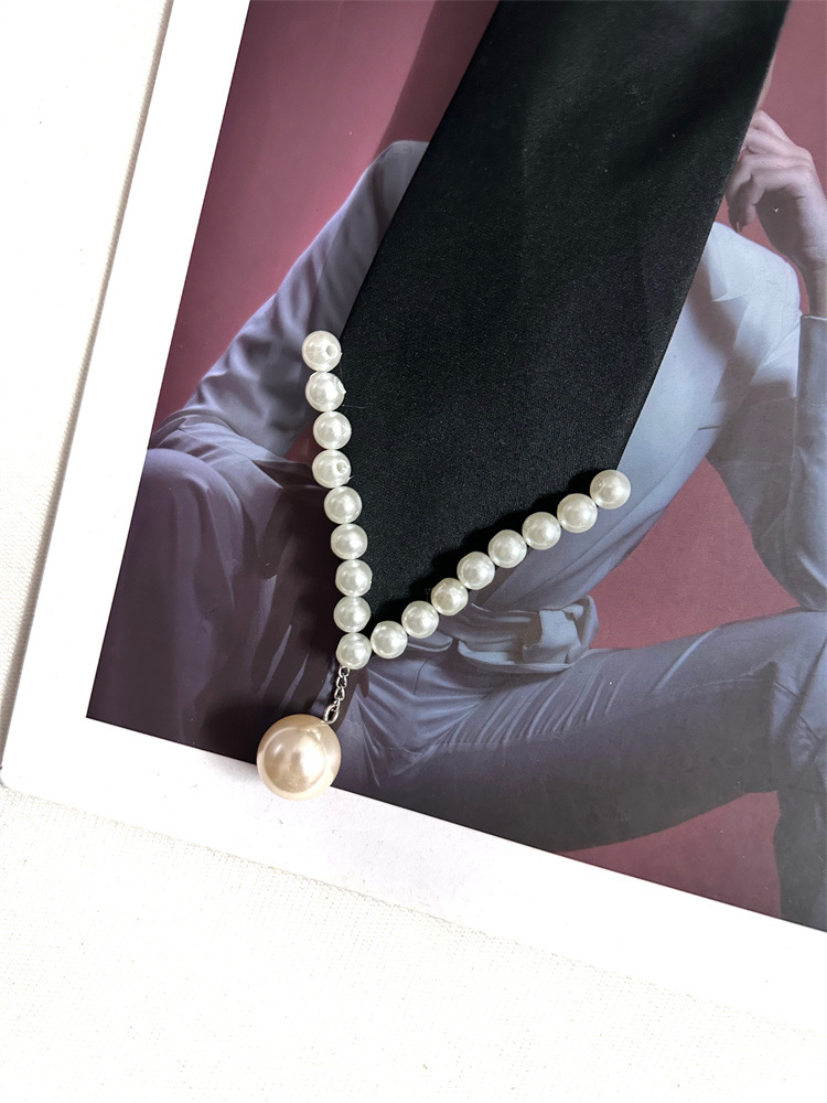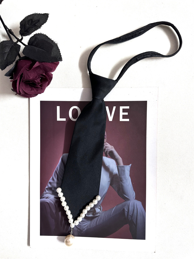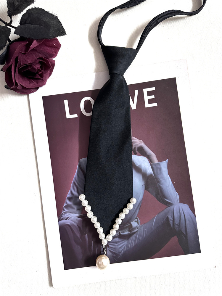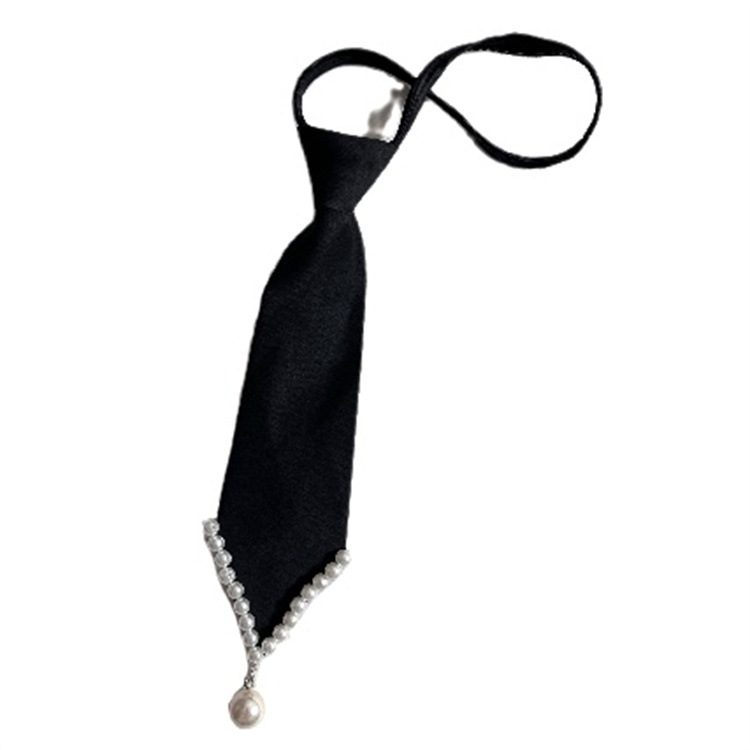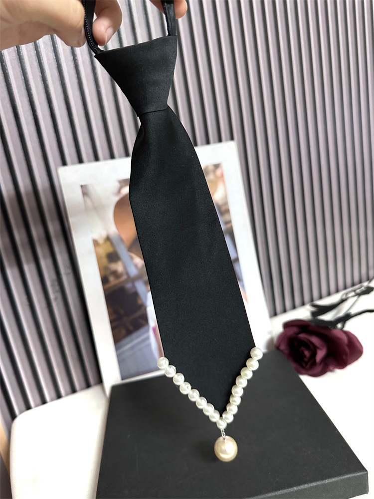 새로운 디자인의 헤비듀티 진주 펜던트 넥타이 여성용 한국식 진주 게으른 매듭없는 셔츠 블랙 넥타이 트렌디