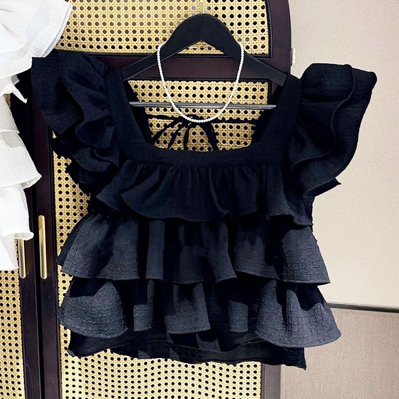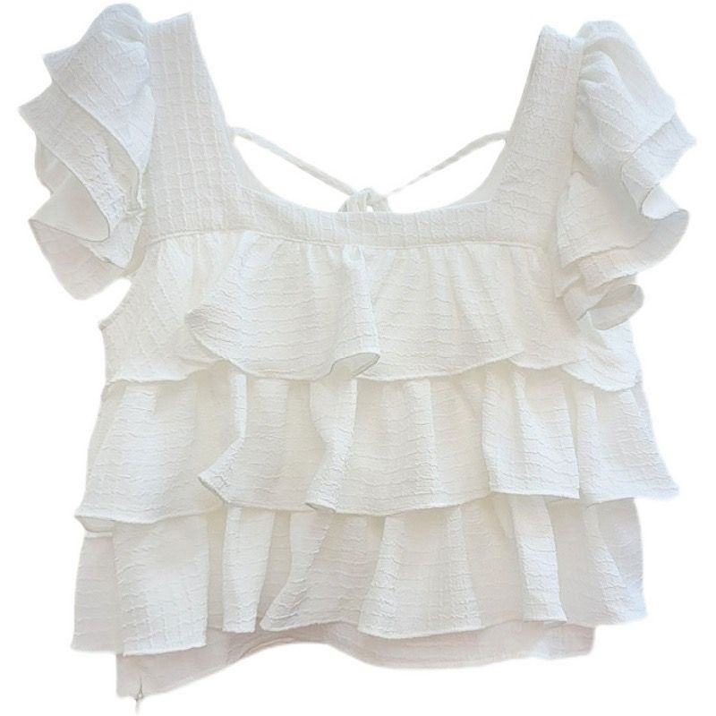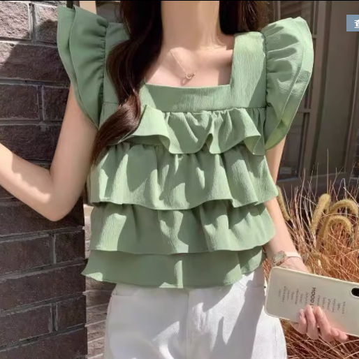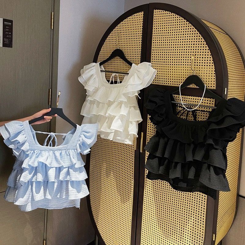 봄 신작 한국 패션 슬림핏 러플 플라잉 슬리브 레이어 케이크 셔츠 여성상의 및 여아 의류스토어 가기