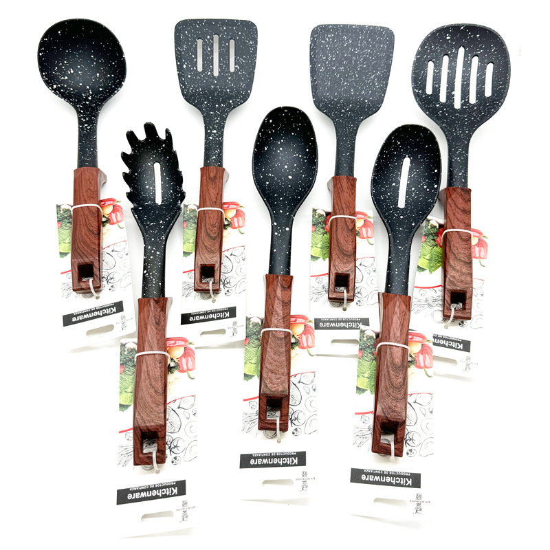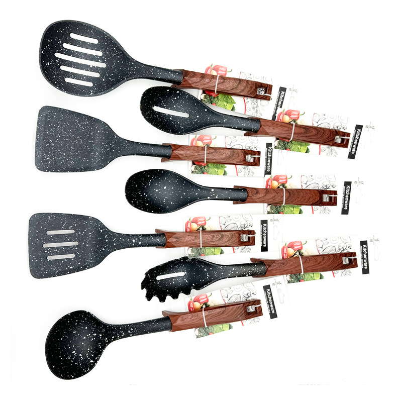 나뭇결이 있는 손잡이, 달라붙지 않는 요리 주걱 및 스푼, 플라스틱 나일론 세트, 주방 요리 주걱 및 스푼 도구스토어 가기