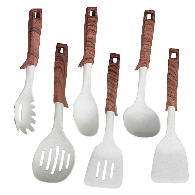 나뭇결이 있는 손잡이, 달라붙지 않는 요리 주걱 및 스푼, 플라스틱 나일론 세트, 주방 요리 주걱 및 스푼 도구