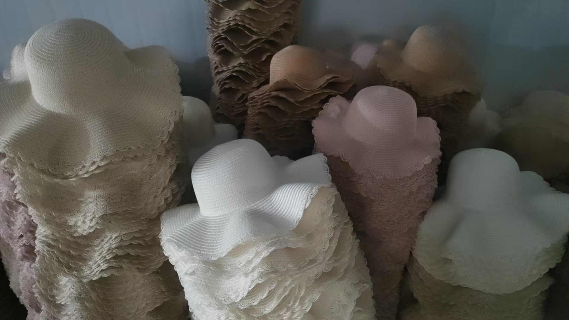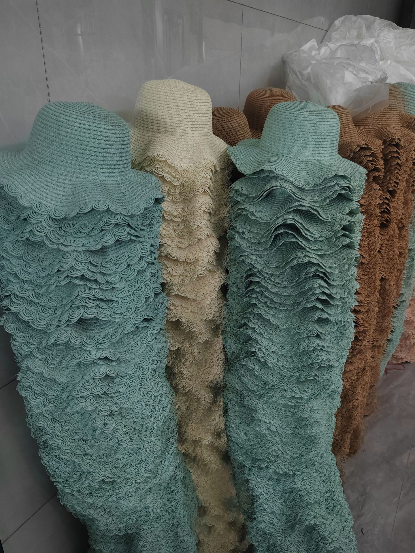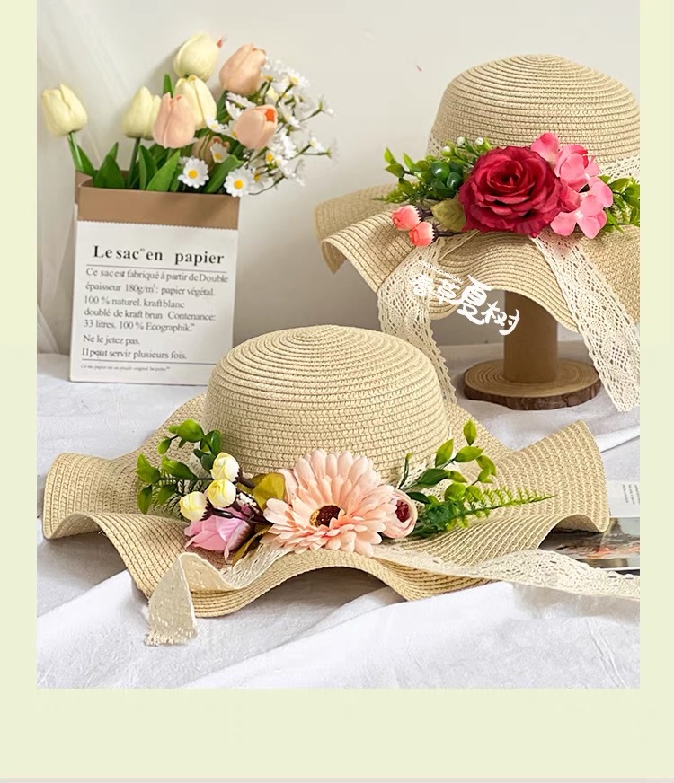 공장제작 밀짚모자 여성용 여름 자외선 차단 해변용 챙넓은 모자 여행용 차양모자 웨이브 모자 DIY 둥근챙넓은 모자스토어 가기
