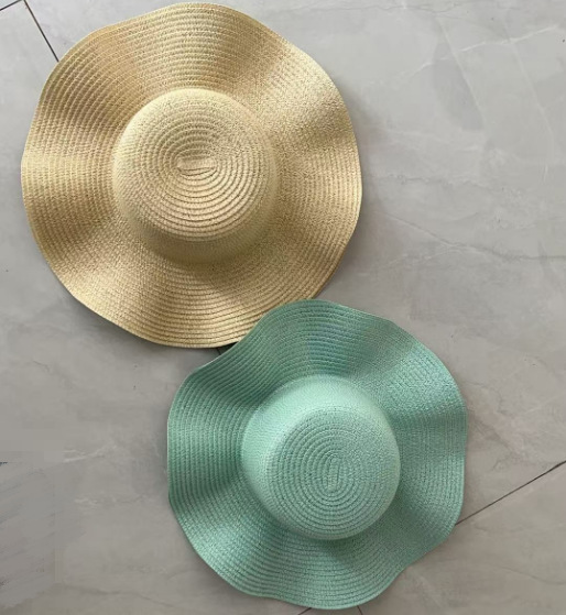 공장제작 밀짚모자 여성용 여름 자외선 차단 해변용 챙넓은 모자 여행용 차양모자 웨이브 모자 DIY 둥근챙넓은 모자
