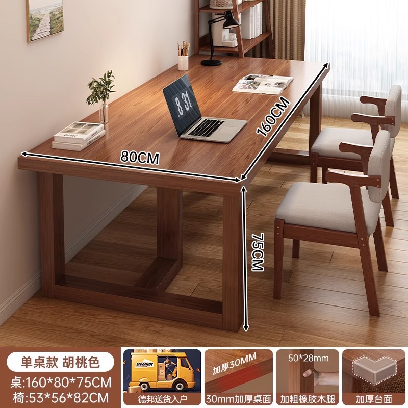 • 【테이블 1개 원목 의자 2개★넓어진 팔걸이] 월넛색상 160*80*75cm