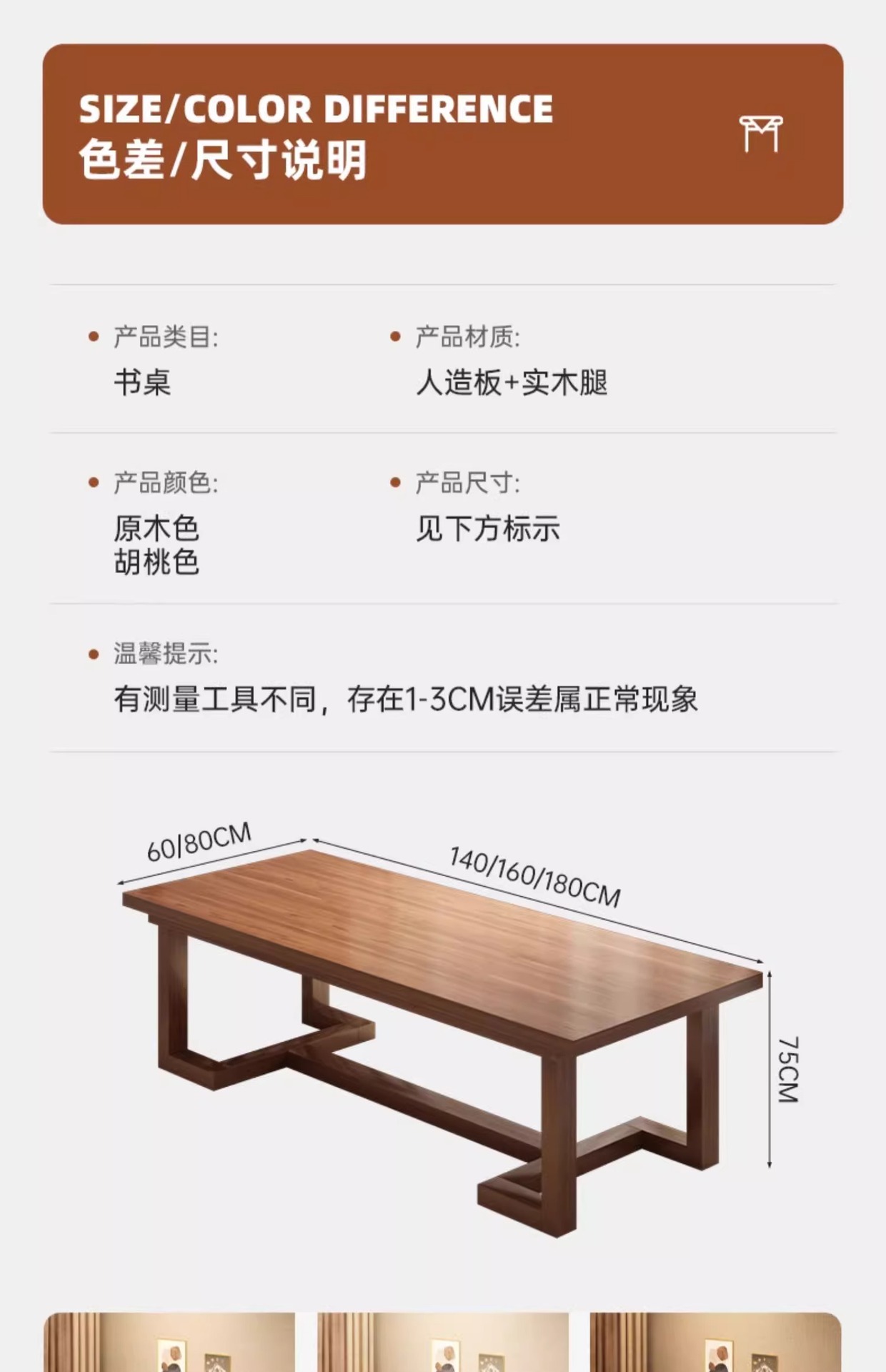 컴퓨터 책상, 원목 다리, 가정용 침실, 2인용 거실, 작업대, 학생 공부용 긴 책상, 대형 긴 테이블스토어 가기