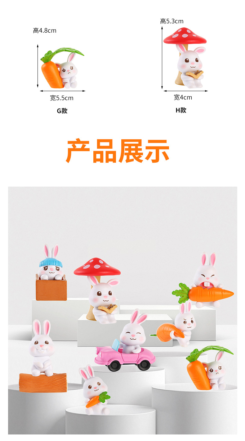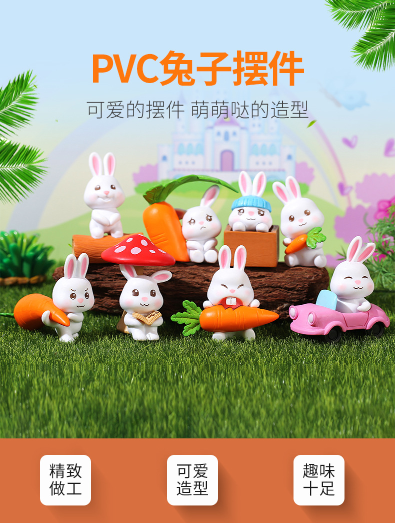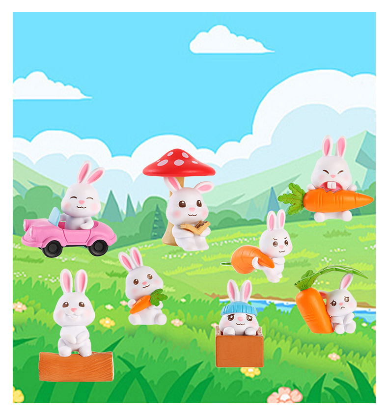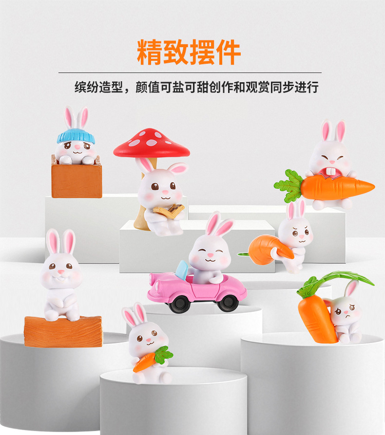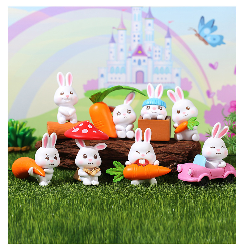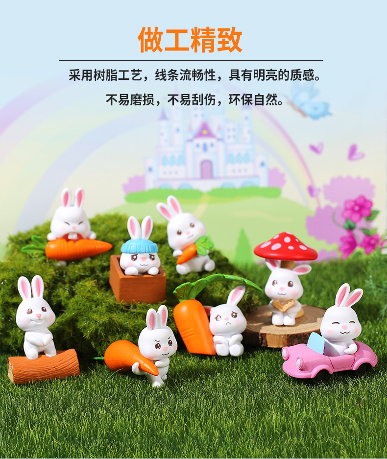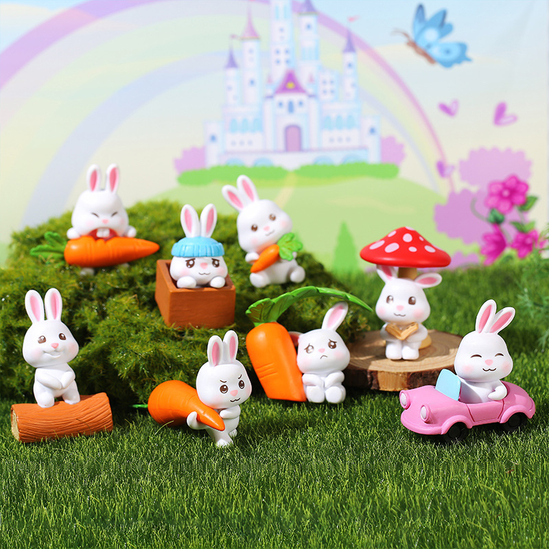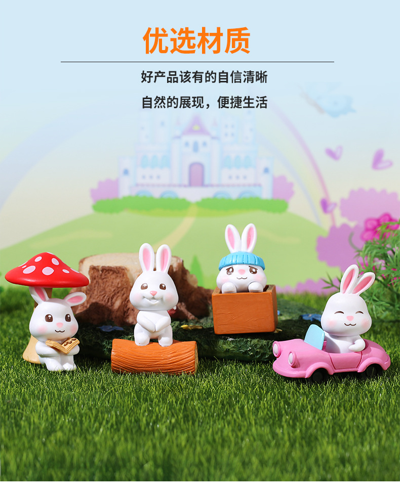 인터넷 축하 귀여운 만화 토끼 자동차 장식품 자동차 장식품 마이크로 풍경 원예 조경 장식 PVC 장식품