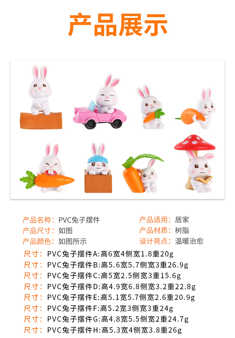 인터넷 축하 귀여운 만화 토끼 자동차 장식품 자동차 장식품 마이크로 풍경 원예 조경 장식 PVC 장식품스토어 가기