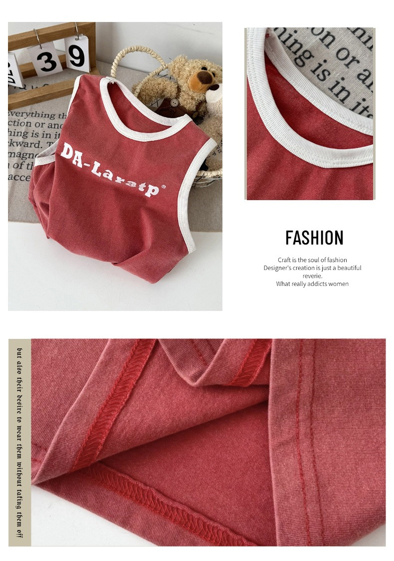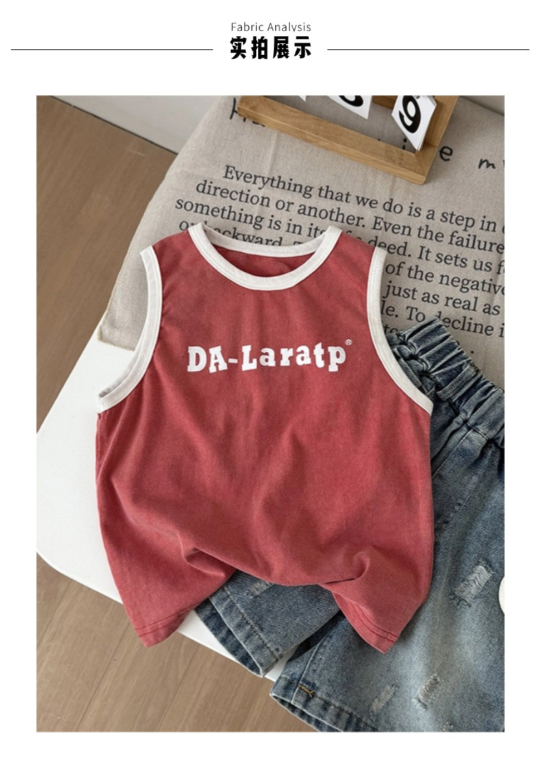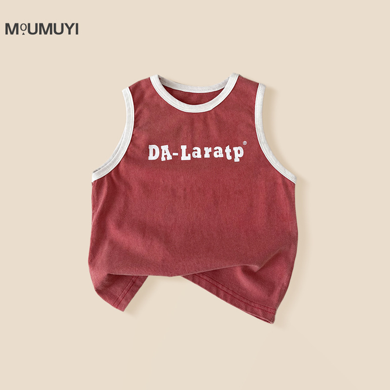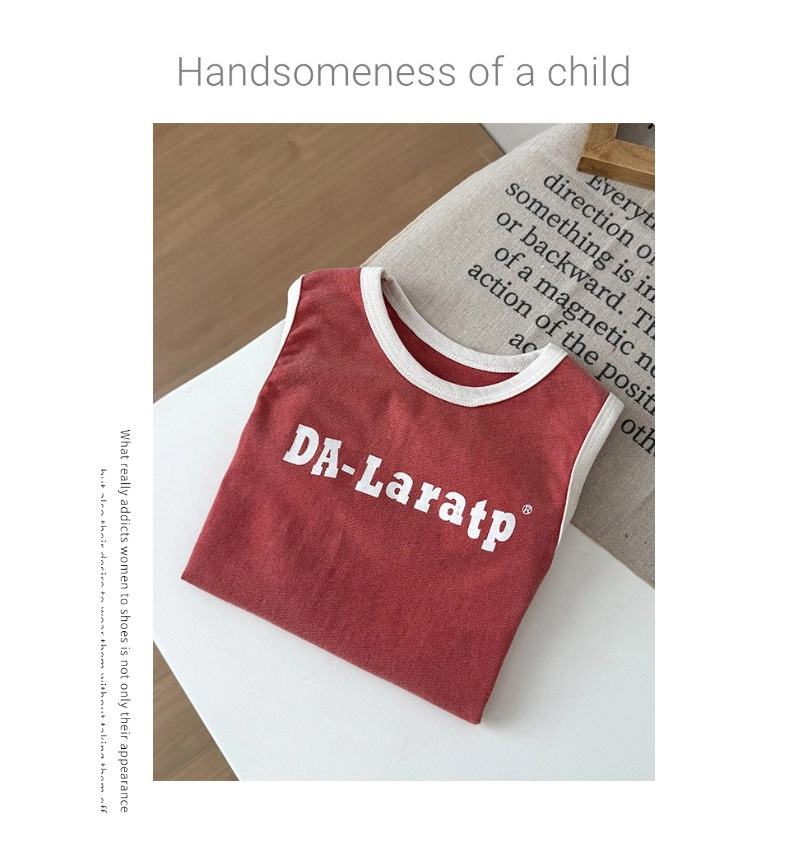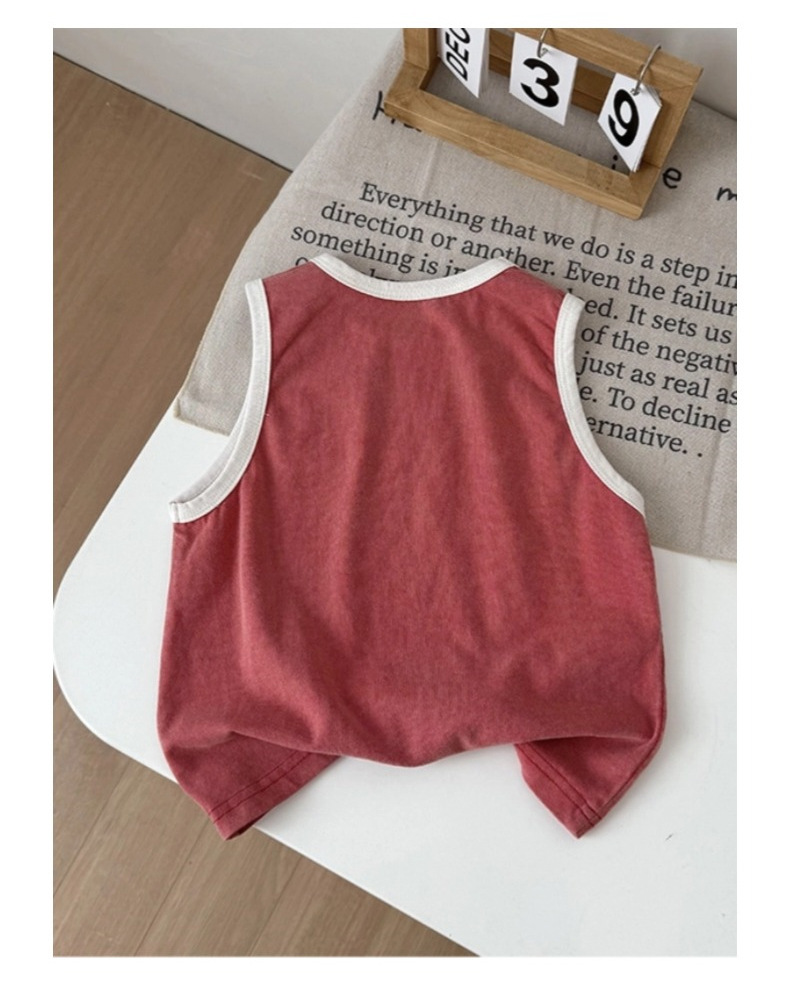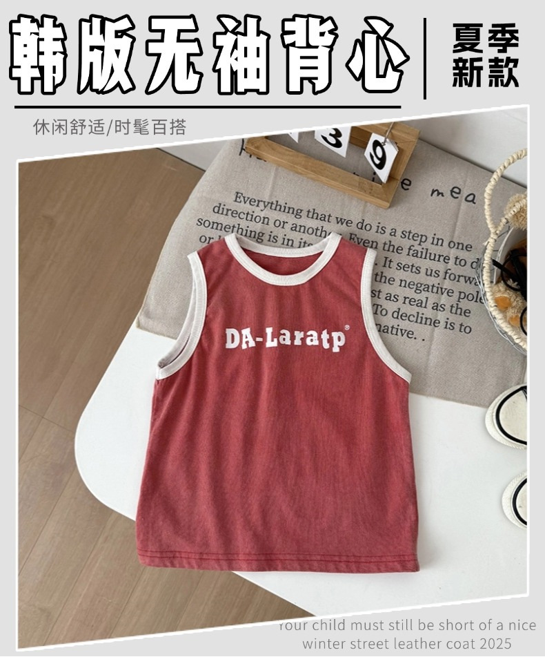 아동 여름 캐주얼 조끼 2025 새로운 스타일 소년 민소매 티셔츠 중소형 소년 한국 레드 탑 트렌디 쿨 t스토어 가기