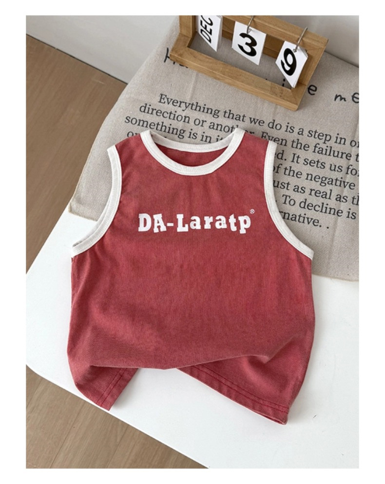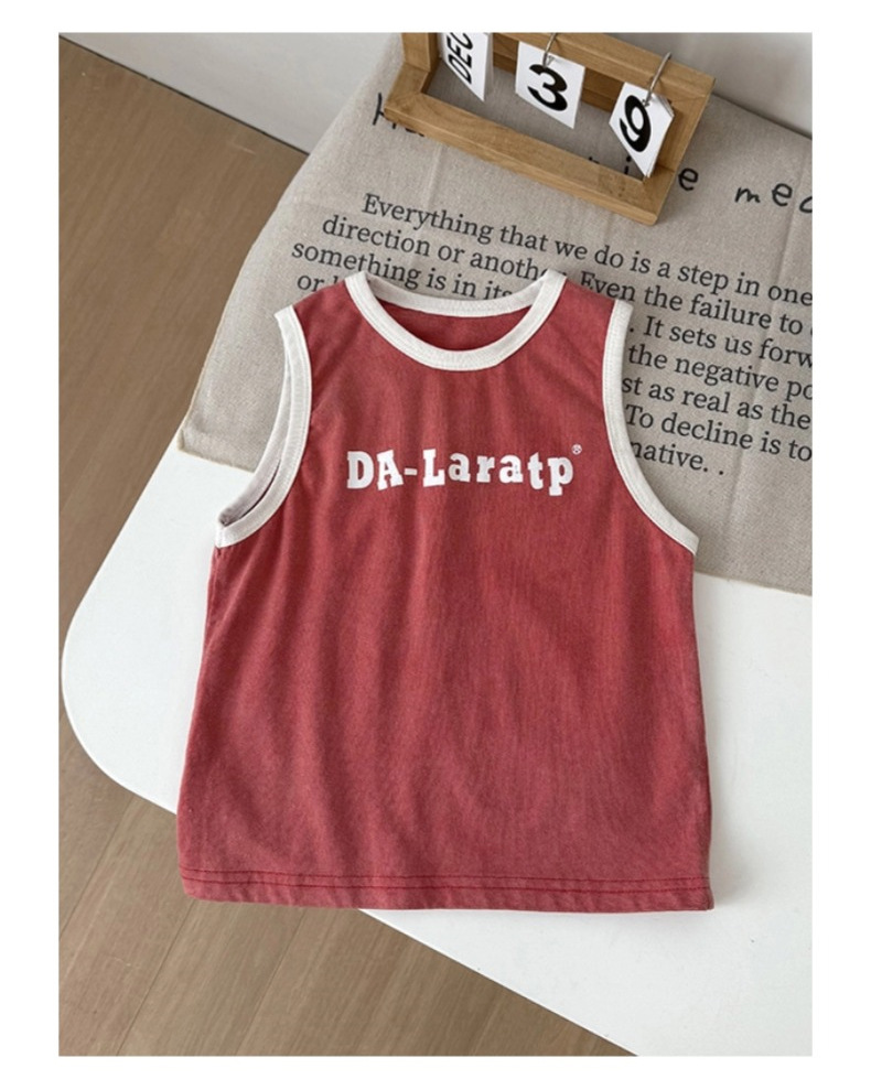 아동 여름 캐주얼 조끼 2025 새로운 스타일 소년 민소매 티셔츠 중소형 소년 한국 레드 탑 트렌디 쿨 t