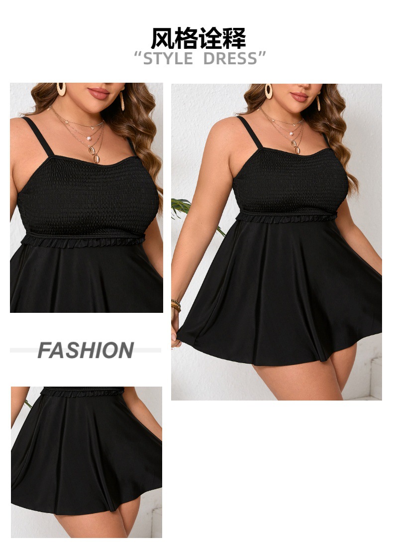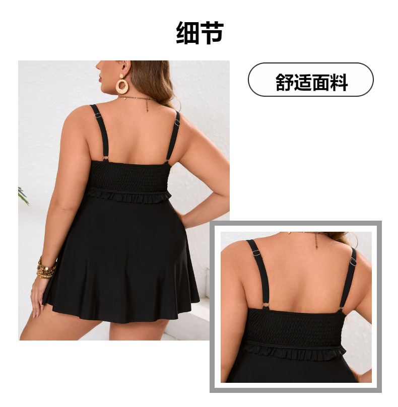 2025 유럽과 미국의 대외 무역 국경 간 새로운 대형 단색 주름 스커트 뚱뚱한 여자 배를 덮는 섹시한 원피스 수영복스토어 가기