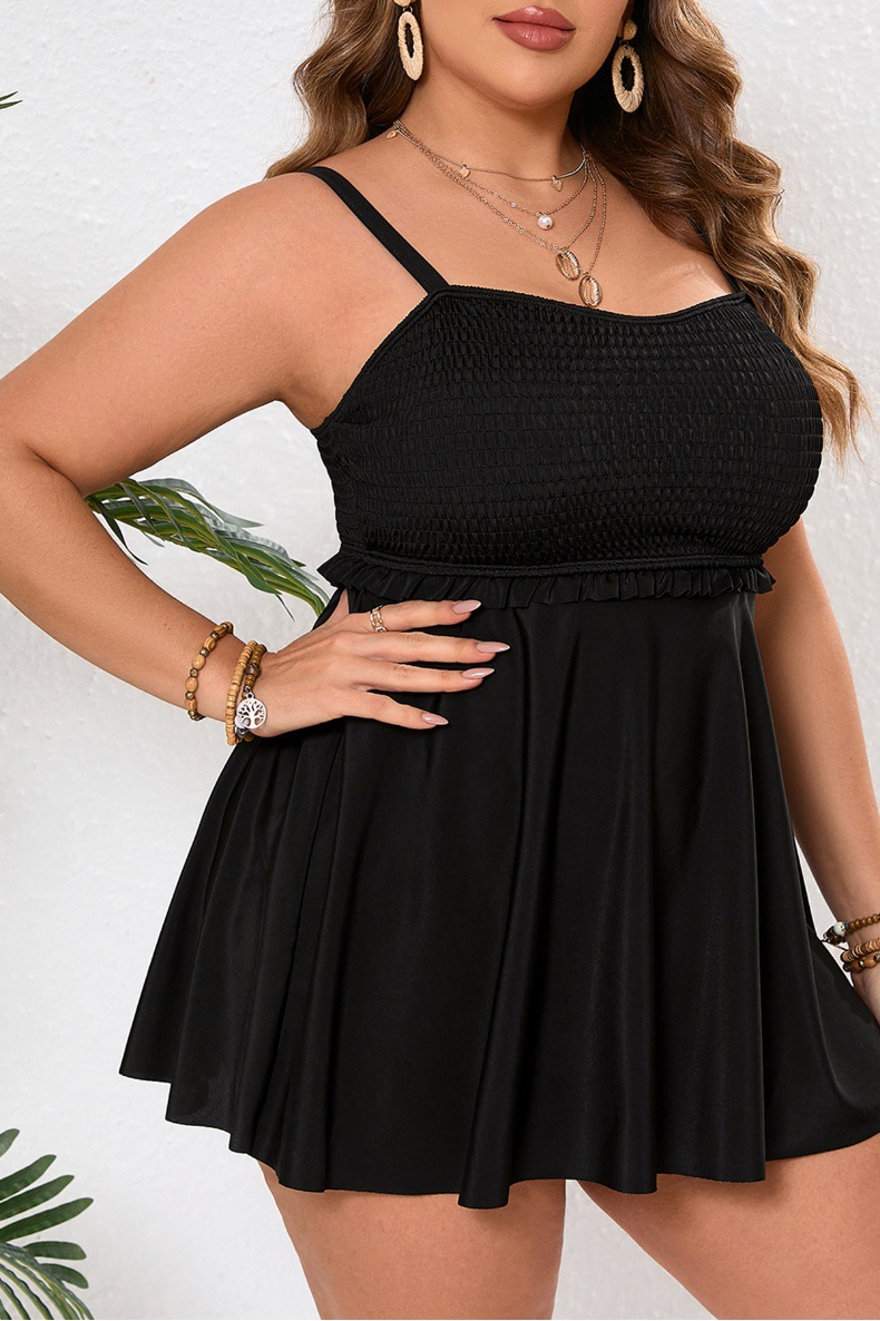 2025 유럽과 미국의 대외 무역 국경 간 새로운 대형 단색 주름 스커트 뚱뚱한 여자 배를 덮는 섹시한 원피스 수영복