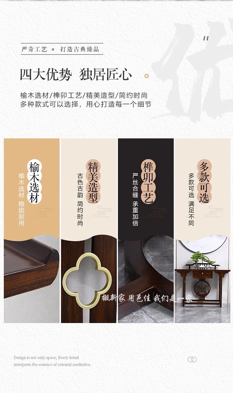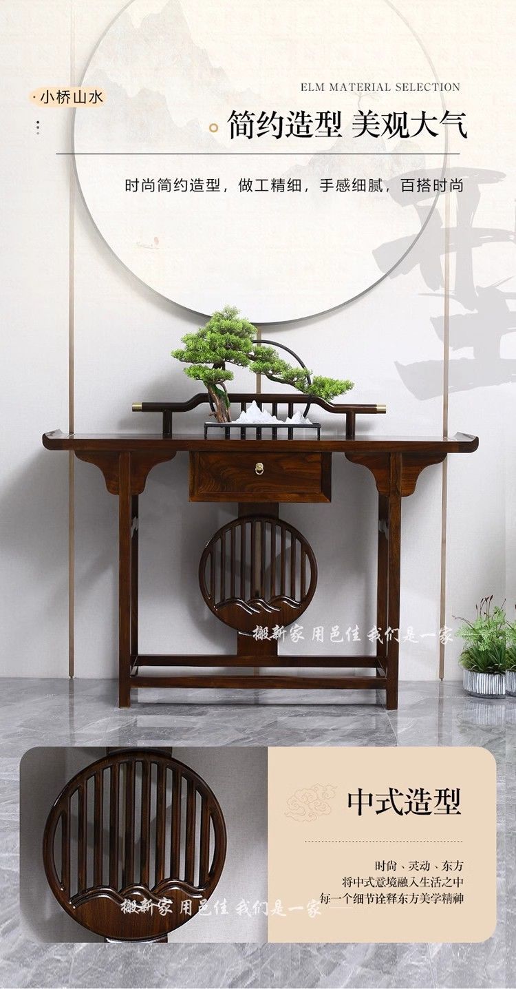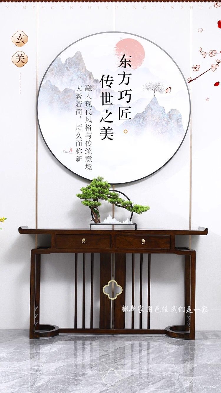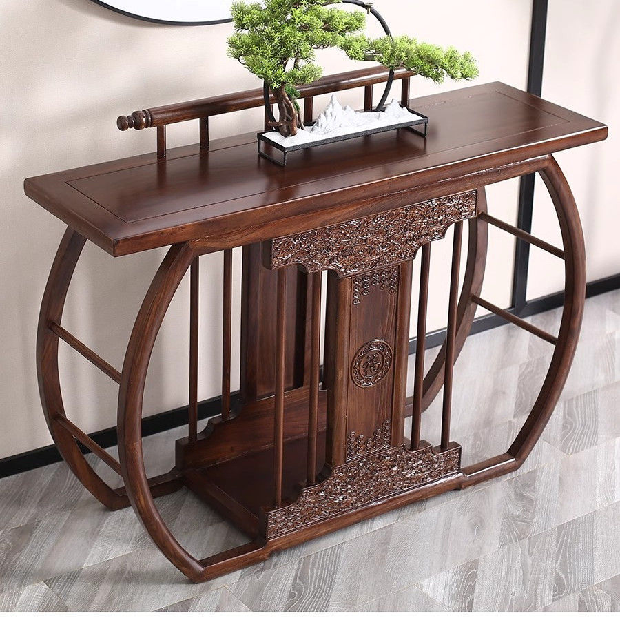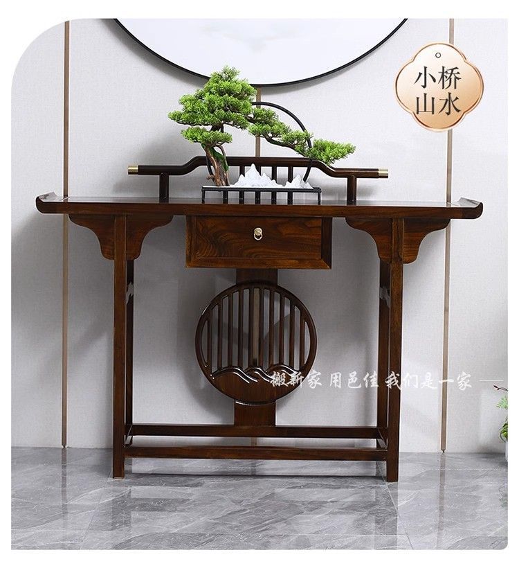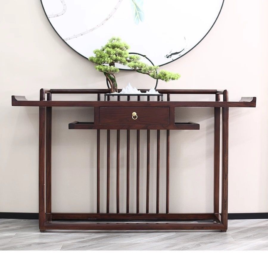 새로운 중국 스타일의 콘솔 테이블, 간단한 입구, 가벼운 럭셔리 입구, 전체 원목 선불 거실, 벽면 콘솔 캐비닛