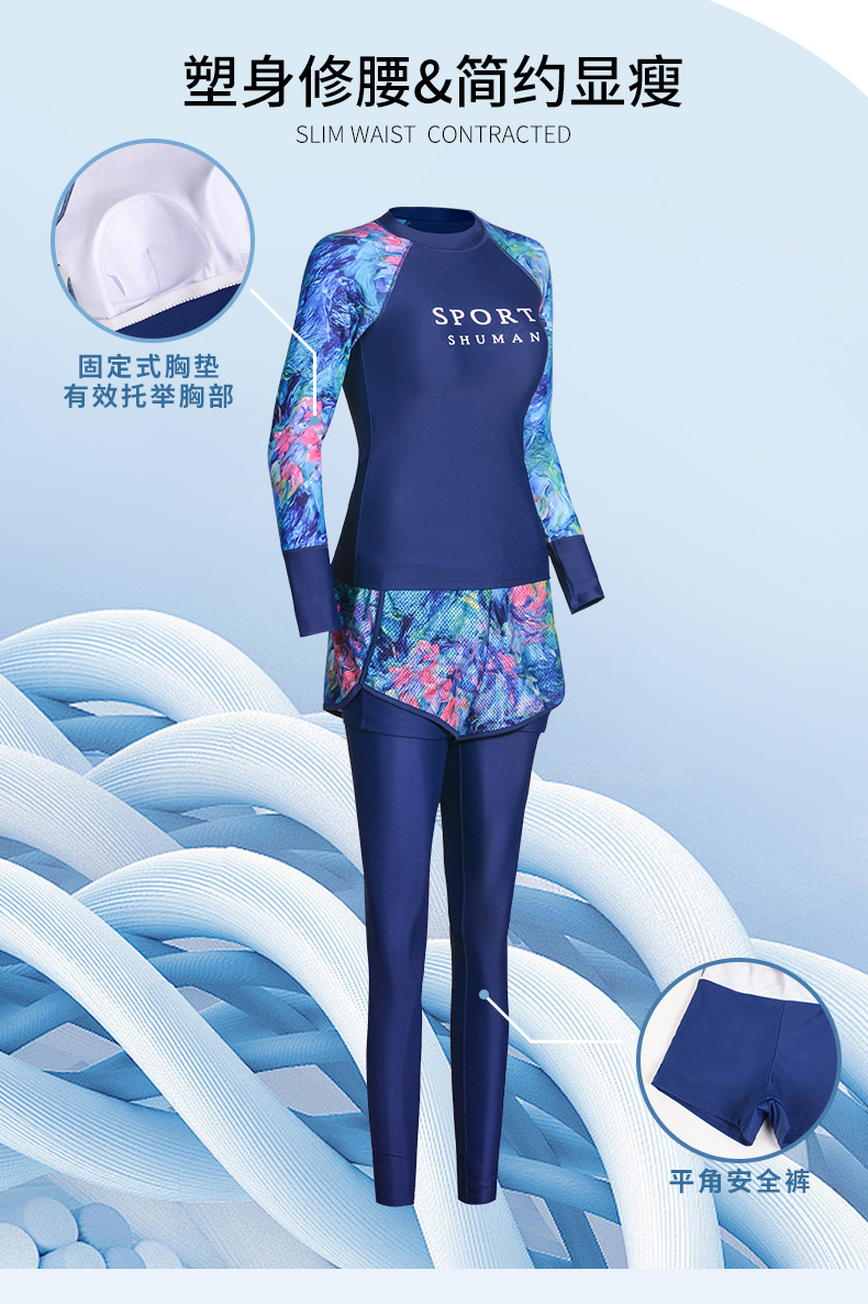 여성용 잠수복, 스플릿 수영복, 긴팔 바지, 보수적인 온천 스노클링 서핑 슈트, 해파리 슈트