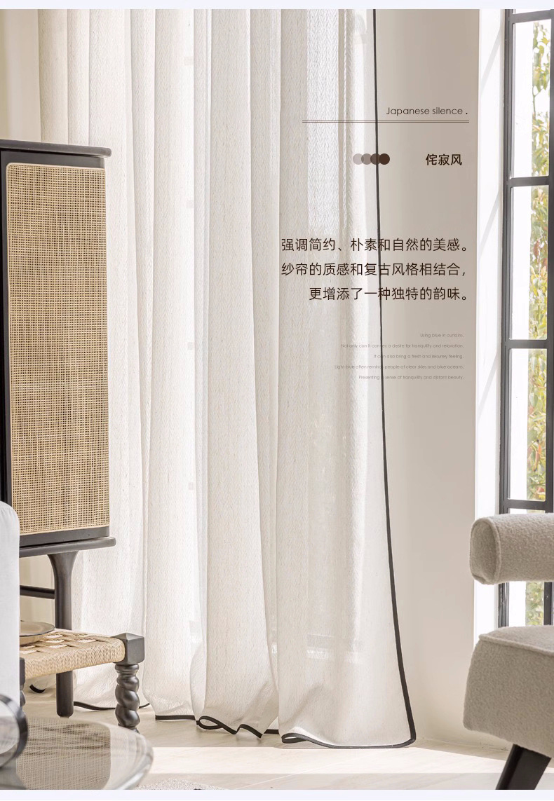 미늘무늬 린넨 원사, 중세 스타일, 반투명, 거실, 발코니, 침실, 고급 복고풍 검은색 윈도우 스크린스토어 가기
