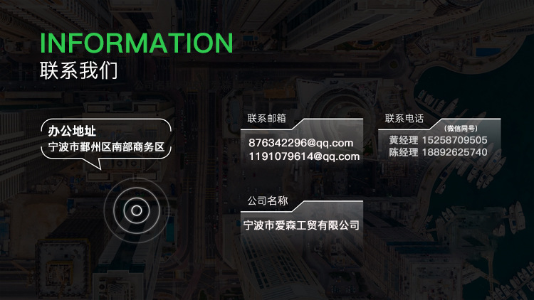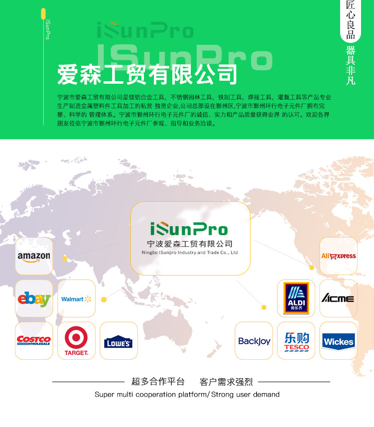 宁波爱森工贸有限公司的诚信、实力和产品质量获得业界的认可。欢迎各界朋友莅临宁波市爱森工贸有限公司参观、指导和业务洽谈。