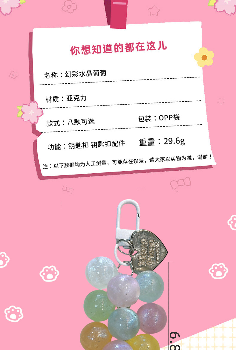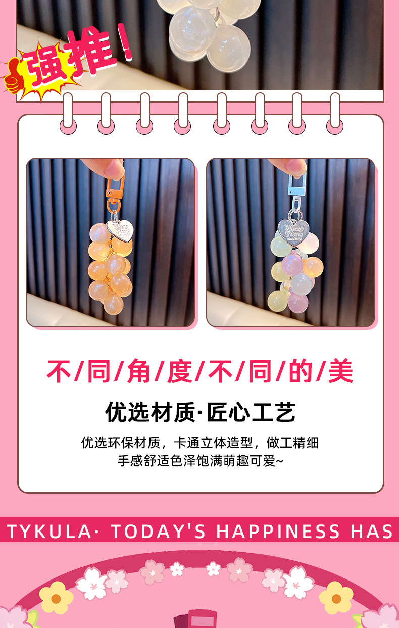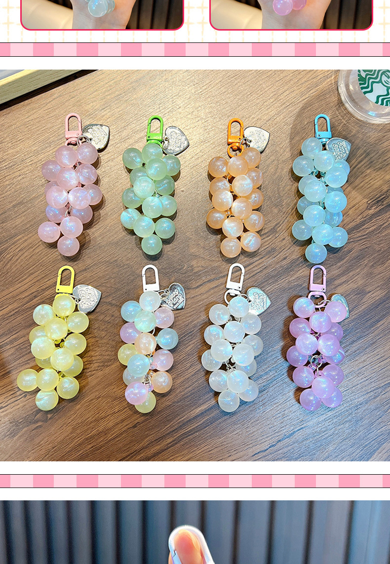 아크릴 신선한 포도 구슬 키 체인 귀여운 커플 가방 펜던트 여성 창조적 인 자동차 키 체인스토어 가기