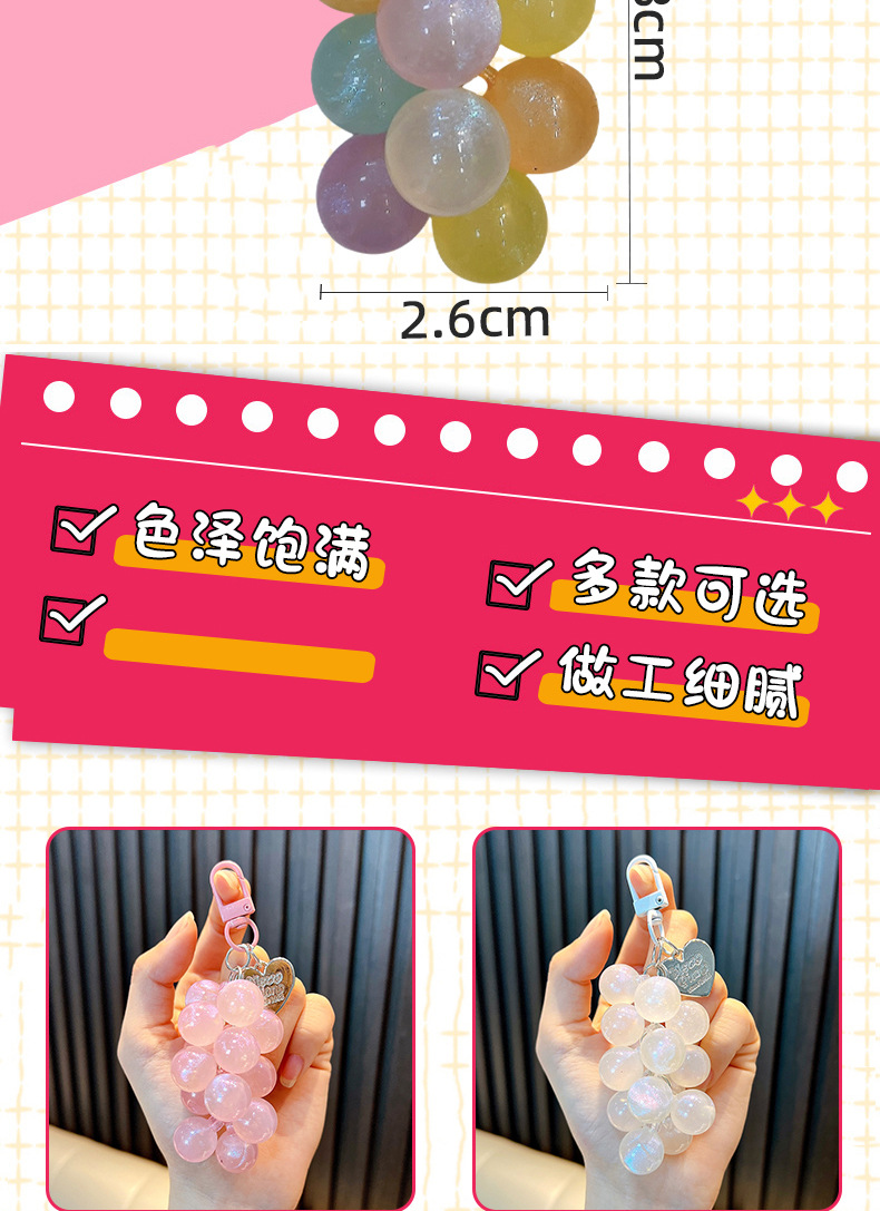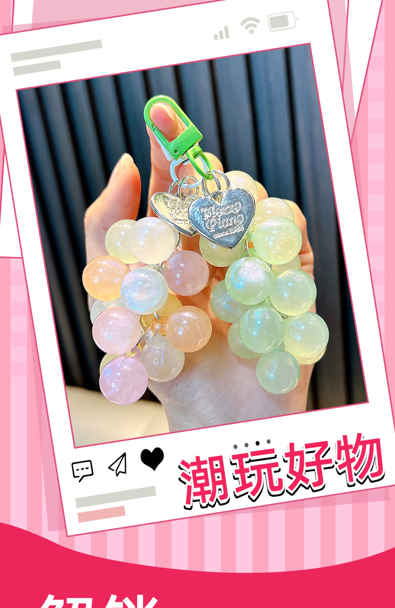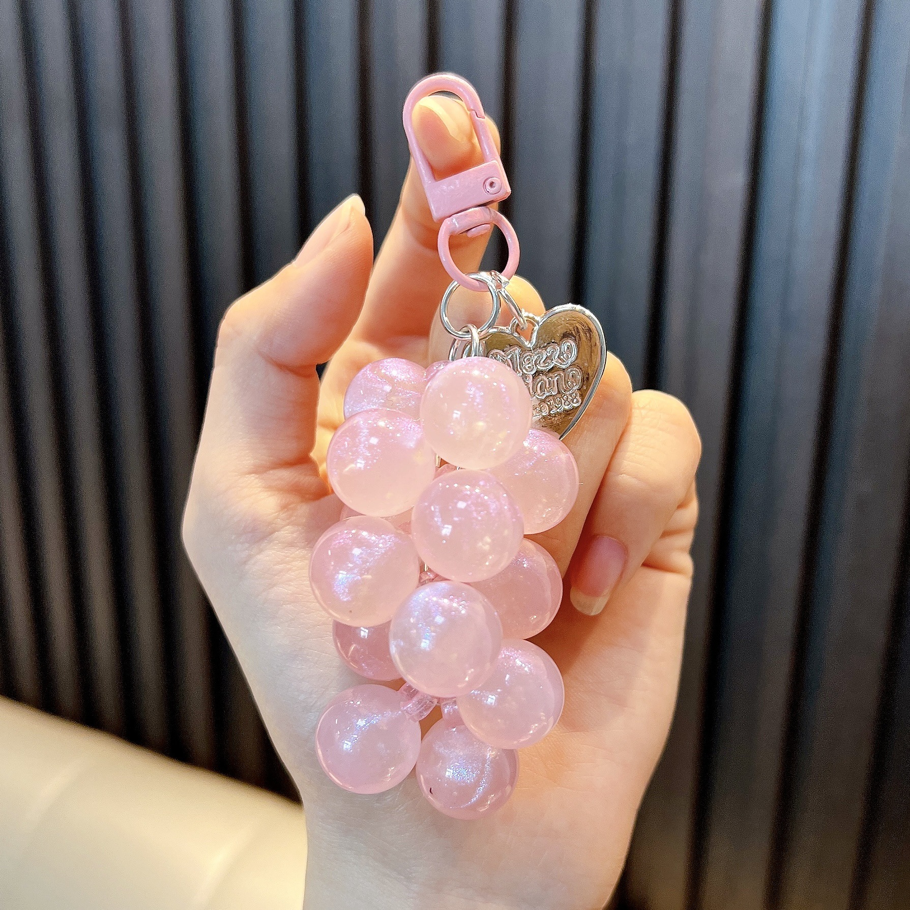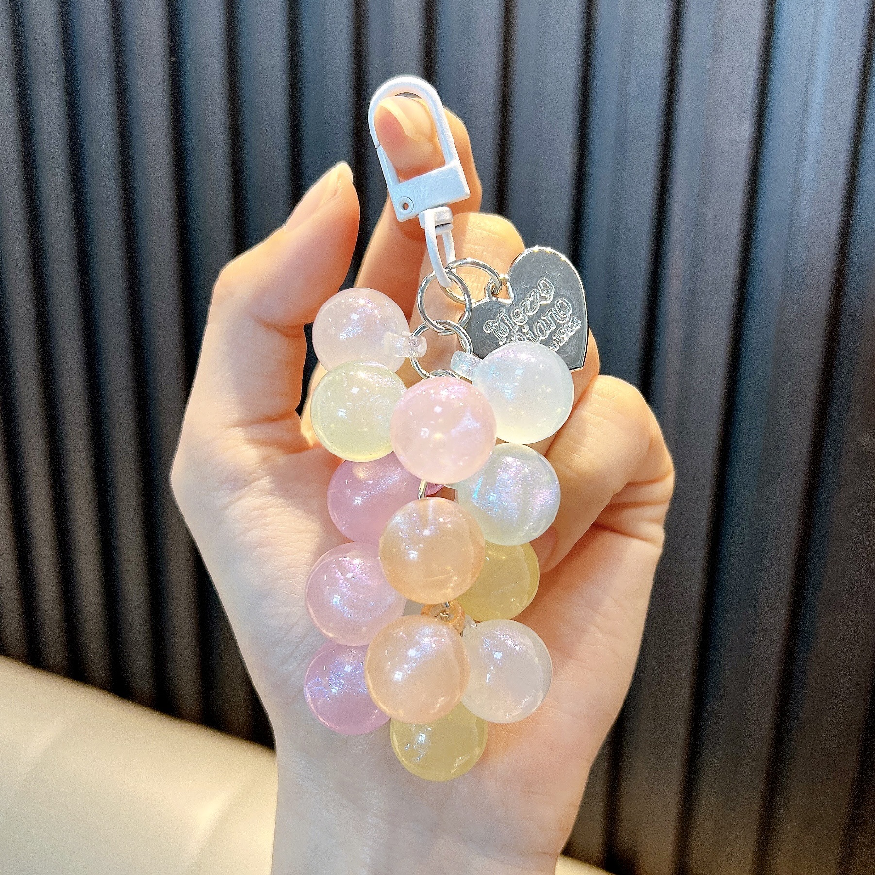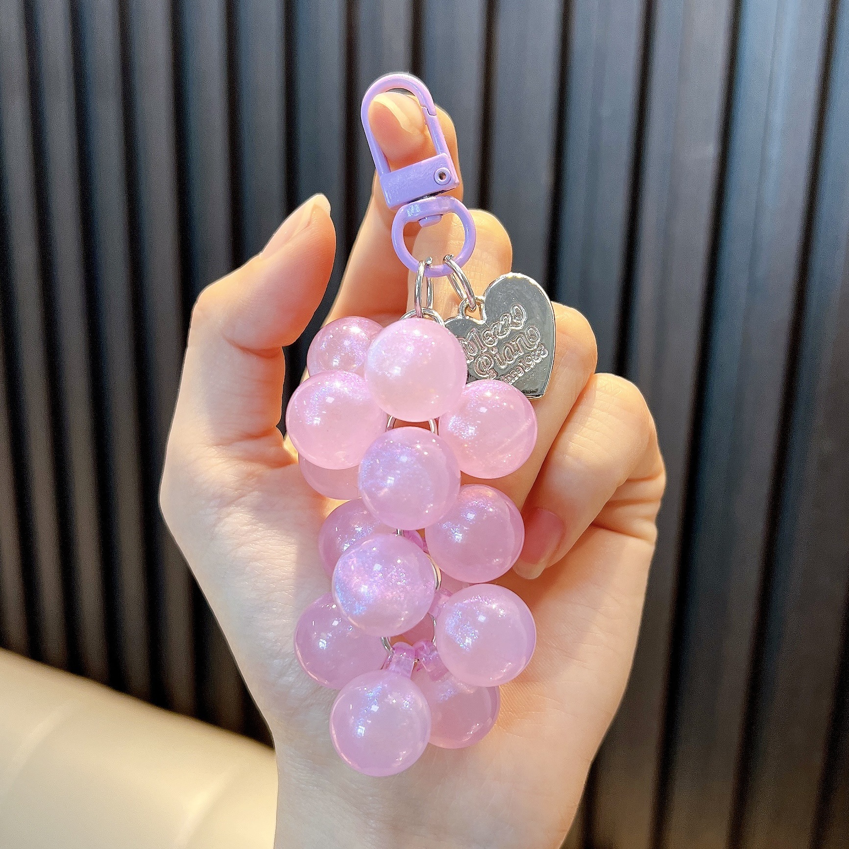 아크릴 신선한 포도 구슬 키 체인 귀여운 커플 가방 펜던트 여성 창조적 인 자동차 키 체인