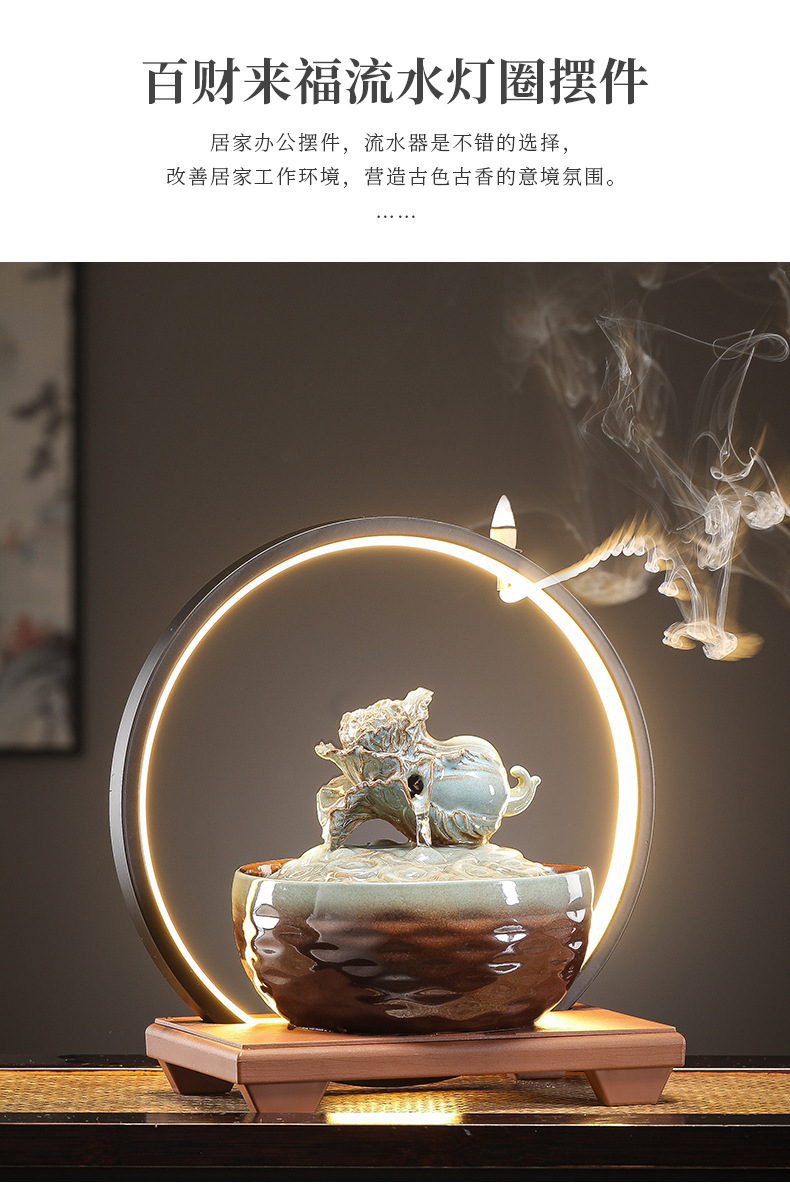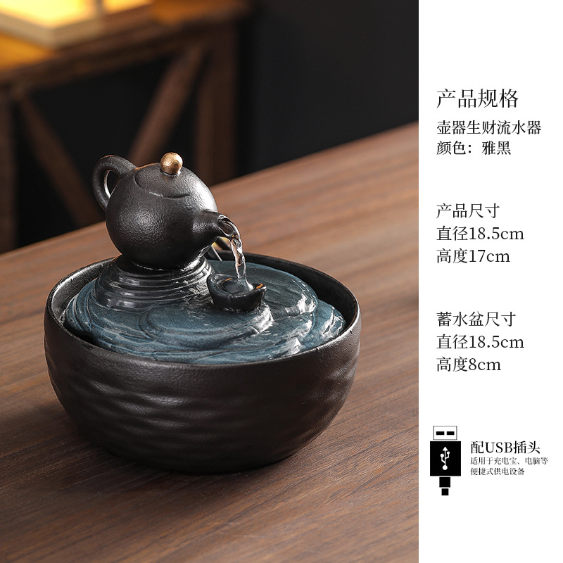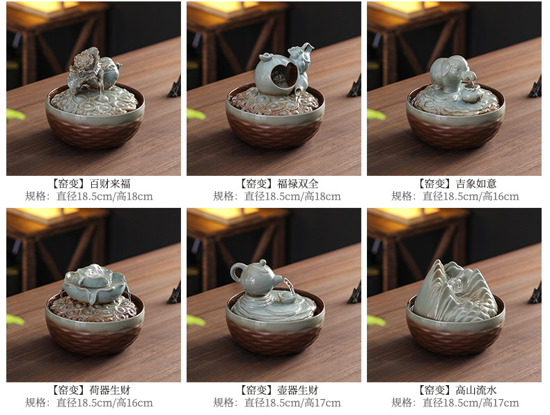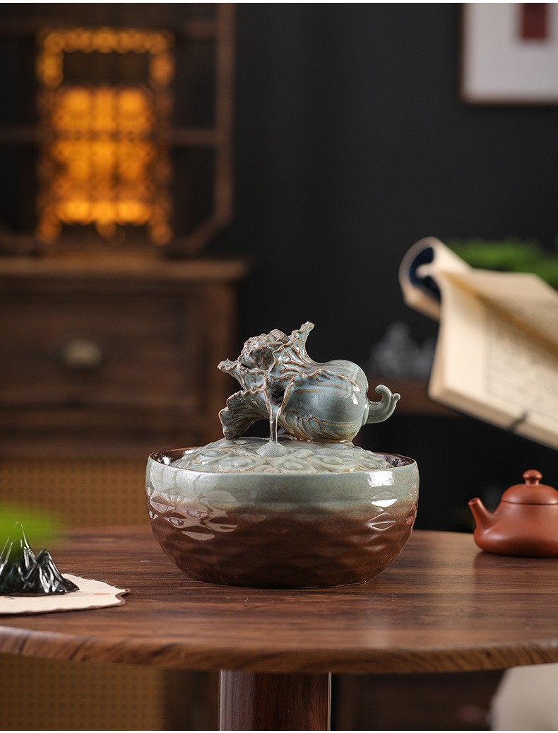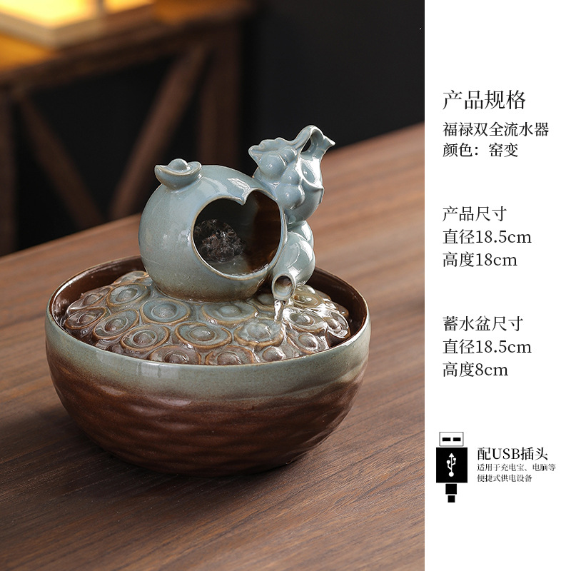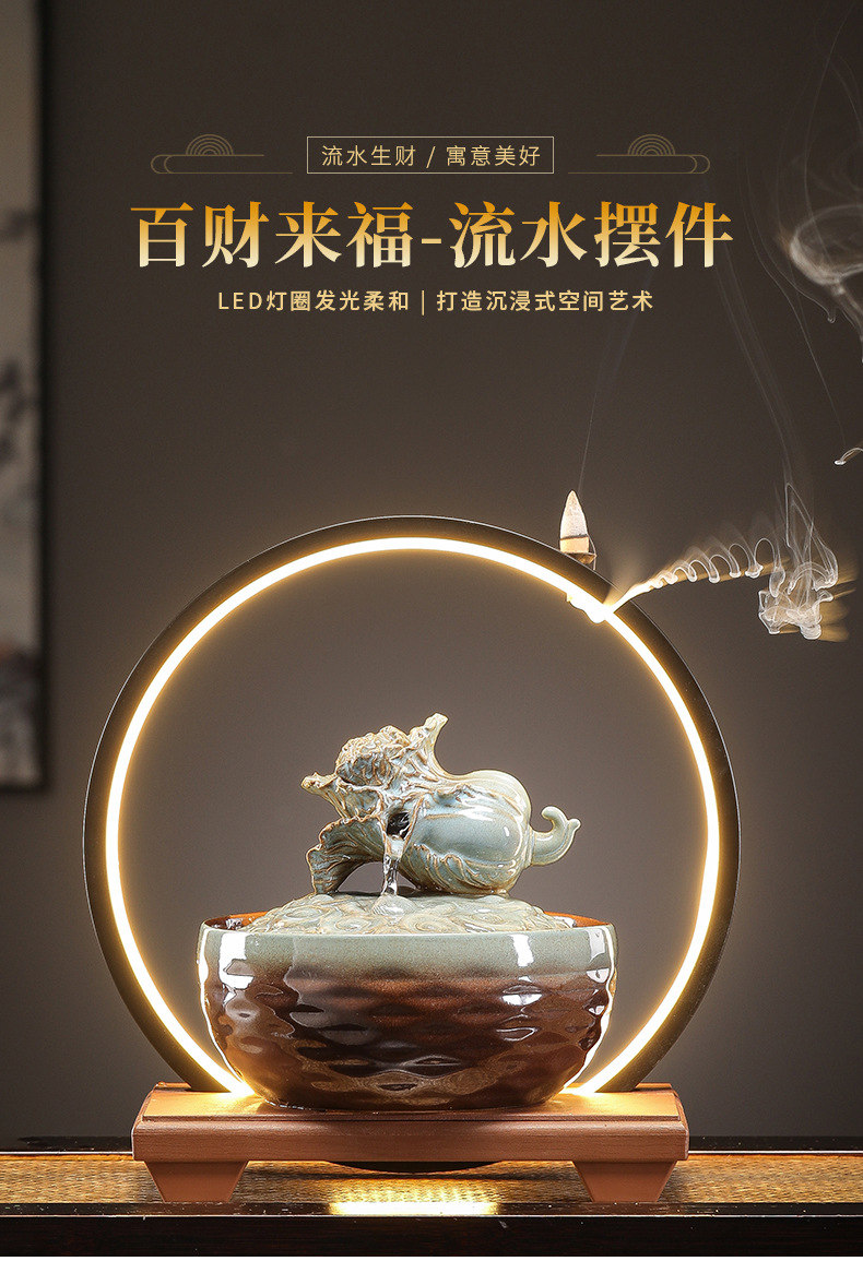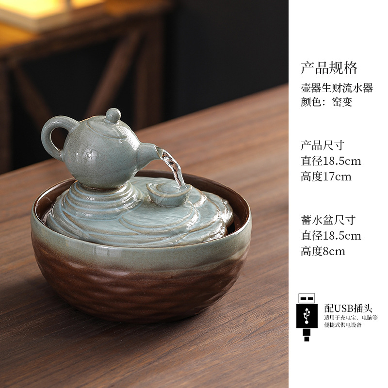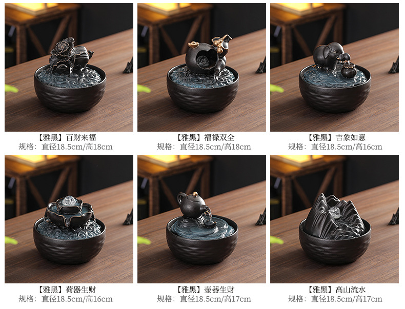 세라믹 팔각형 물놀이 장식품 순환수 사무실 책상 차탁 장식품 행운을 부르는 개업 장식품 중국식 물놀이 장치