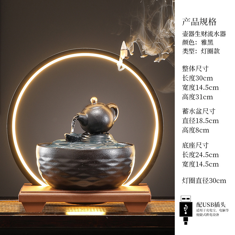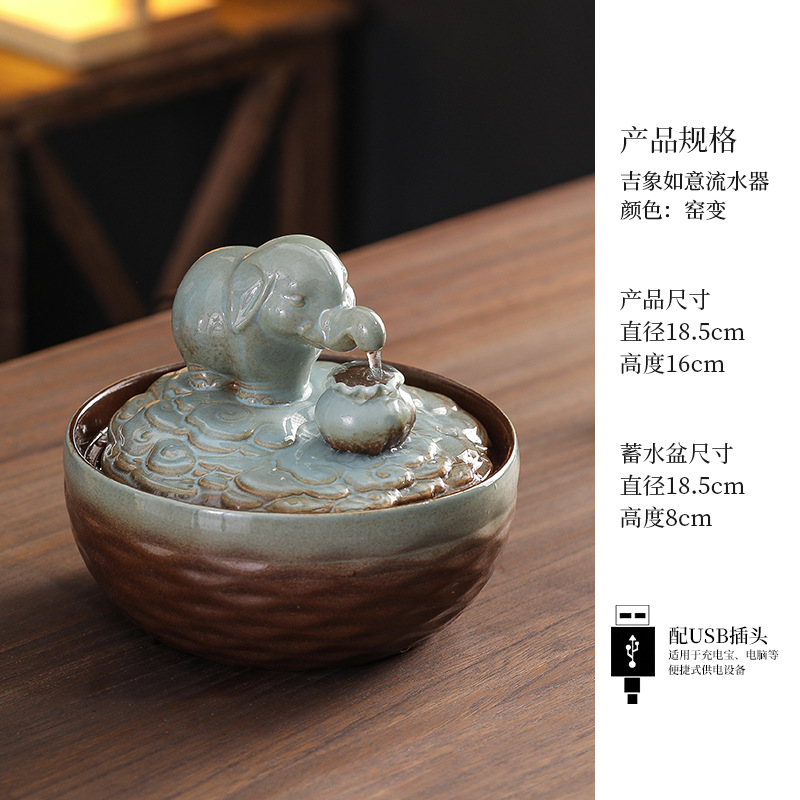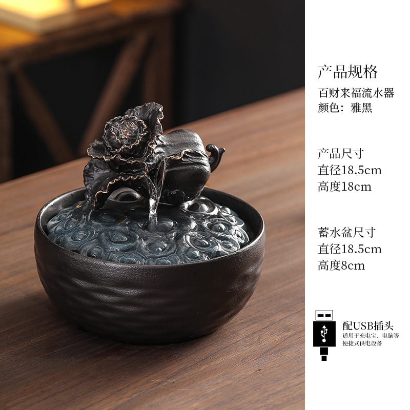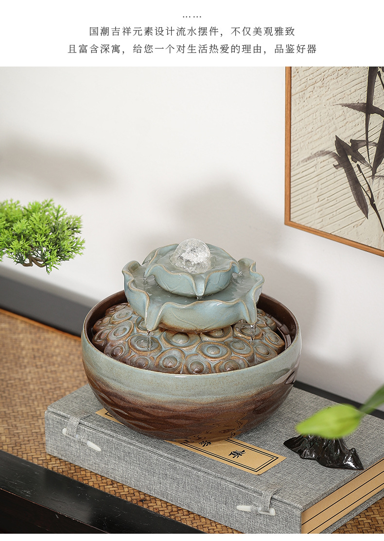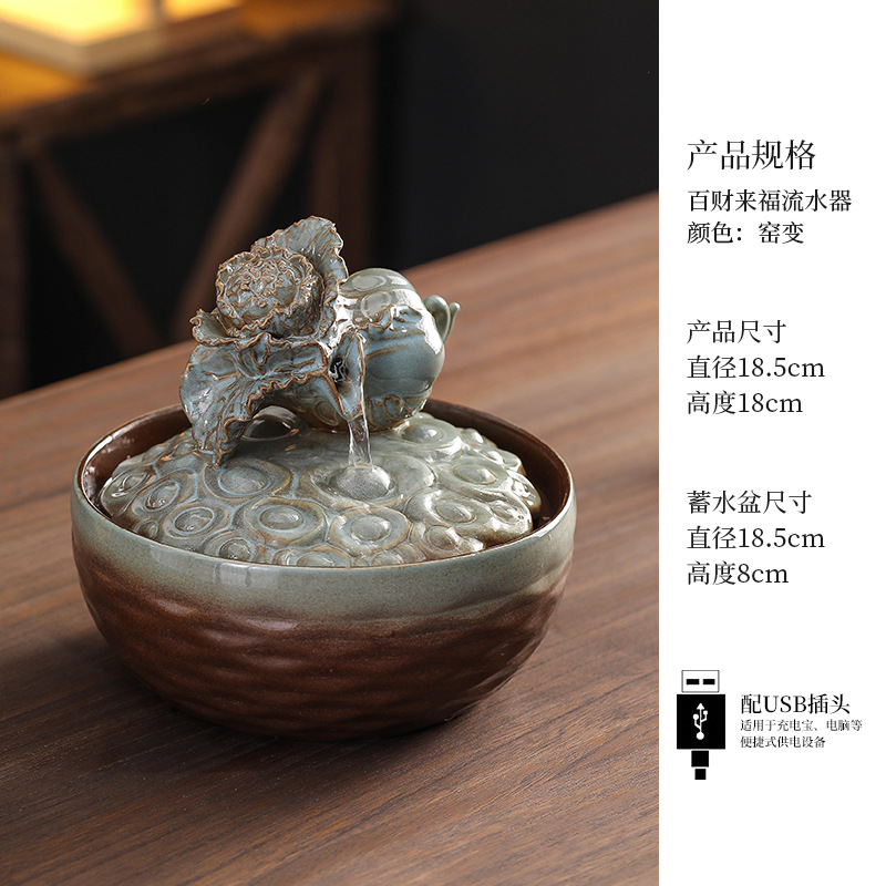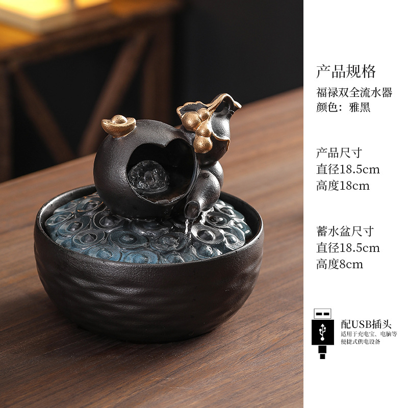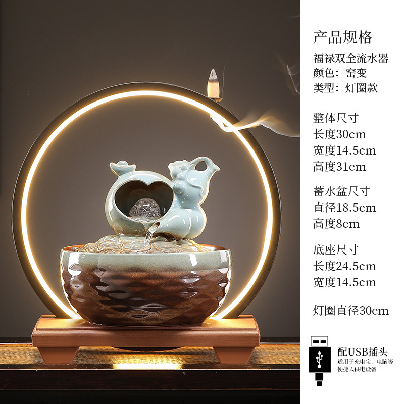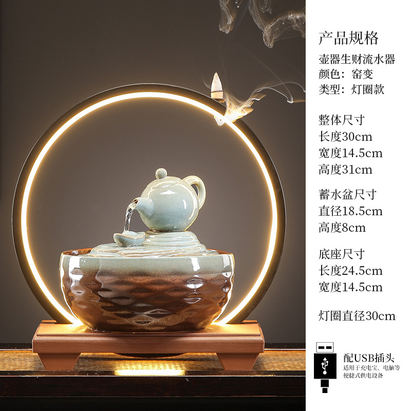 세라믹 팔각형 물놀이 장식품 순환수 사무실 책상 차탁 장식품 행운을 부르는 개업 장식품 중국식 물놀이 장치