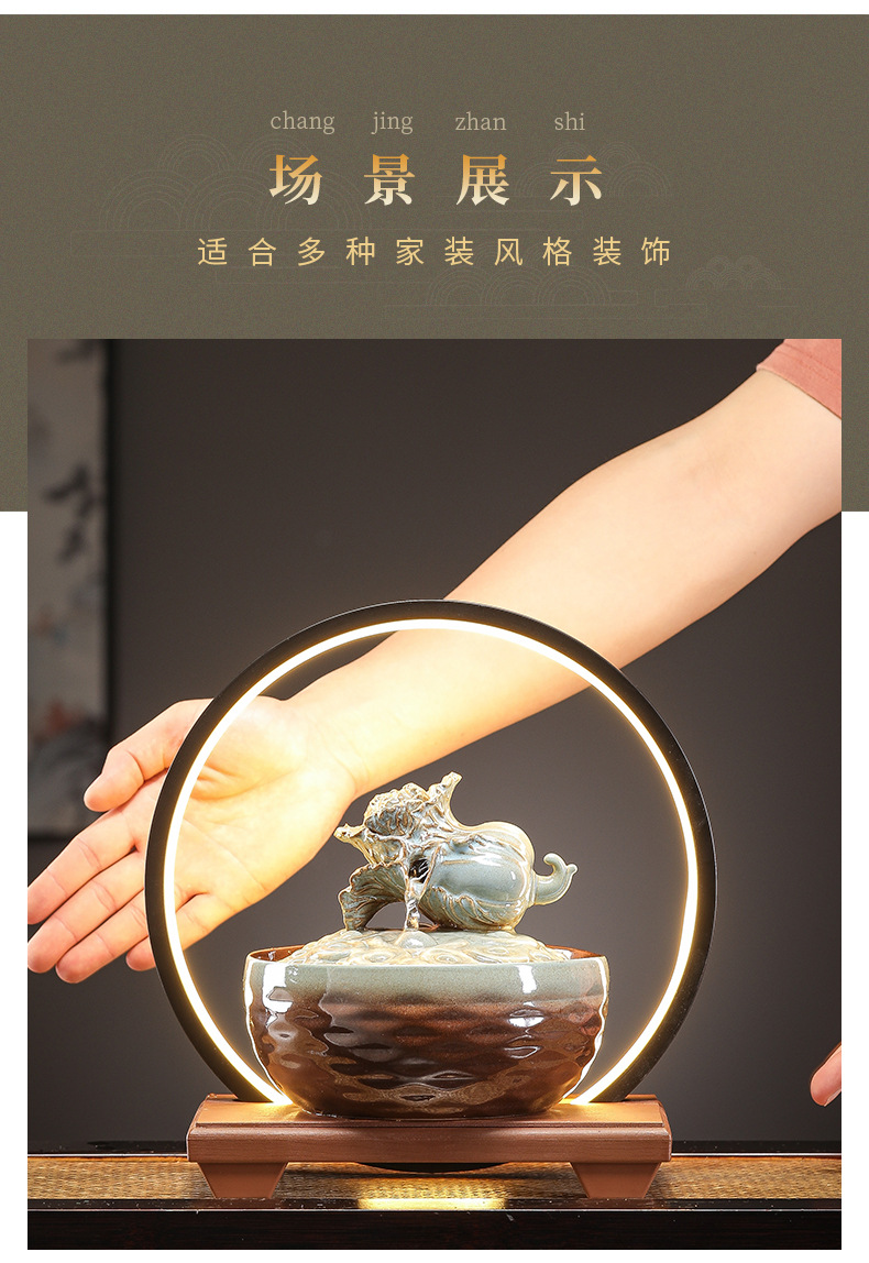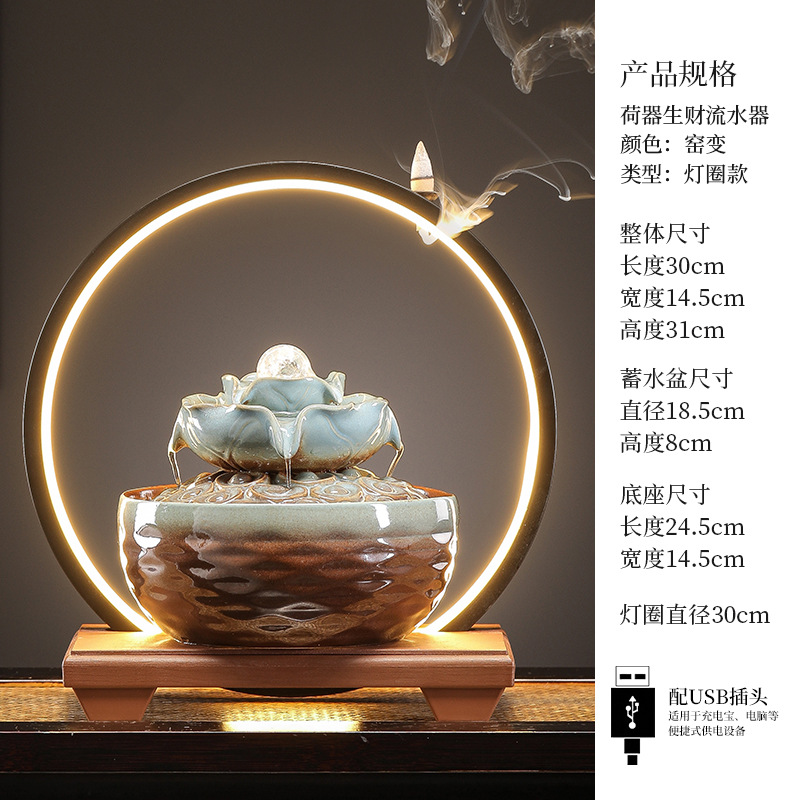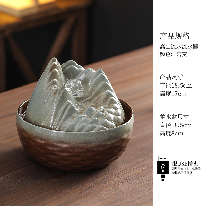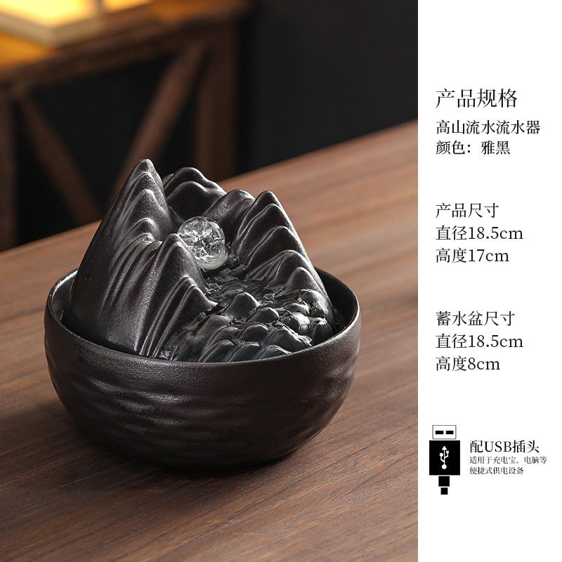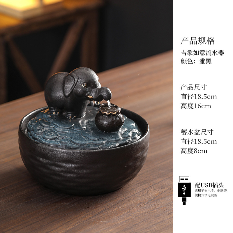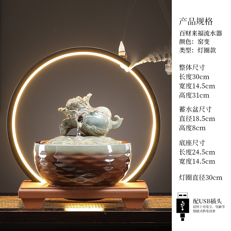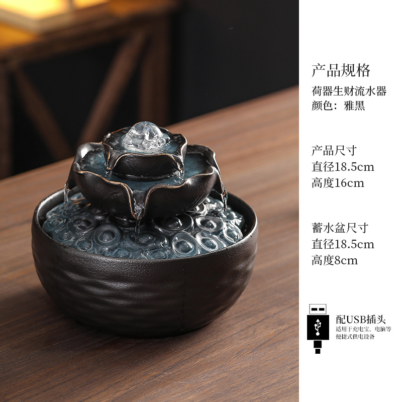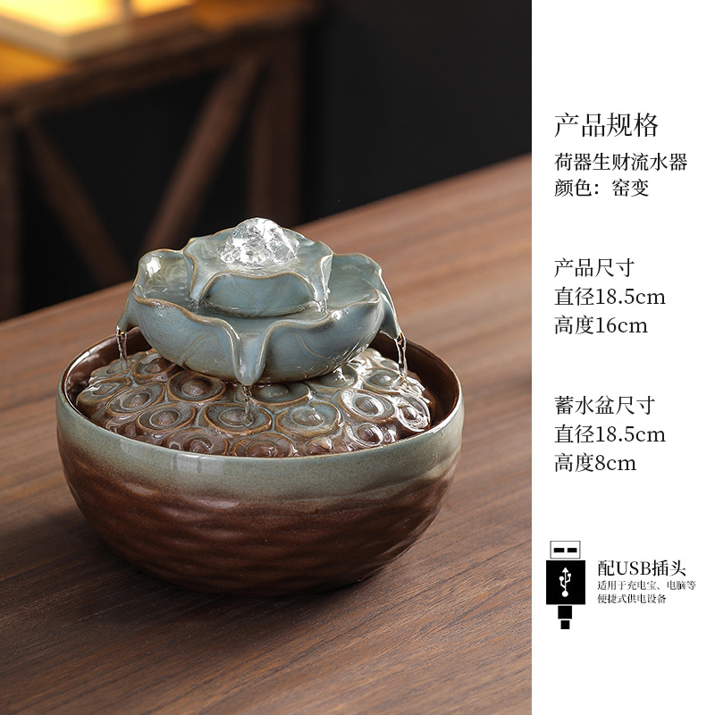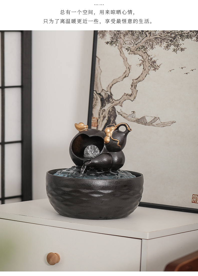 세라믹 팔각형 물놀이 장식품 순환수 사무실 책상 차탁 장식품 행운을 부르는 개업 장식품 중국식 물놀이 장치