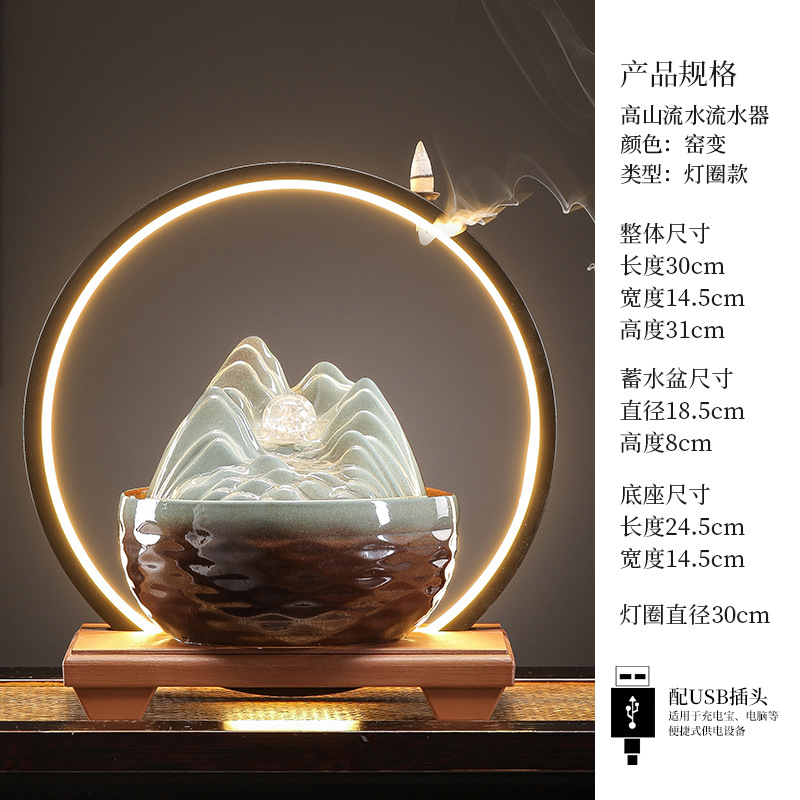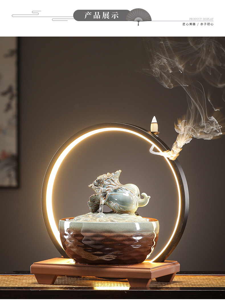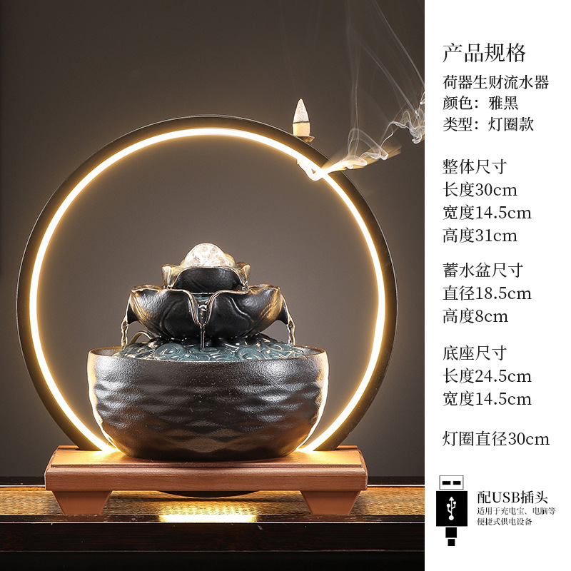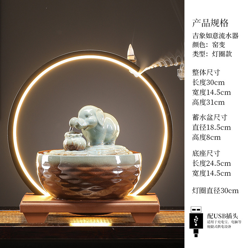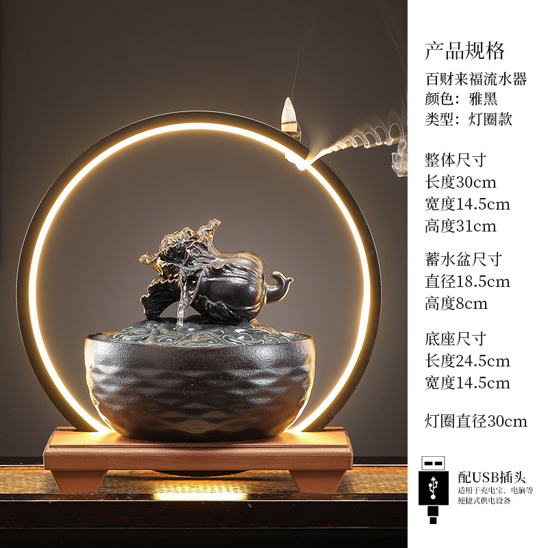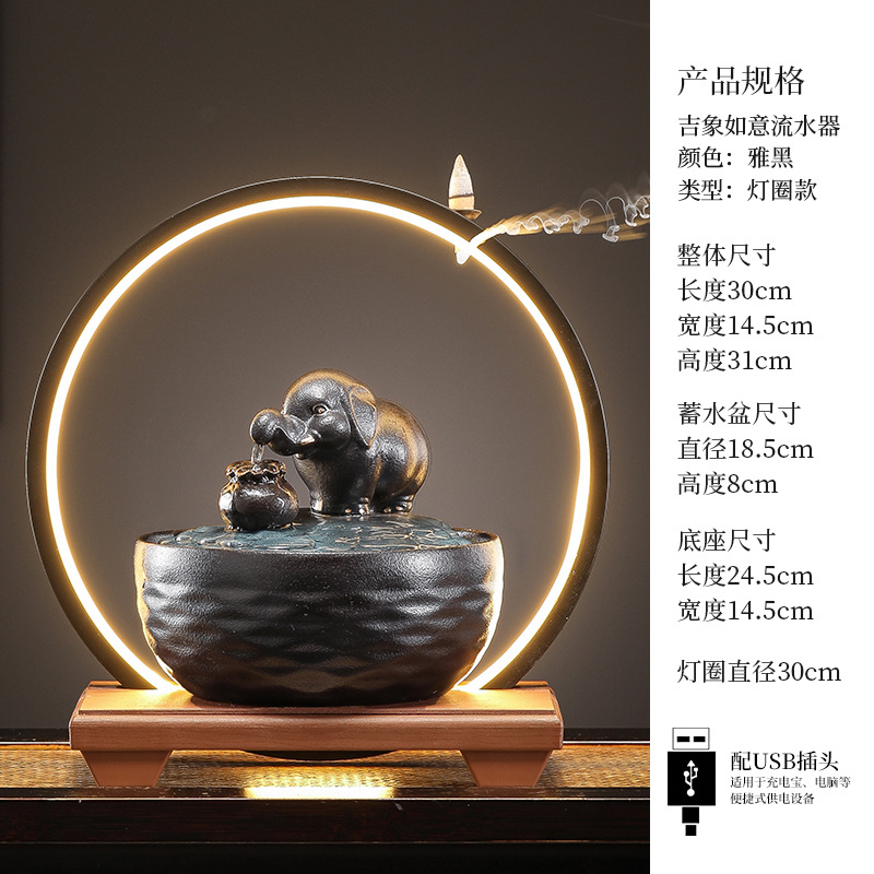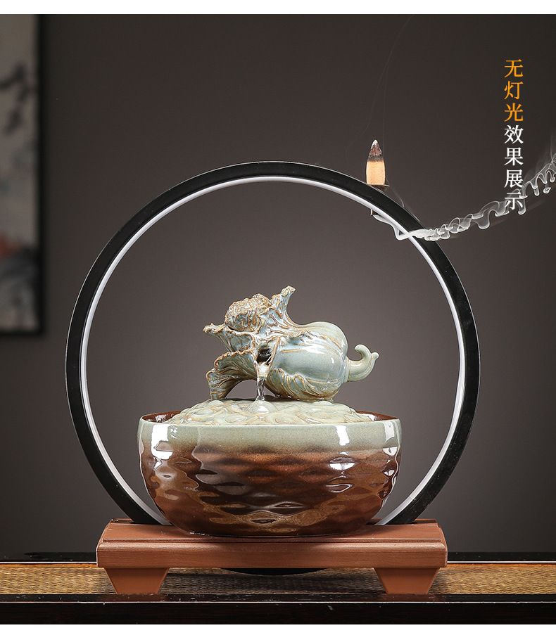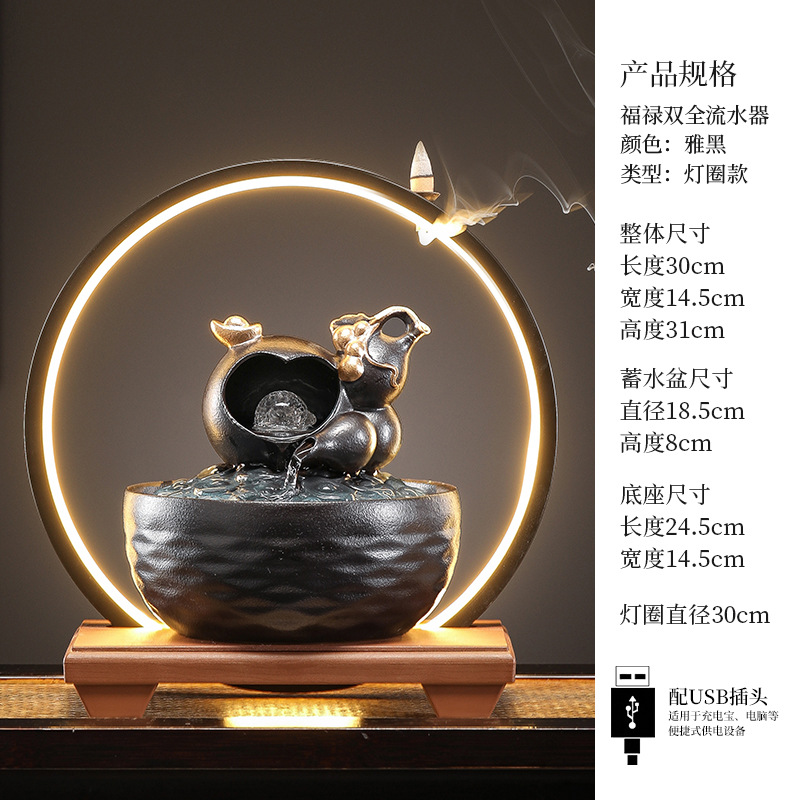 세라믹 팔각형 물놀이 장식품 순환수 사무실 책상 차탁 장식품 행운을 부르는 개업 장식품 중국식 물놀이 장치