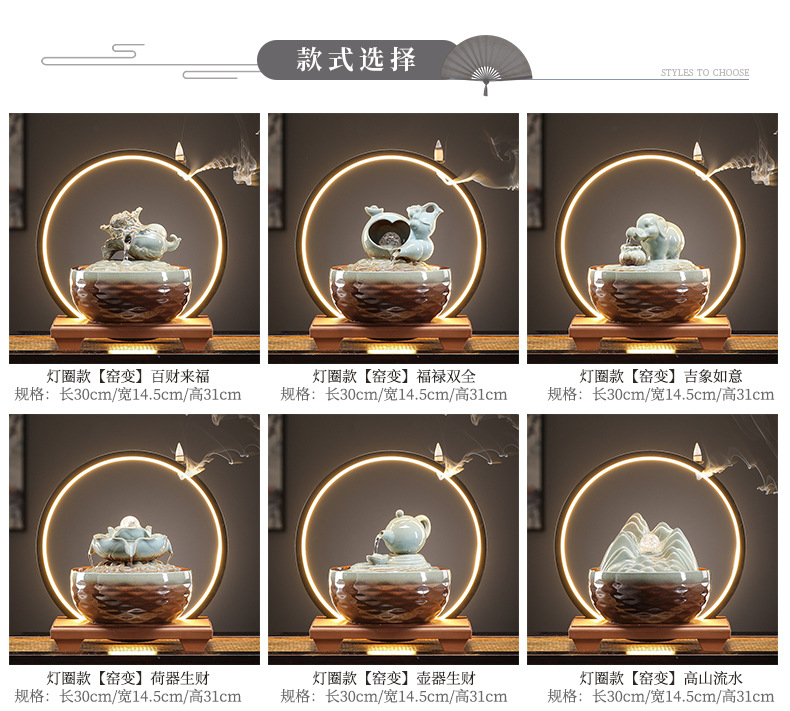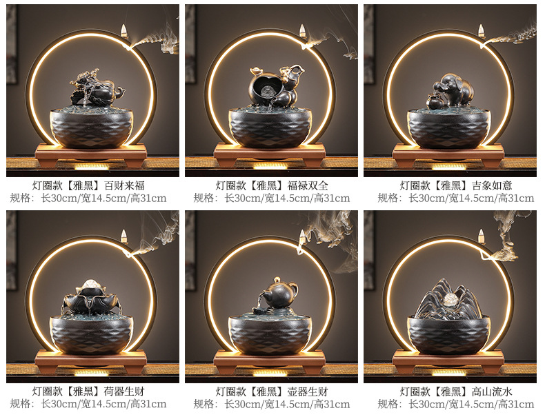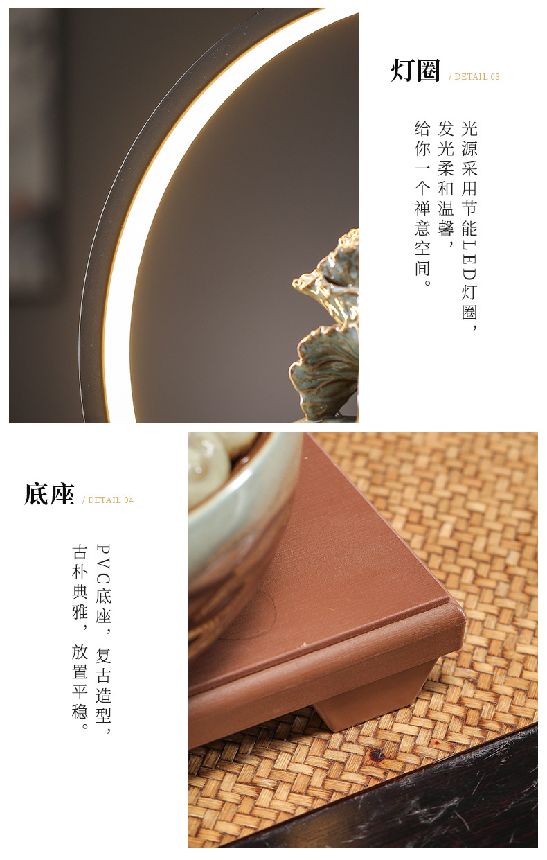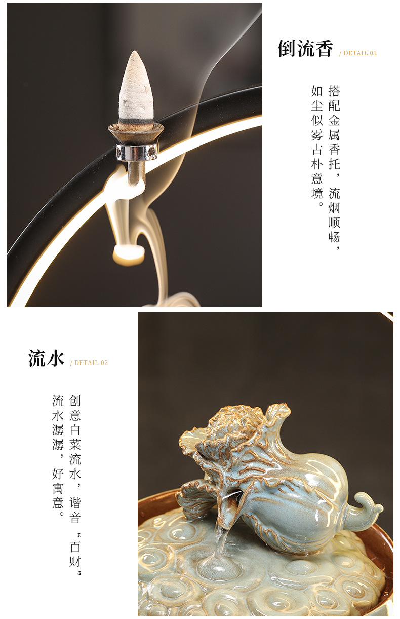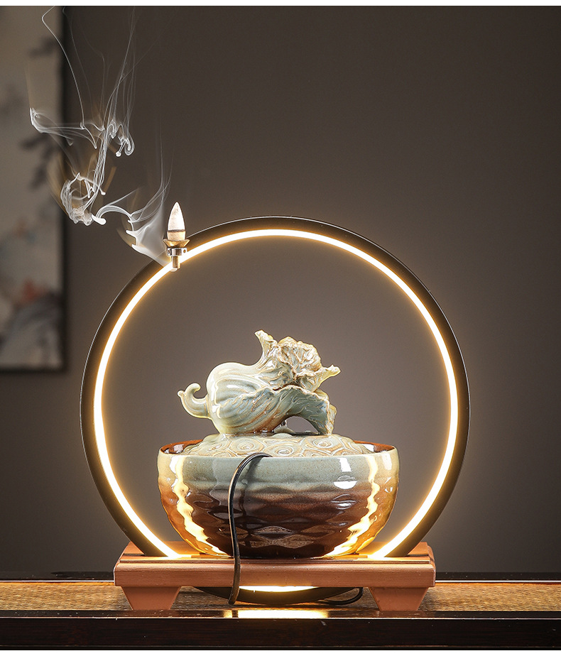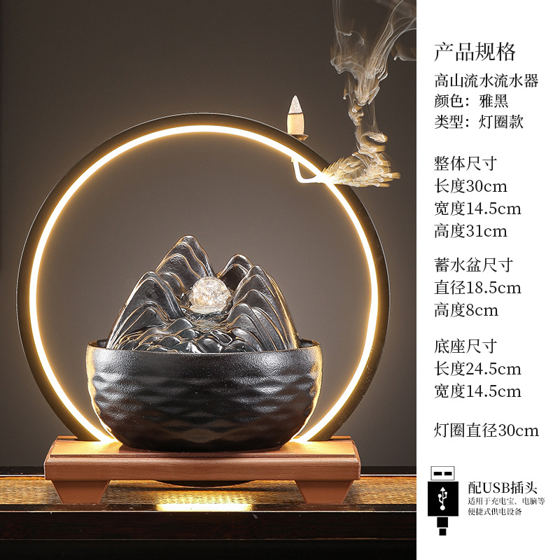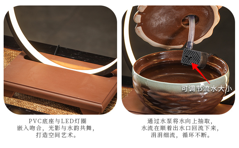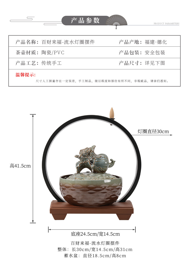 세라믹 팔각형 물놀이 장식품 순환수 사무실 책상 차탁 장식품 행운을 부르는 개업 장식품 중국식 물놀이 장치