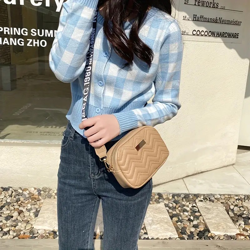 새로운 프린트 숄더 스트랩 크로스 바디 한국어 버전 웨이브 패턴 작은 사각형 가방 2025 여성용 가방 여성용 자수 가방스토어 가기
