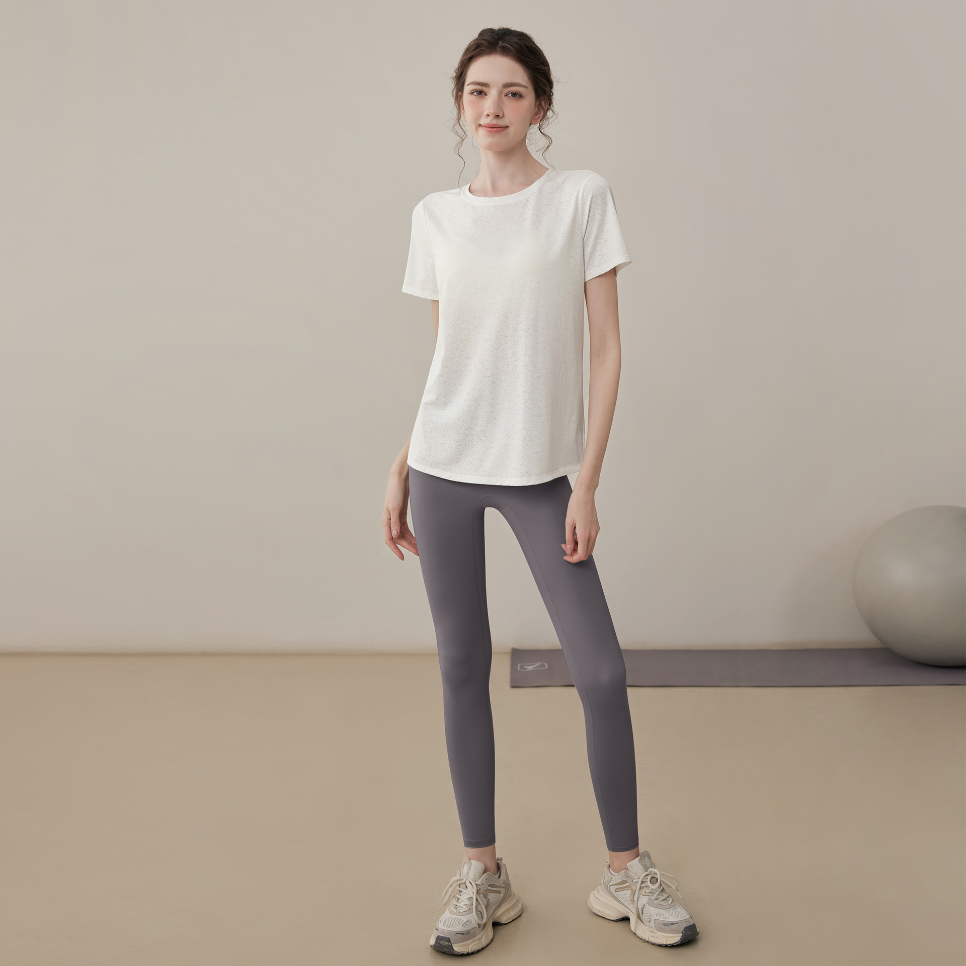• 흰색 상의 + 회색 보라색 바지