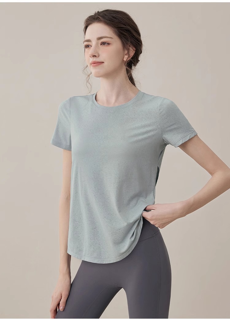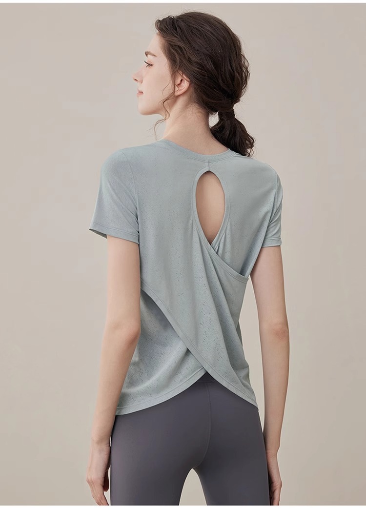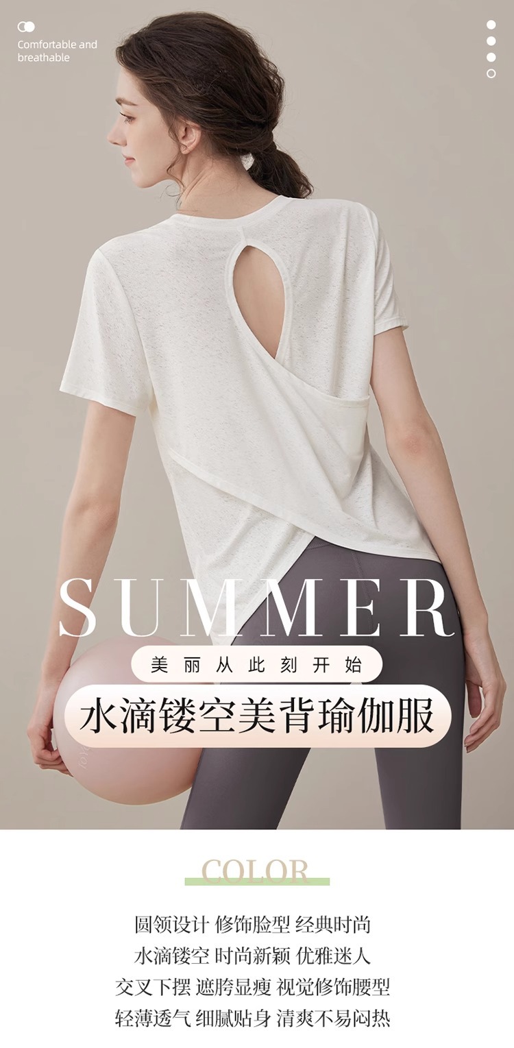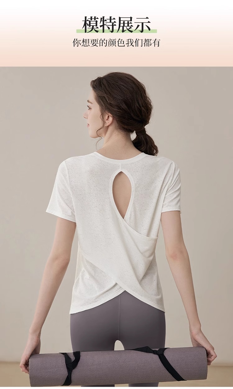 여름 2025 새로운 피트니스 요가 짧은 소매 통기성 중공 요가 세트 스포츠 최고 요가 의류 여성스토어 가기