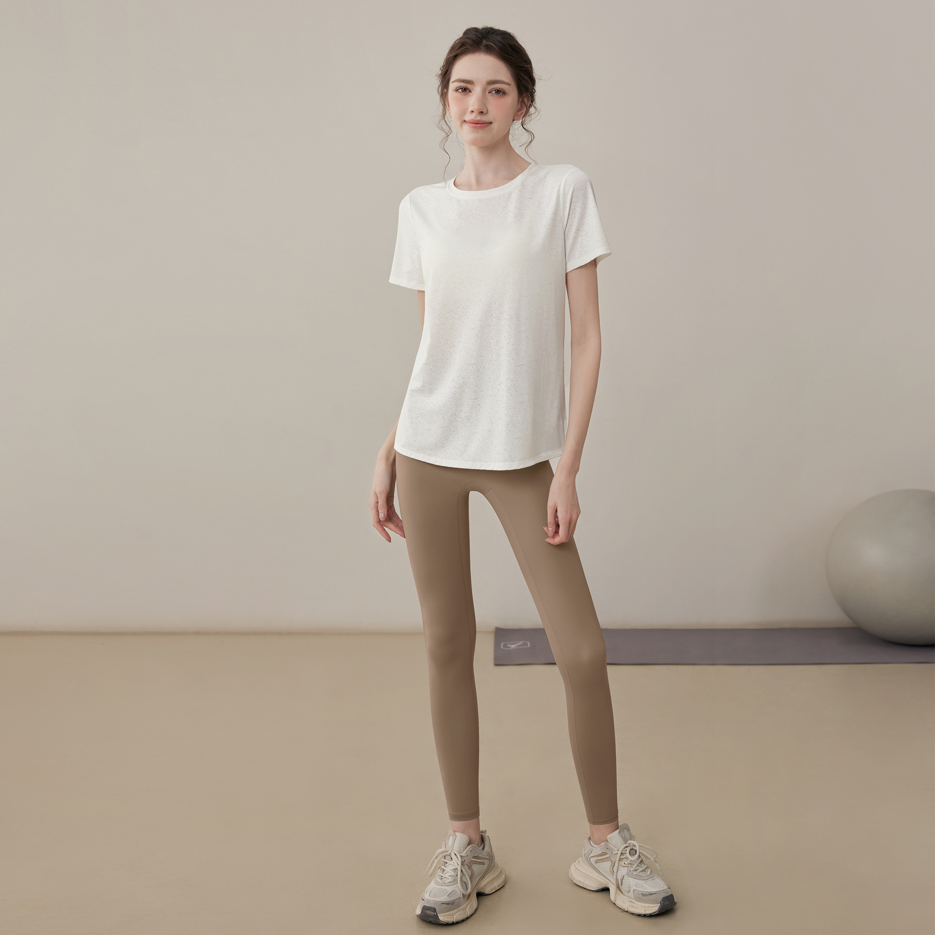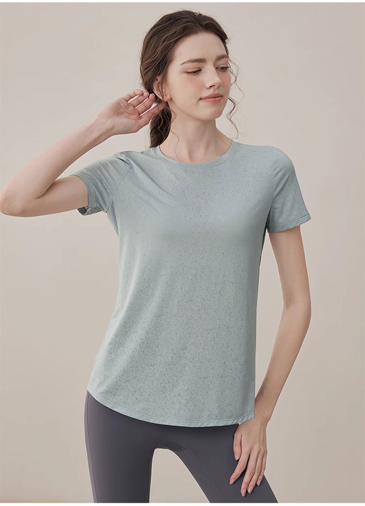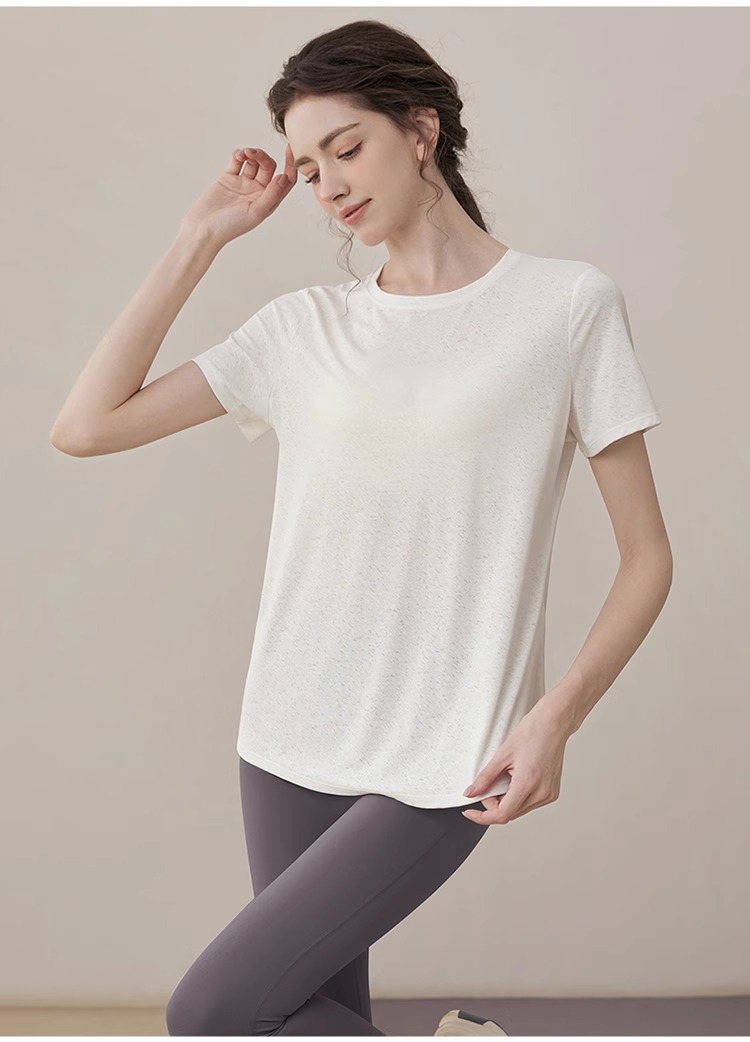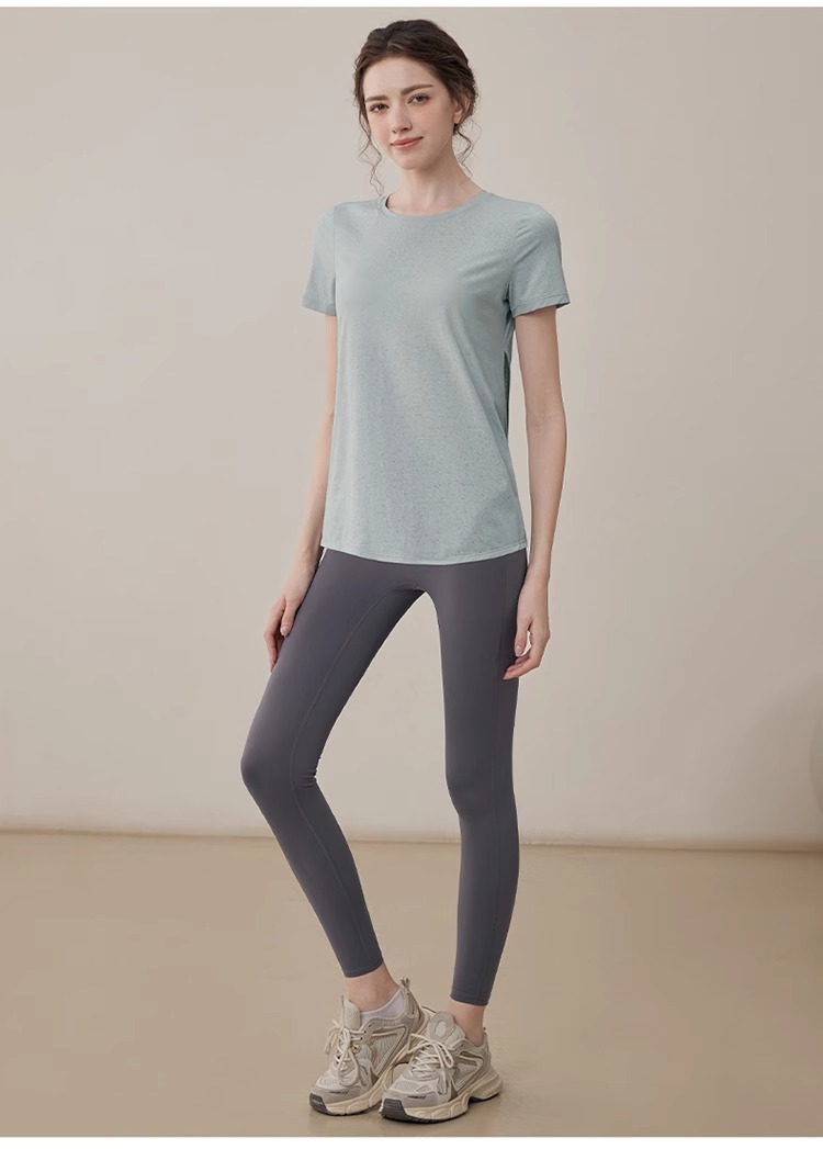 여름 2025 새로운 피트니스 요가 짧은 소매 통기성 중공 요가 세트 스포츠 최고 요가 의류 여성스토어 가기