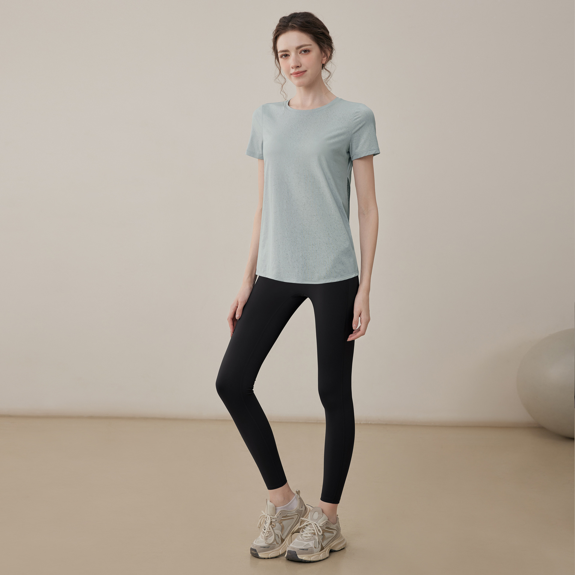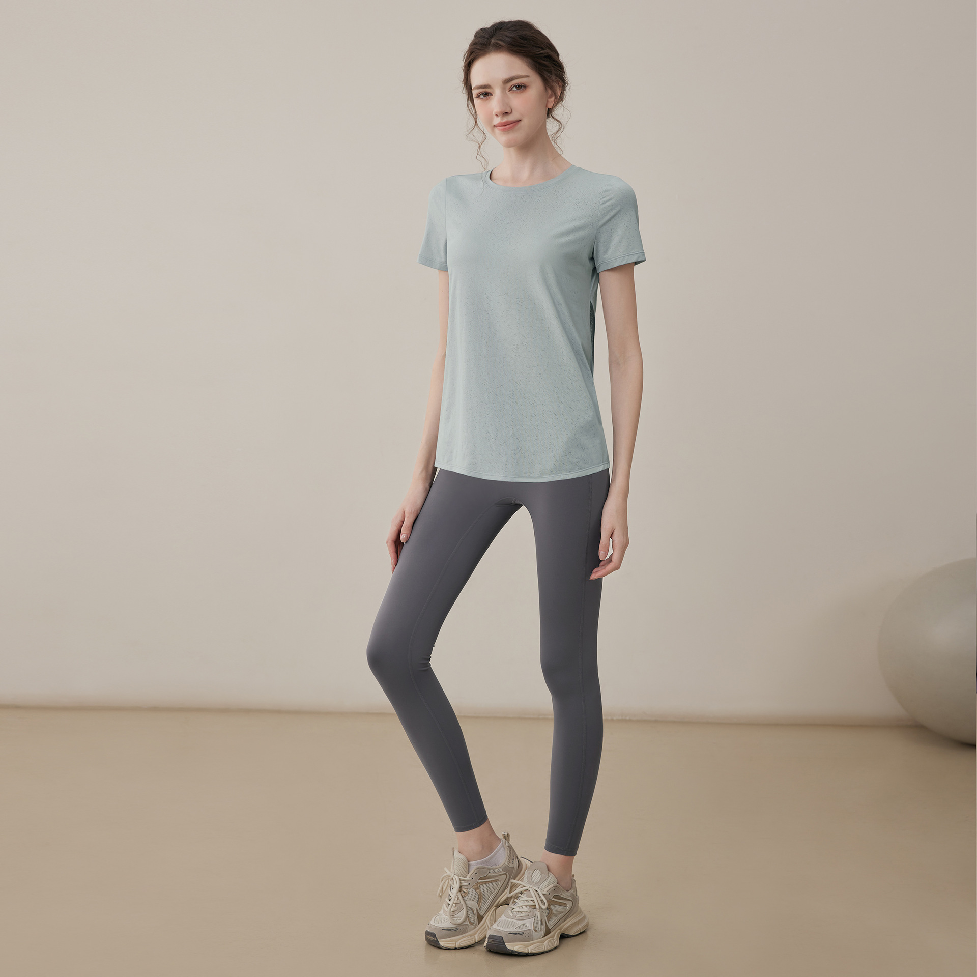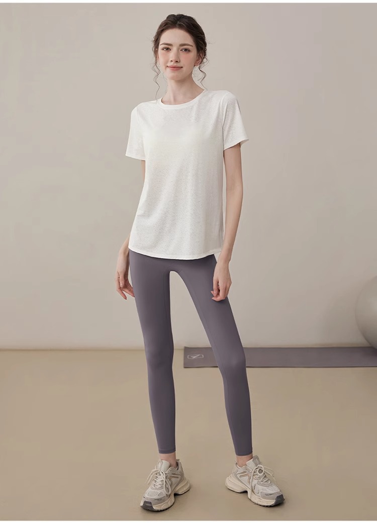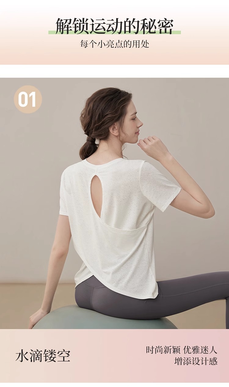 여름 2025 새로운 피트니스 요가 짧은 소매 통기성 중공 요가 세트 스포츠 최고 요가 의류 여성