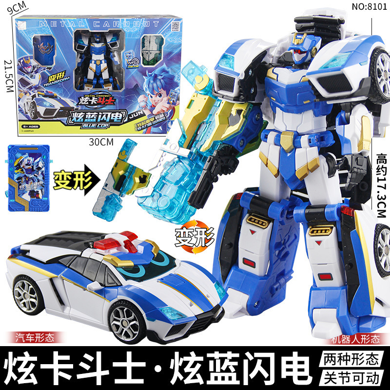정품 드러그 카 파이터 드러그 블루 번개 변형 로봇 자동차 장난감 전사 어린이 소년 King Kong Xuanxuan