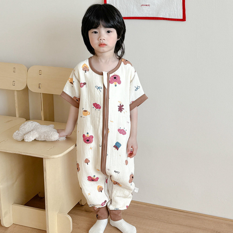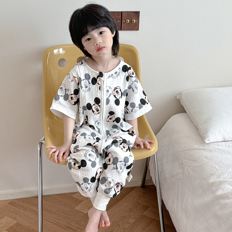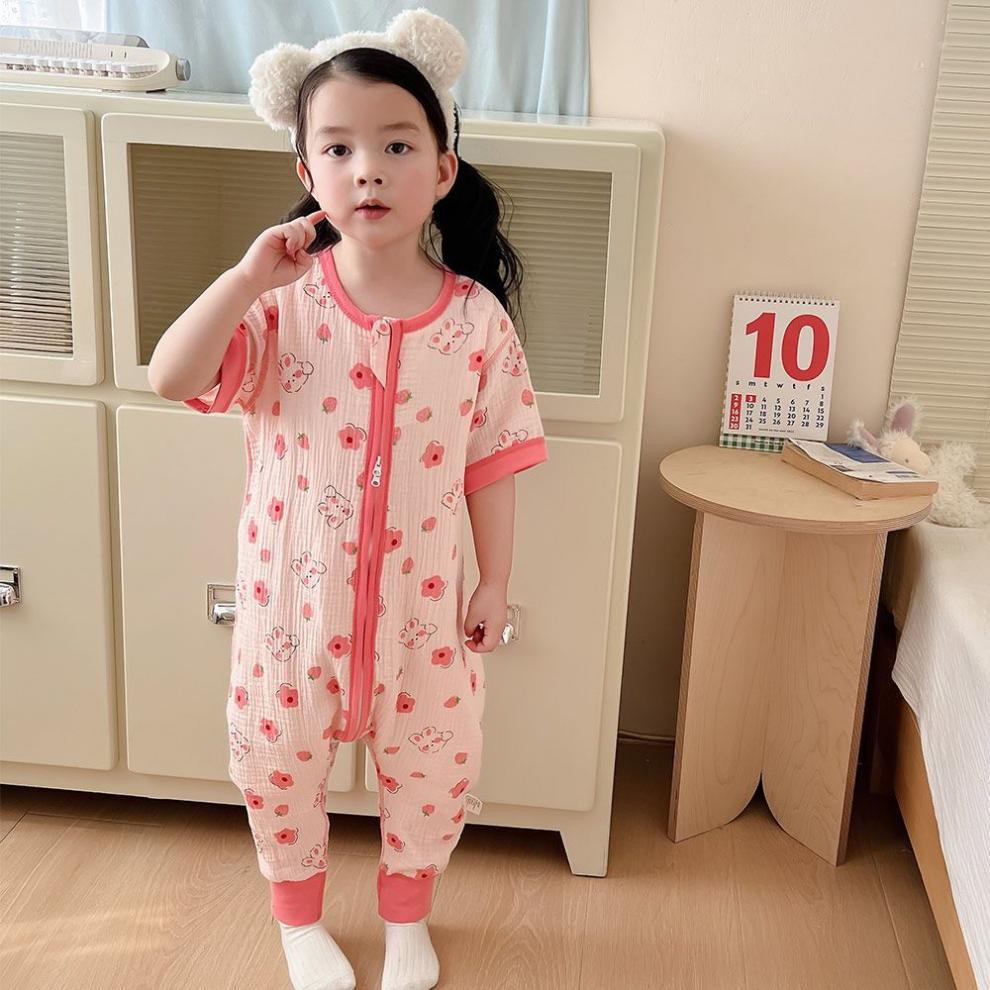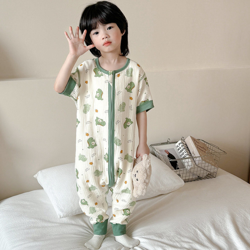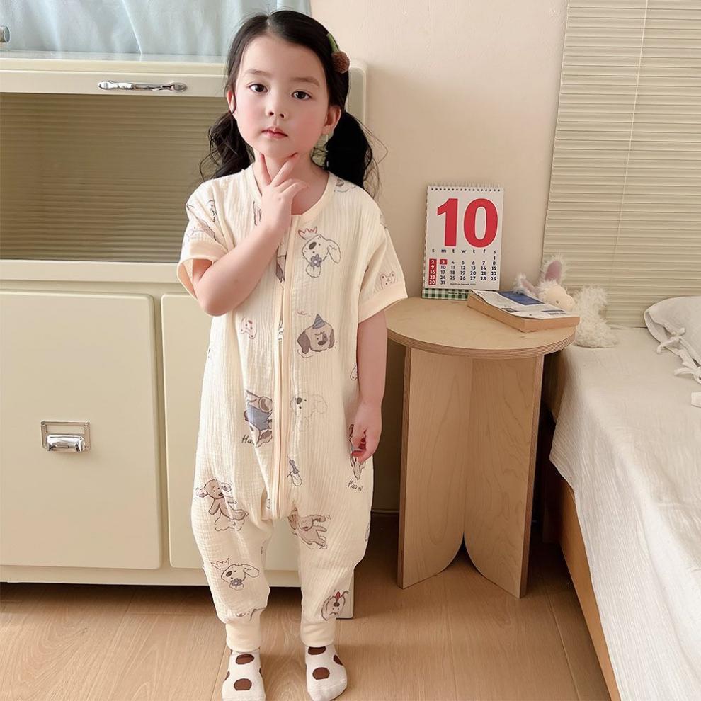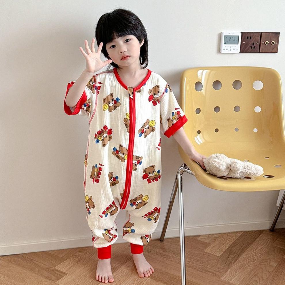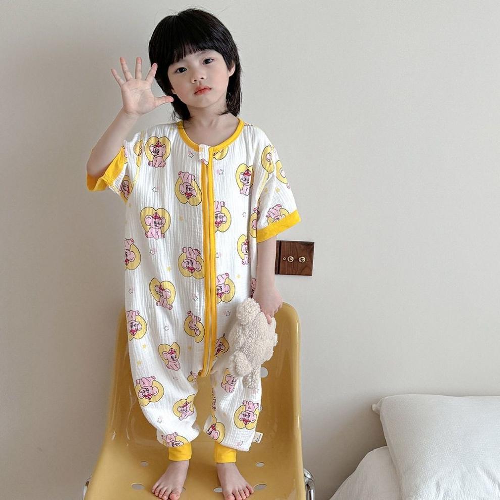 아기 여름 침낭 어린이 반팔 원피스 지퍼 잠옷 소년과 소녀 새로운 만화 가정 의류 에어컨 의류스토어 가기