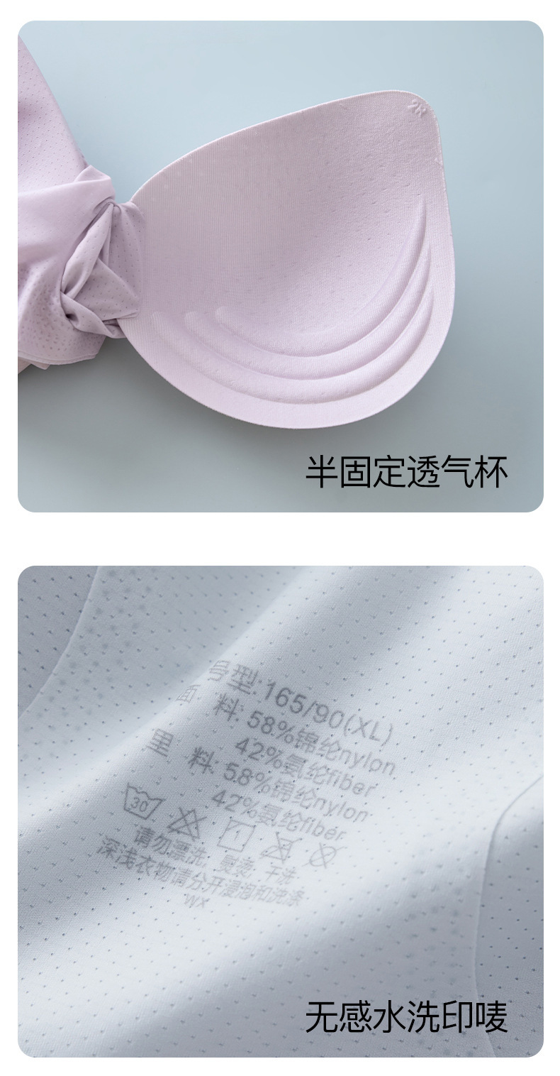 아이스 실크 뷰티 백 소프트 서포트 슬링 심리스 브라, 가볍고 통기성이 좋은 고정 컵 푸쉬업 베스트 스타일 브라