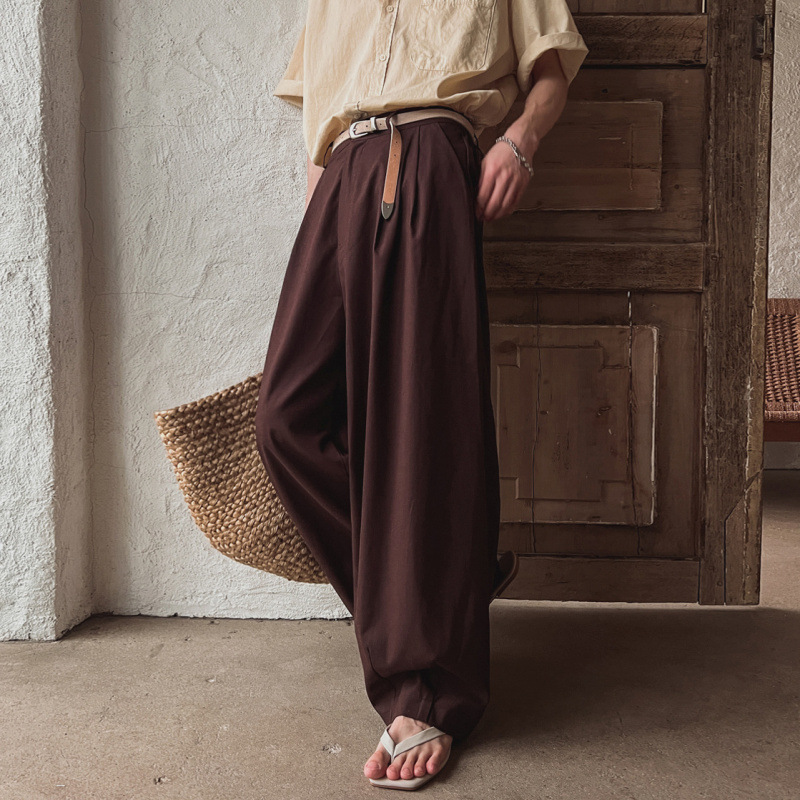 MYQ 린넨 스트레이트 캐주얼 바지 남성 여름 올드 머니 스타일 와이드 팬츠 한국 통근 클린핏 착용스토어 가기