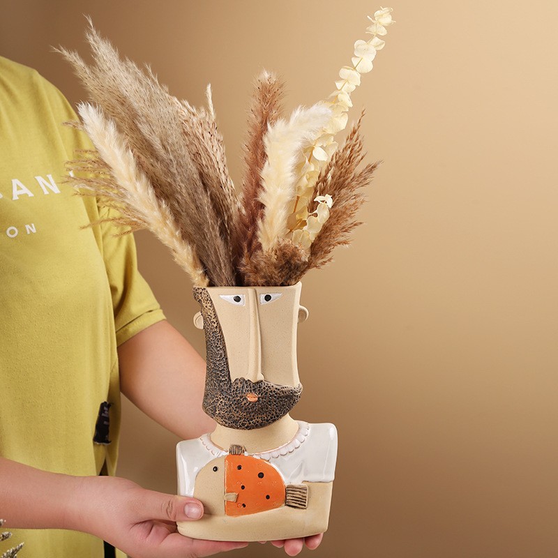 개인화 된 컬러 페인트 추상 문자 세라믹 꽃병 장식품 크리 에이 티브 라이트 럭셔리 세라믹 장식 공예품
