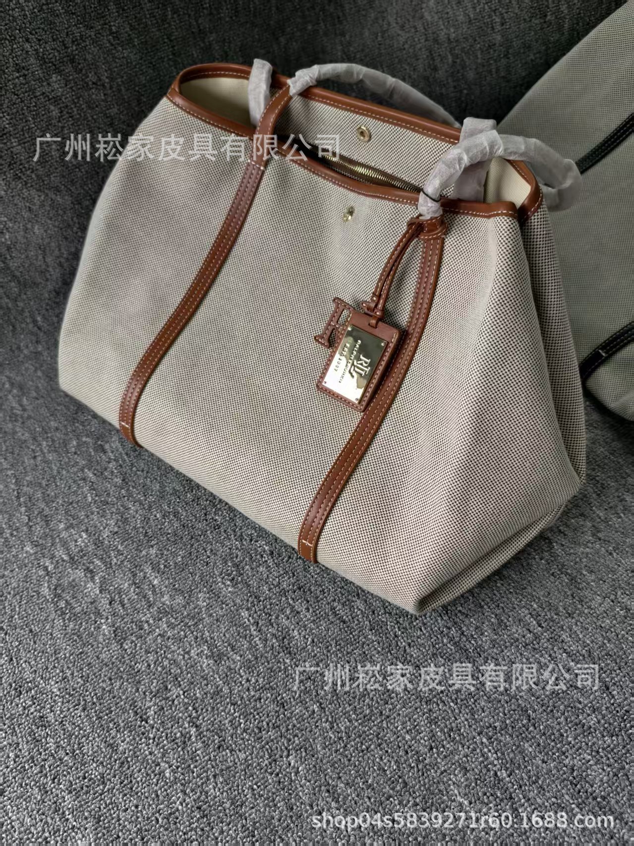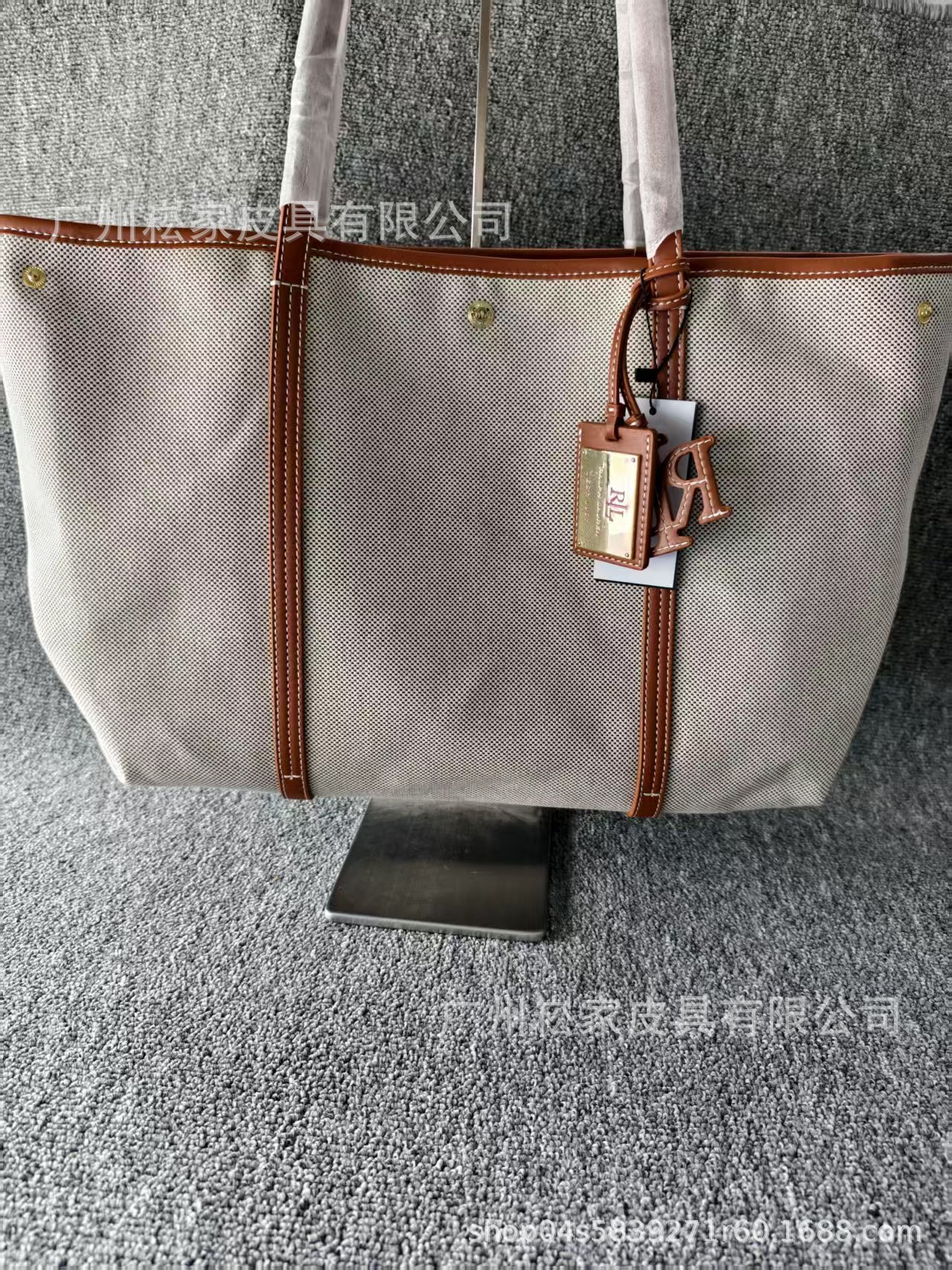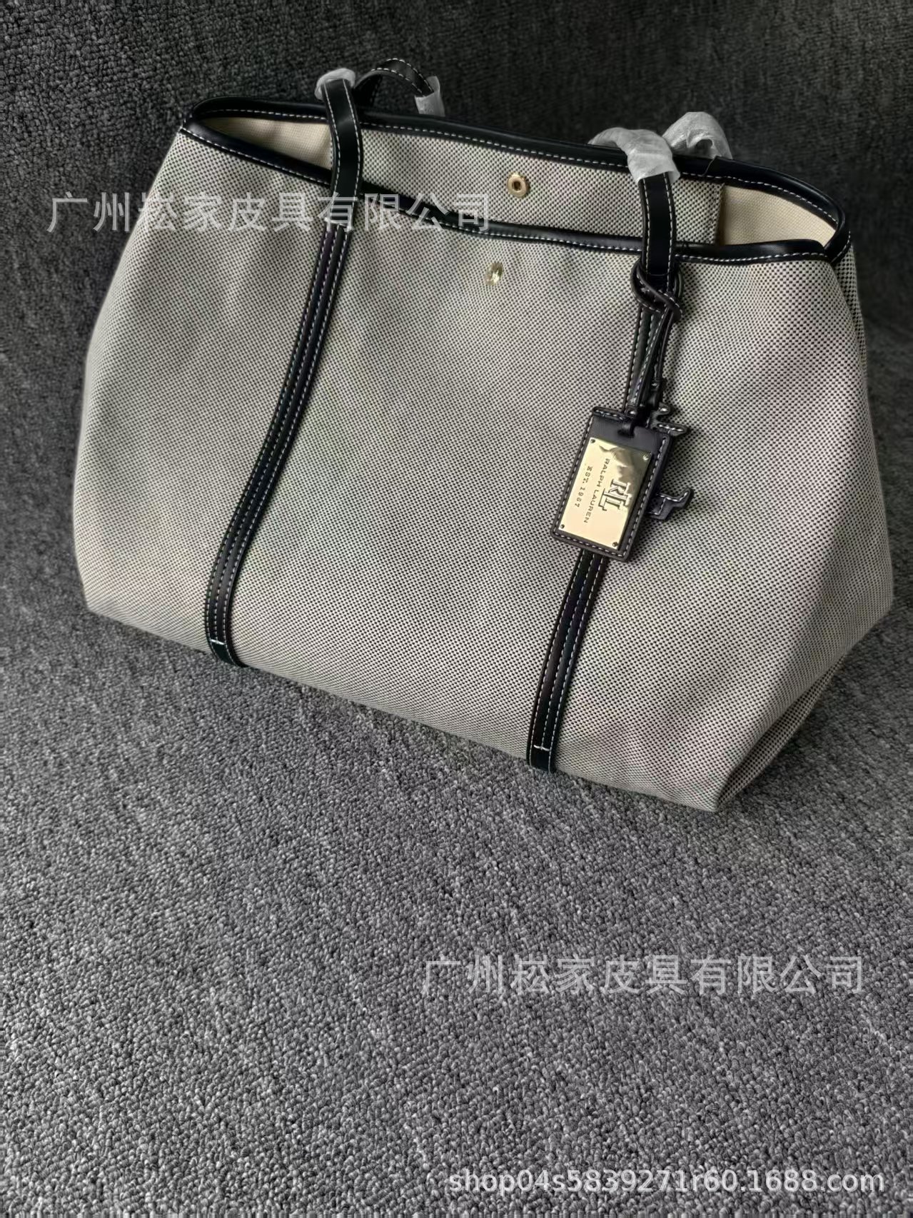 크로스보더 랄프로렌 캔버스 가죽 대용량 마미 토트백 패셔너블하고 우아한 여성 가방스토어 가기