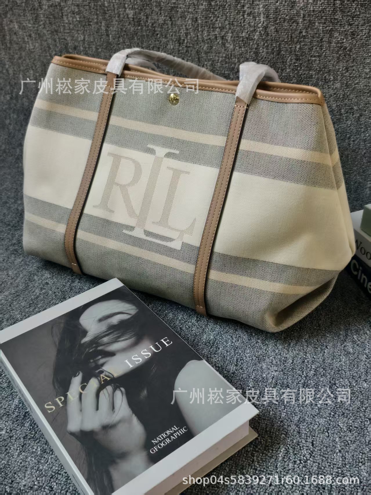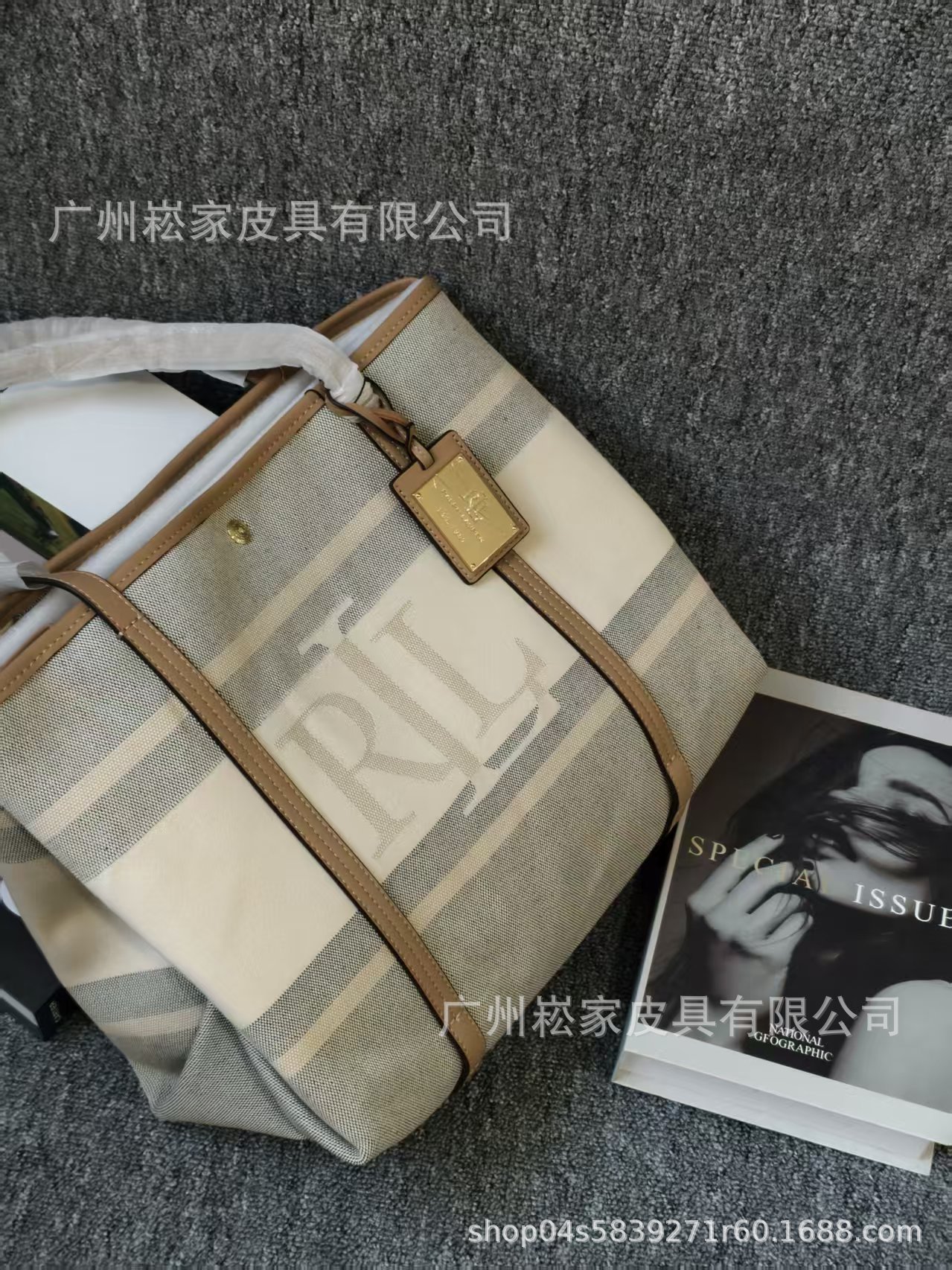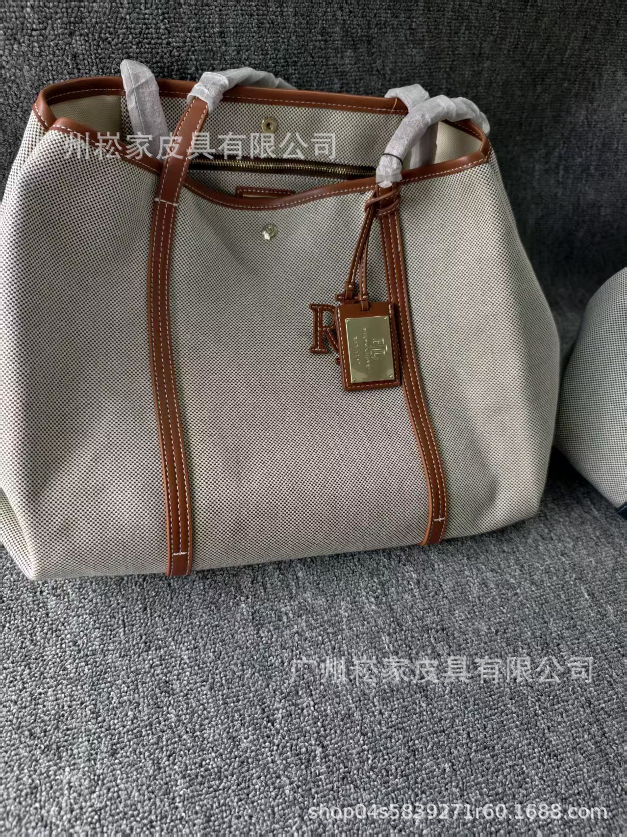 크로스보더 랄프로렌 캔버스 가죽 대용량 마미 토트백 패셔너블하고 우아한 여성 가방스토어 가기