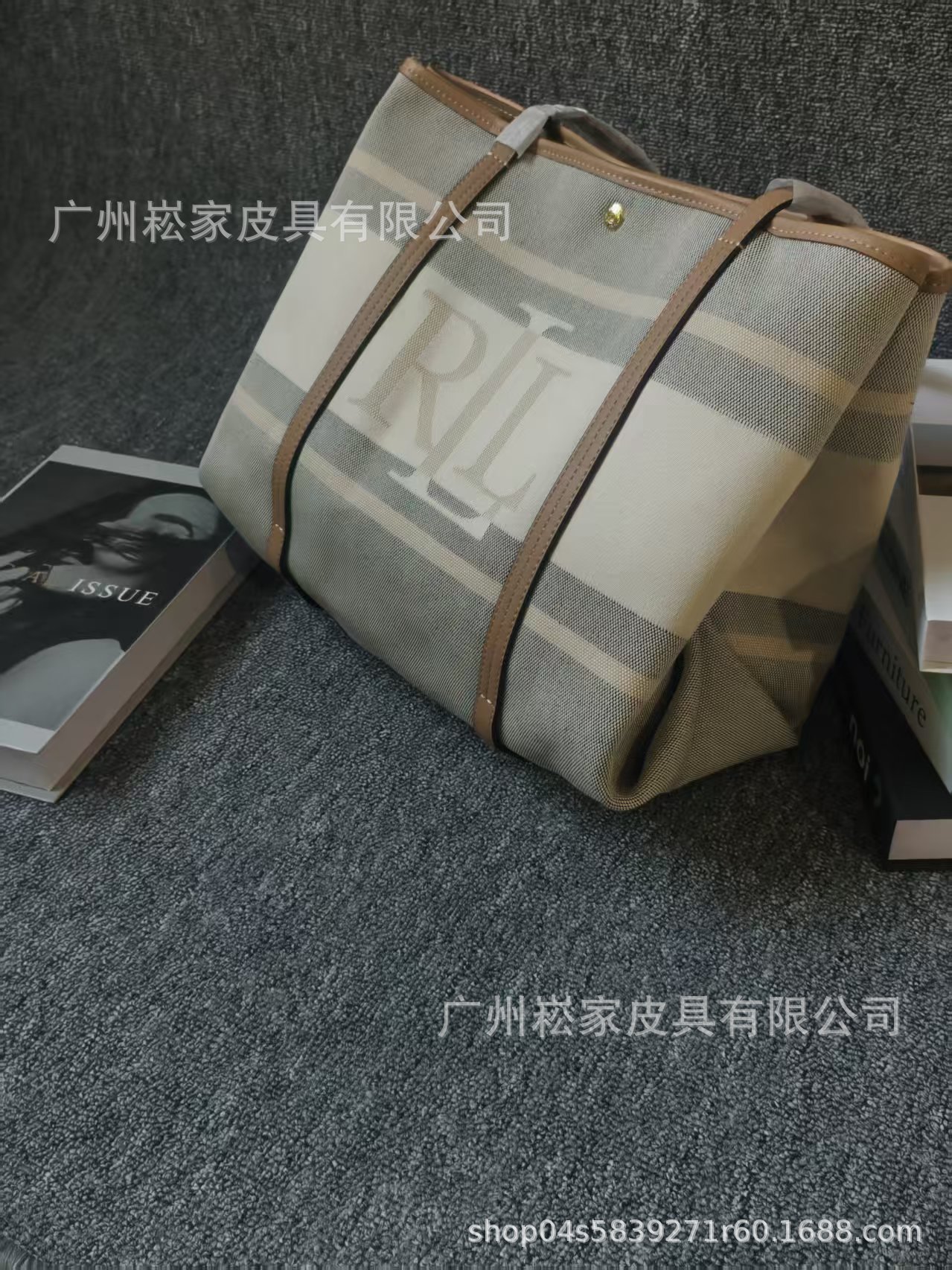 크로스보더 랄프로렌 캔버스 가죽 대용량 마미 토트백 패셔너블하고 우아한 여성 가방